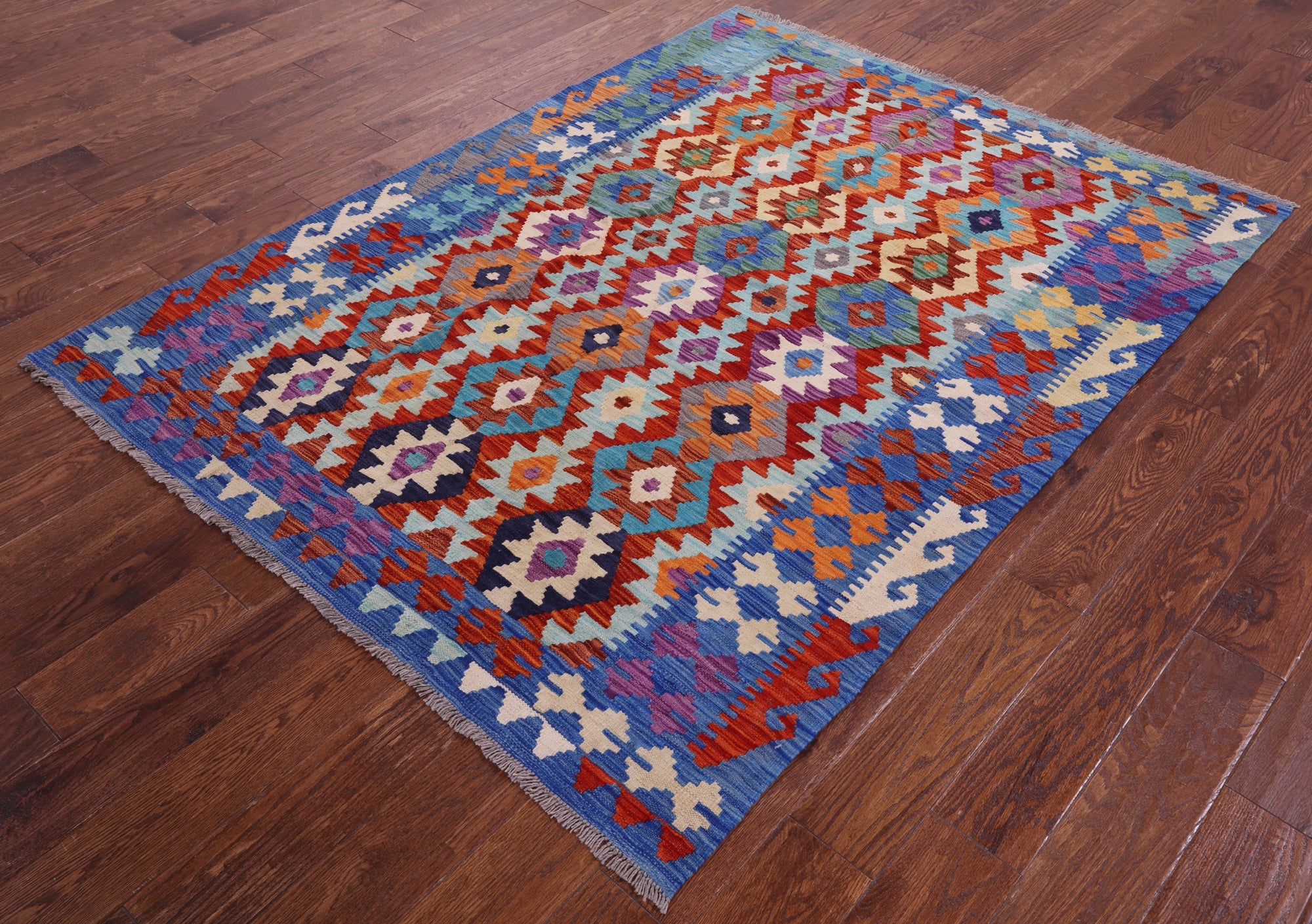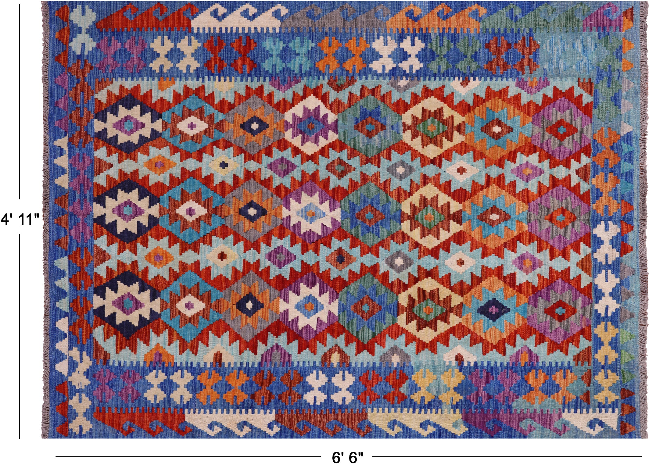 4' 11" X 6' 6" Wool On Wool Kilim Flat Weave Reversible Rug - Q17482