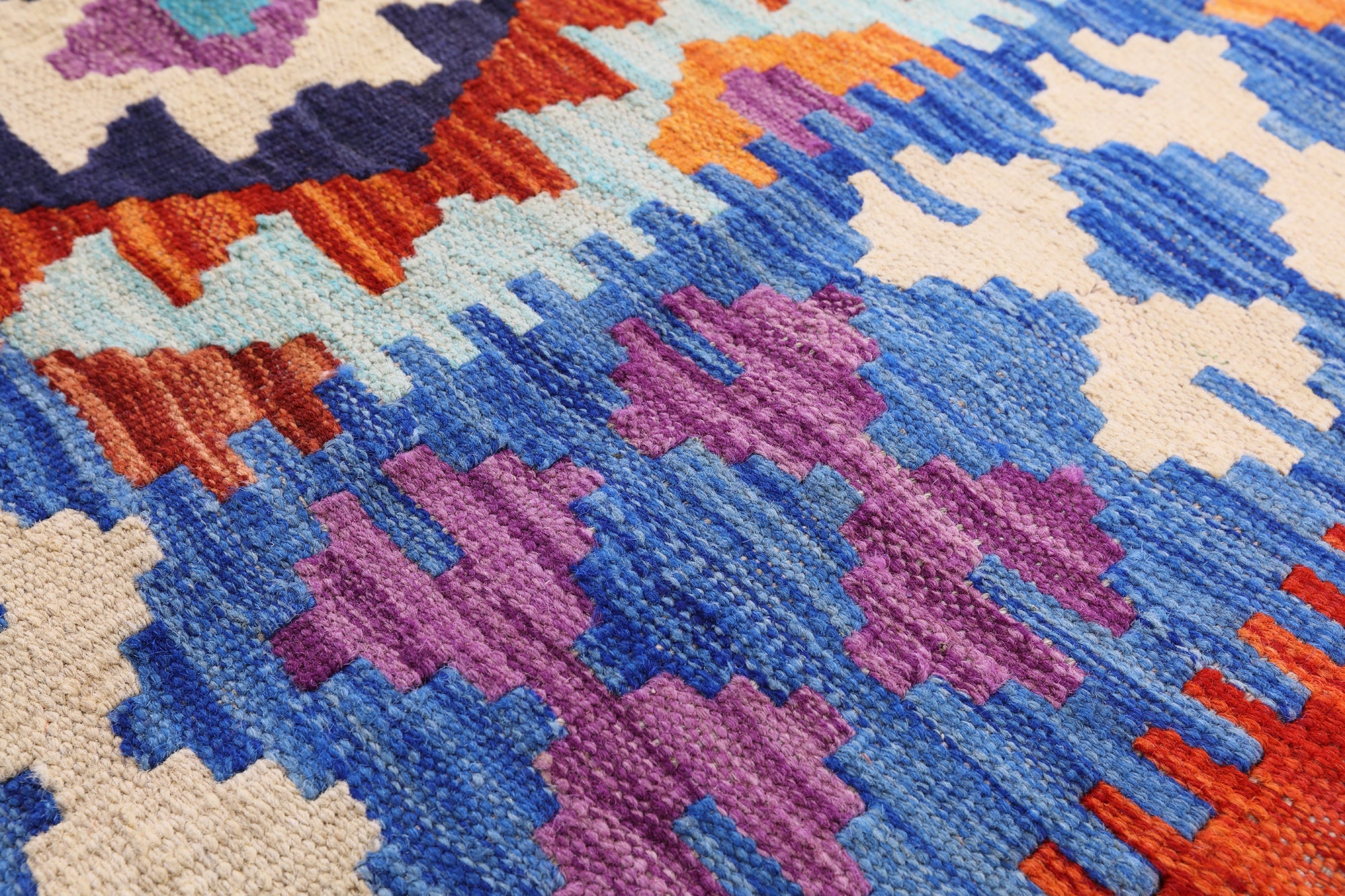 A kilim rug is a flat-woven rug. Kilim rugs are known for their intricate geometric patterns, vibrant colors, and durable construction. Unlike traditional pile rugs, kilims have a smooth surface with no pile, making them lightweight and versatile. They are often used as decorative pieces, floor coverings, or wall hangings, reflecting the cultural heritage and artistic expression of the regions they originate from.