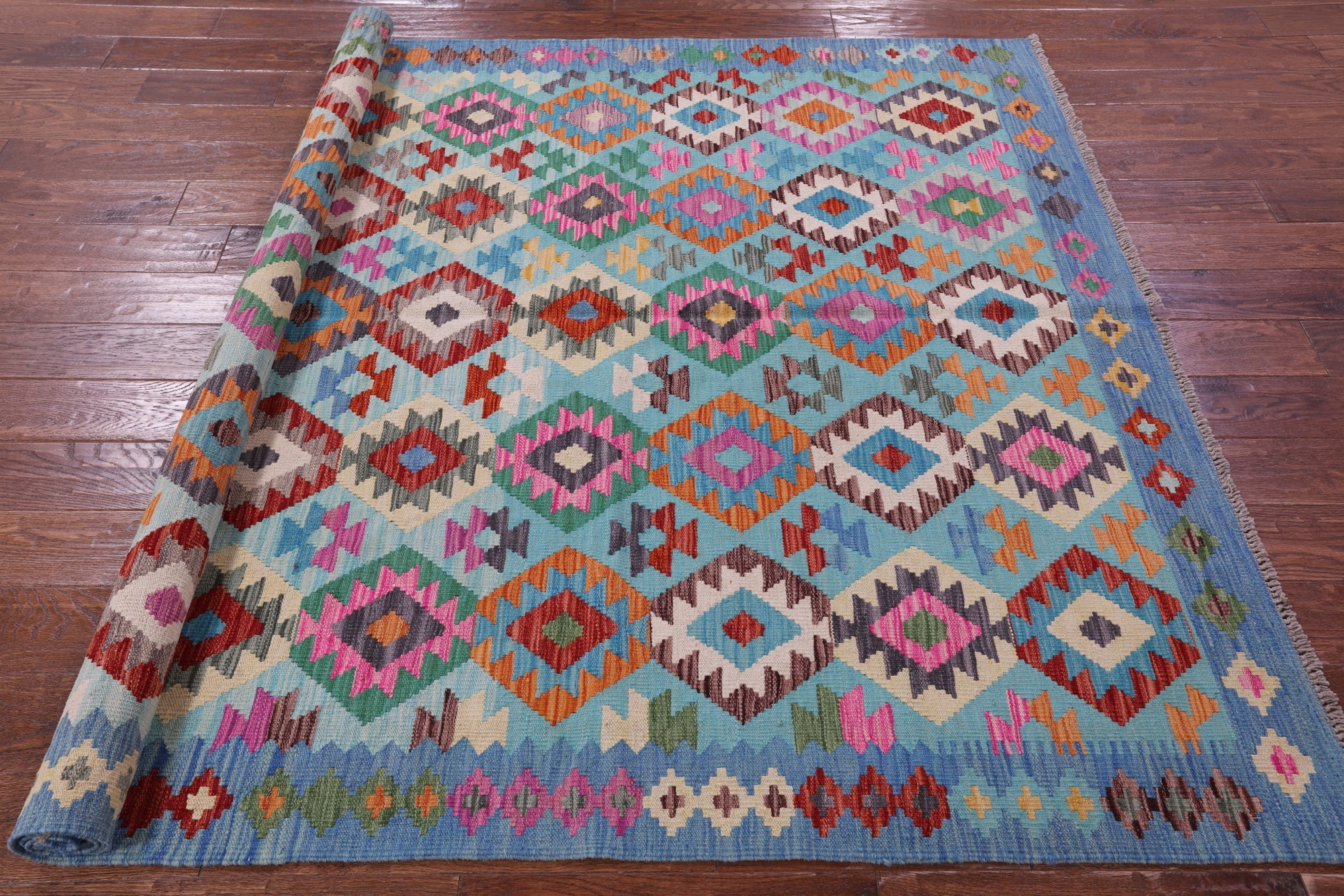 A kilim rug is a flat-woven rug. Kilim rugs are known for their intricate geometric patterns, vibrant colors, and durable construction. Unlike traditional pile rugs, kilims have a smooth surface with no pile, making them lightweight and versatile. They are often used as decorative pieces, floor coverings, or wall hangings, reflecting the cultural heritage and artistic expression of the regions they originate from.