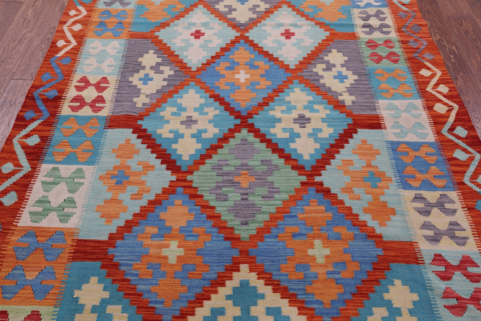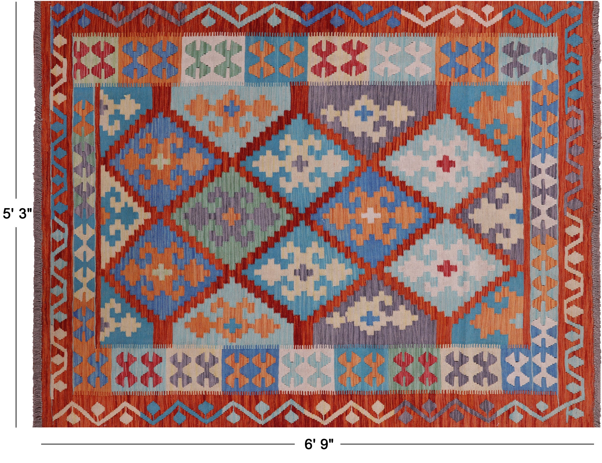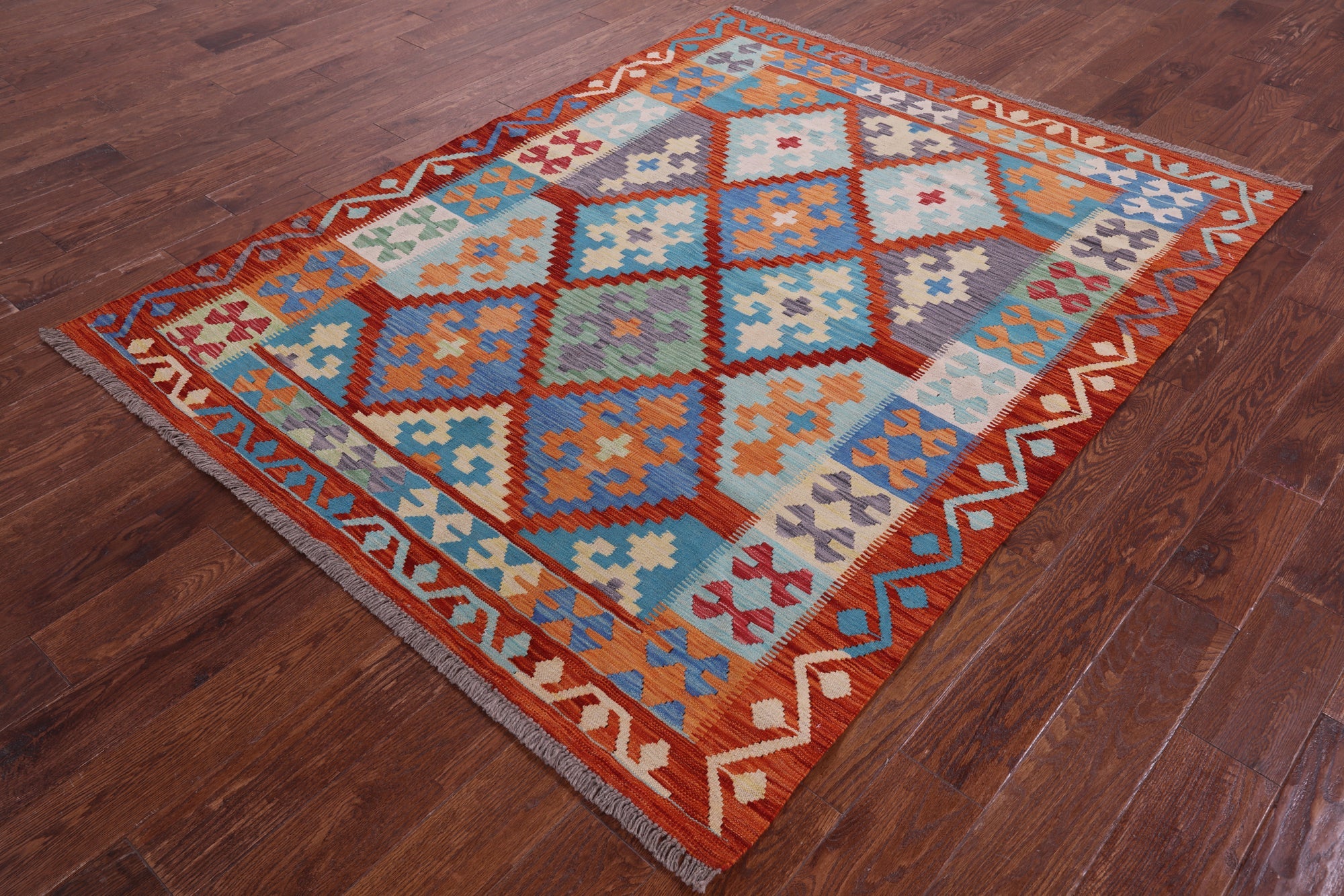 5' 3" X 6' 9" Wool On Wool Kilim Flat Weave Reversible Rug - Q17692 is backordered and will ship as soon as it is back in stock.