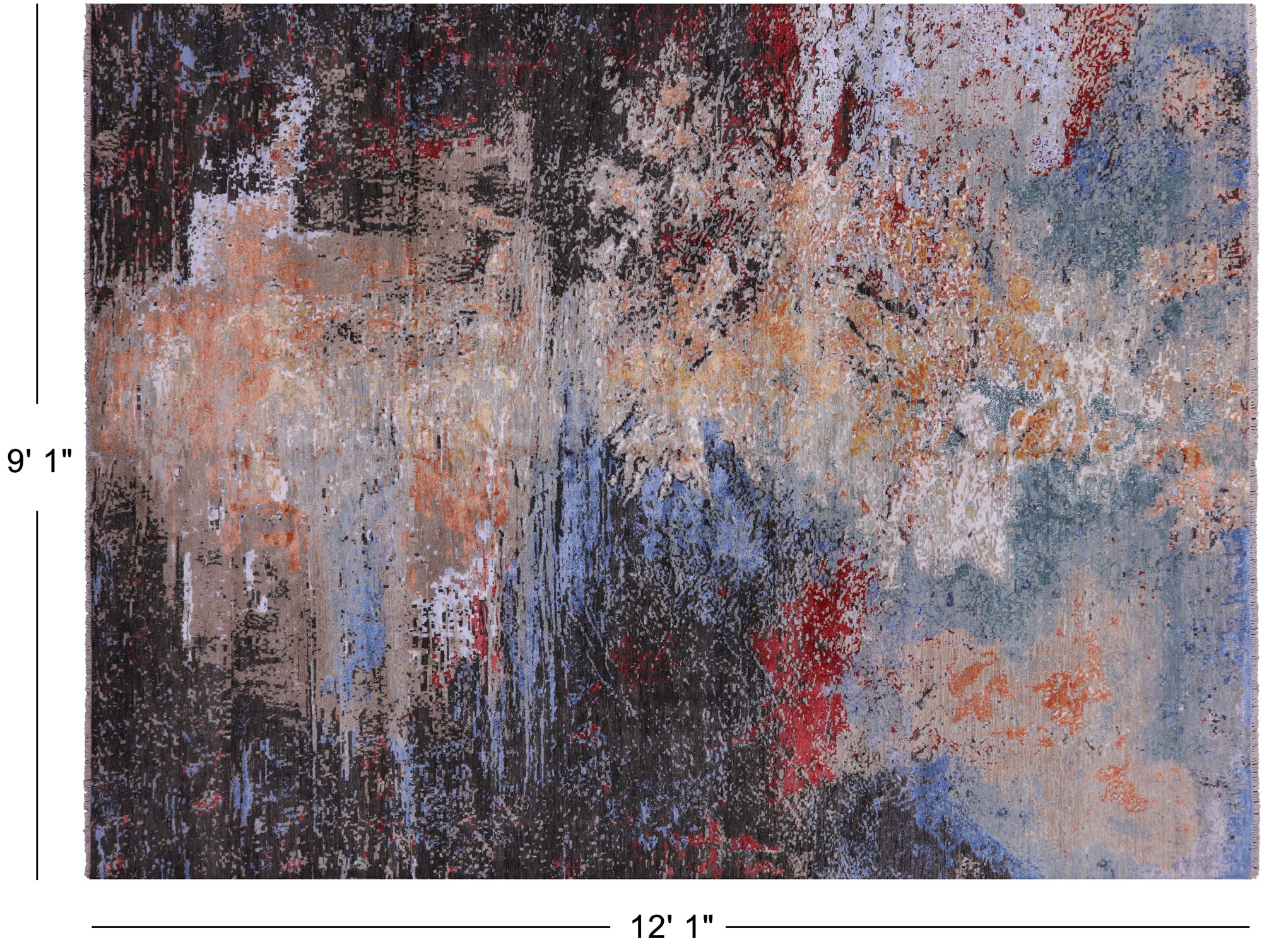 9' 1" X 12' 1" Wool & Silk Abstract Hand-Knotted Rug - Q8868 is backordered and will ship as soon as it is back in stock.