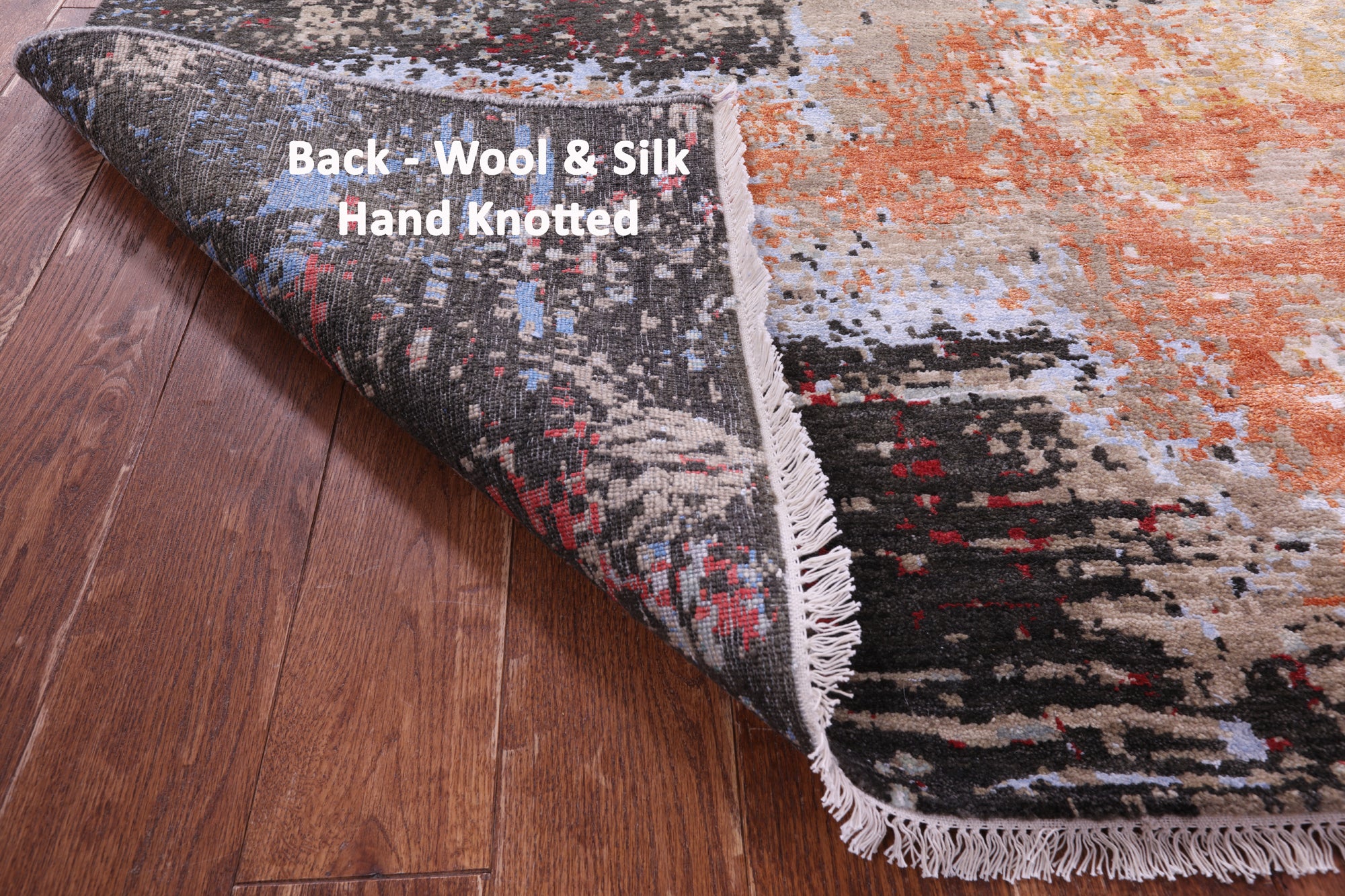 9' 1" X 12' 1" Wool & Silk Abstract Hand-Knotted Rug - Q8868