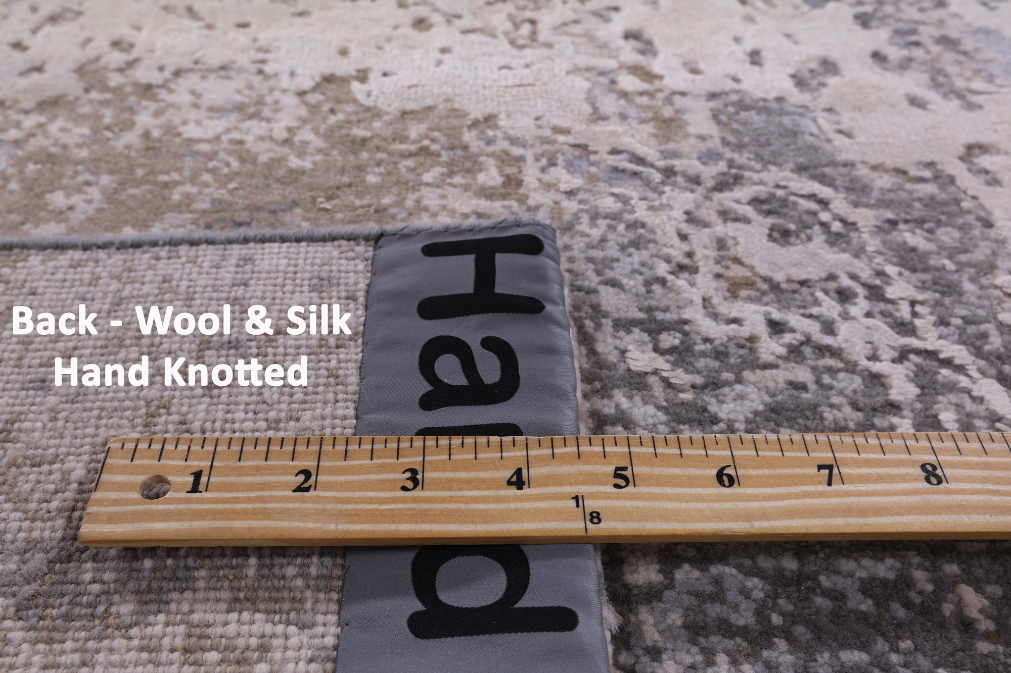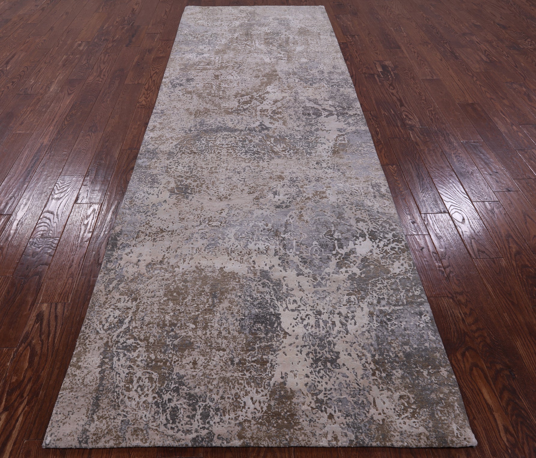 Wool & Silk Hand Knotted Abstract Runner Rug 3' 11" X 12' 0" - Q9063 is backordered and will ship as soon as it is back in stock.