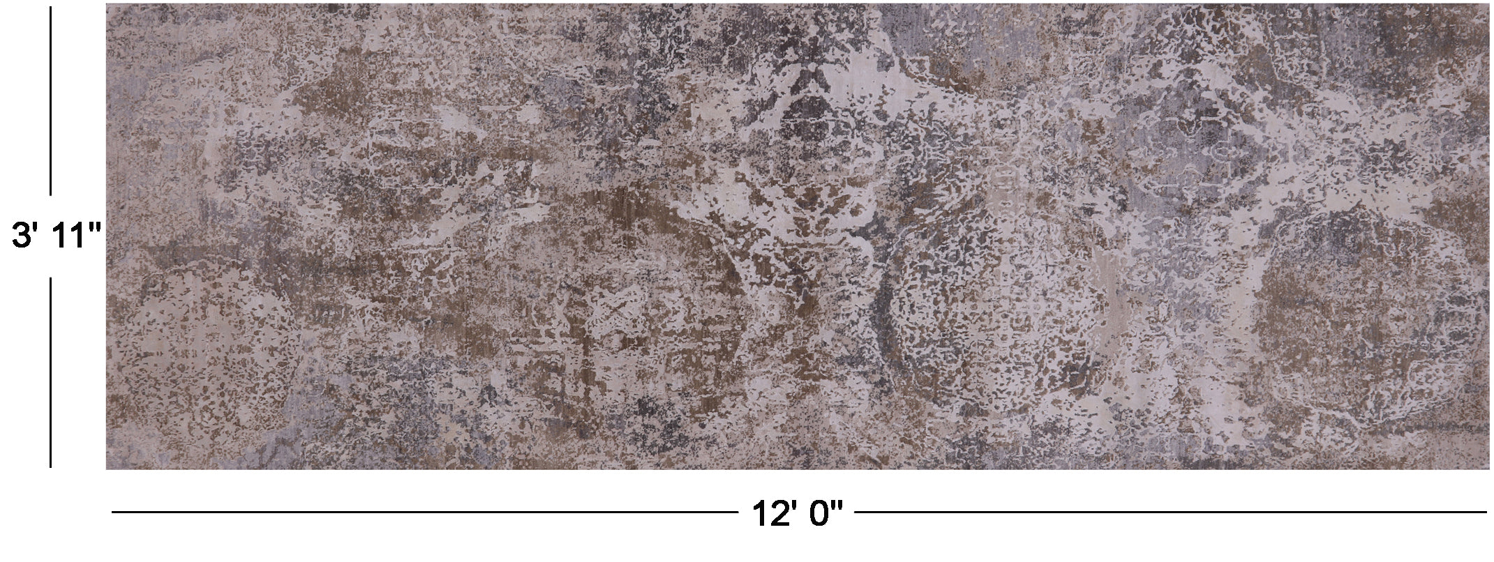 Wool & Silk Hand Knotted Abstract Runner Rug 3' 11" X 12' 0" - Q9063