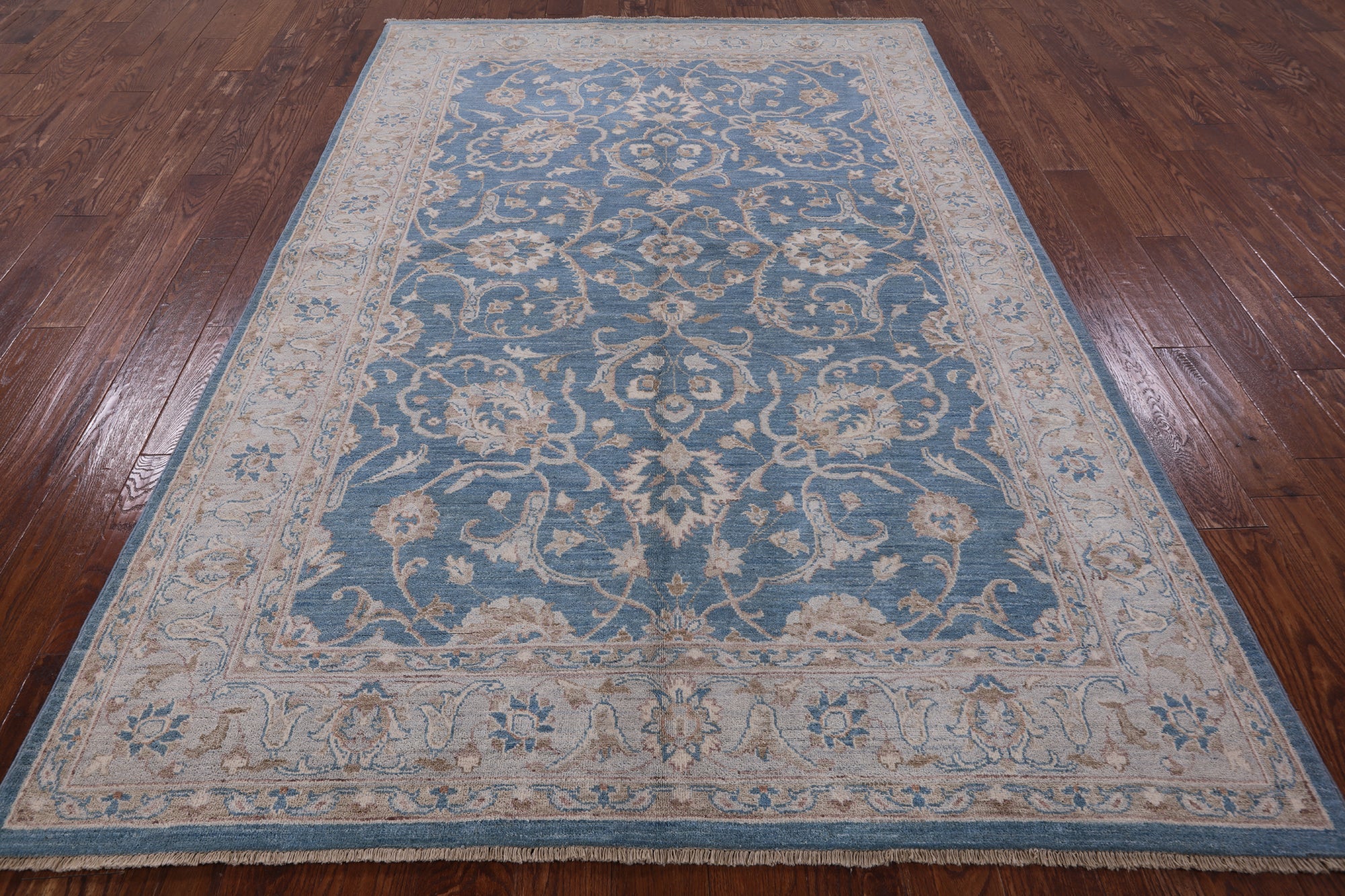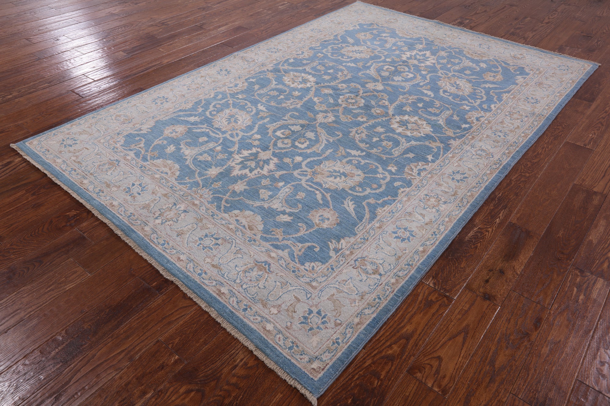 Blue 6' 1" X 9' 1" Turkish Oushak Hand Knotted Area Rug - P4597