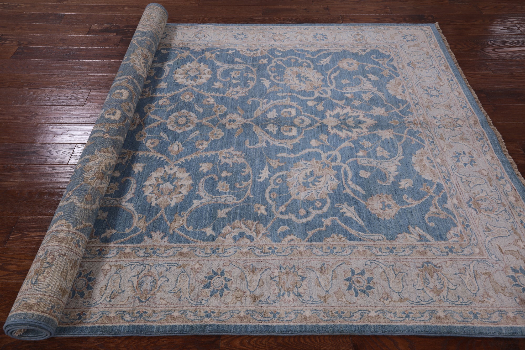 Blue 6' 1" X 9' 1" Turkish Oushak Hand Knotted Area Rug - P4597 is backordered and will ship as soon as it is back in stock.