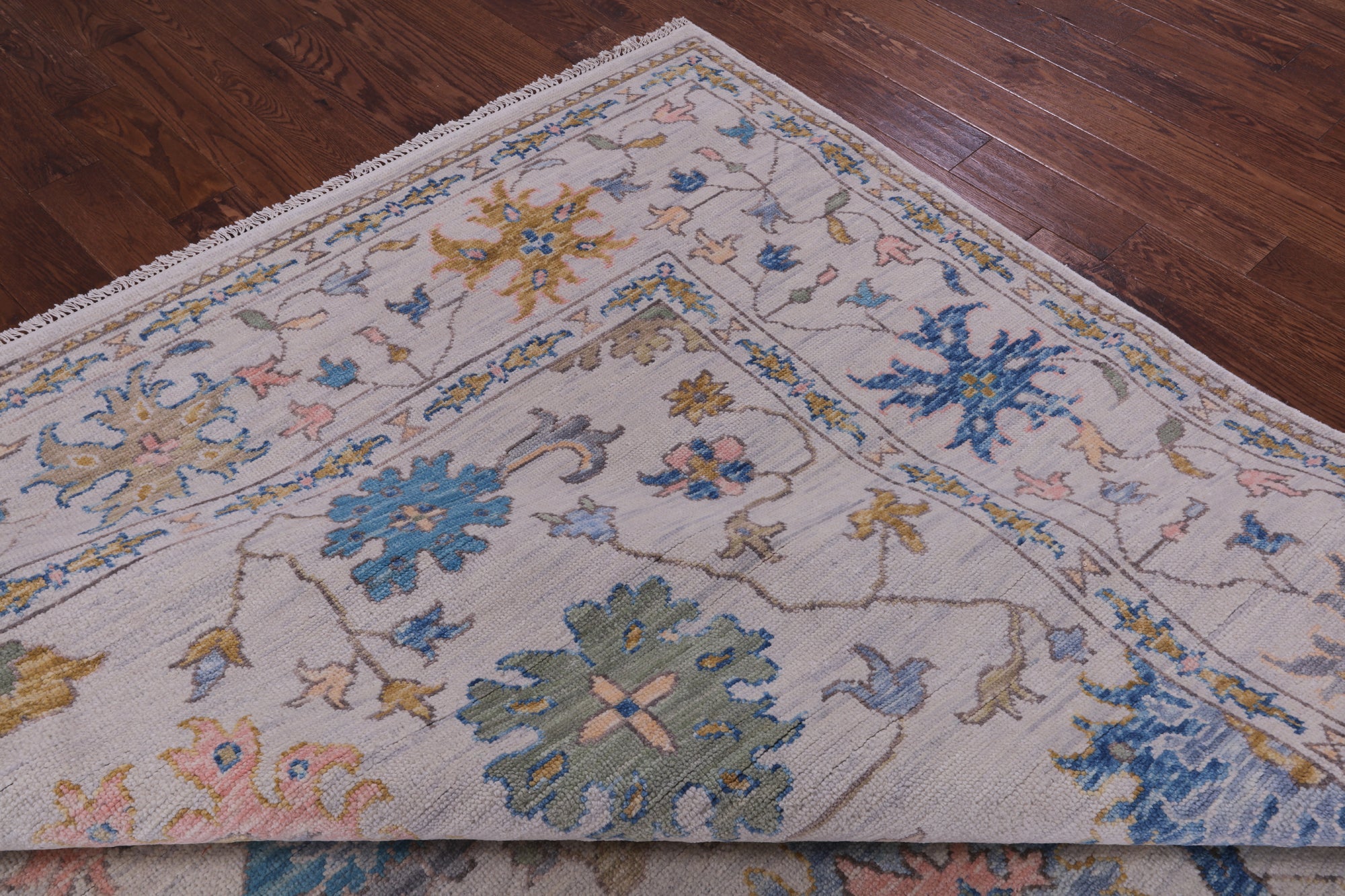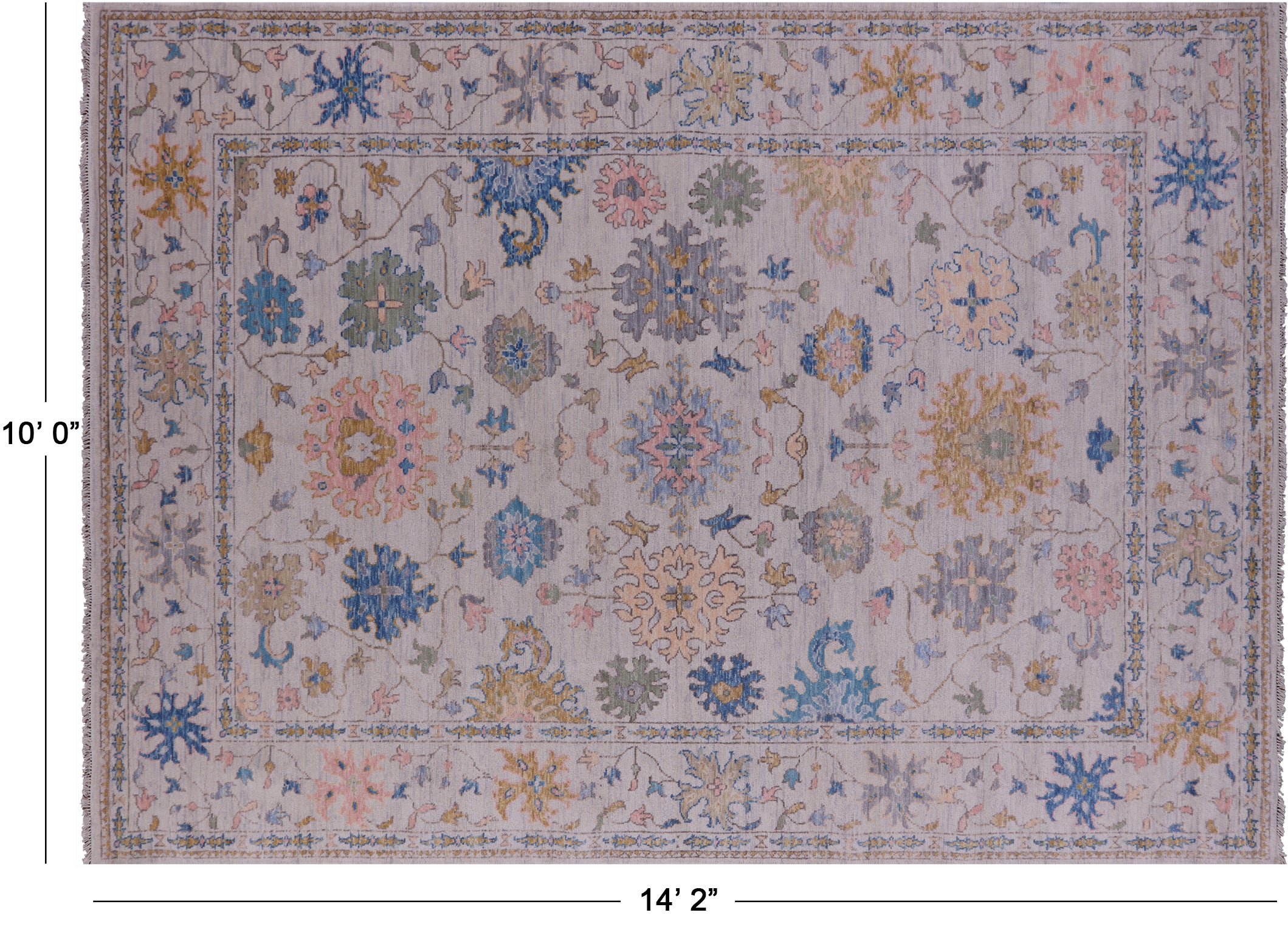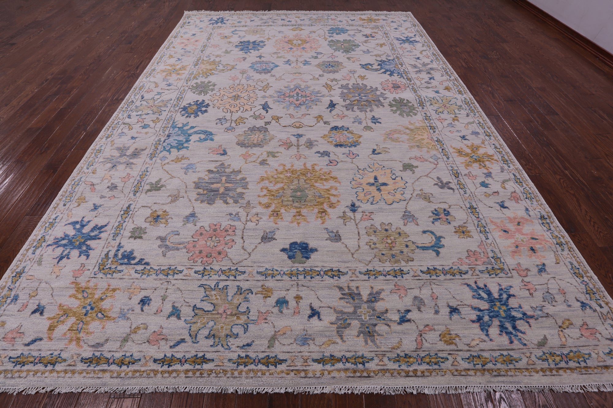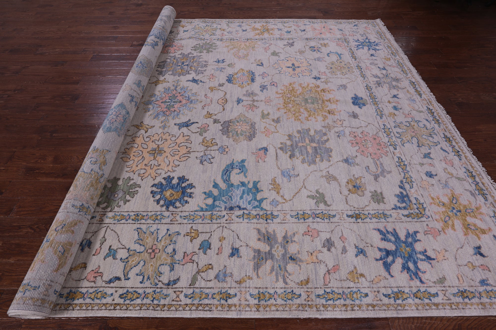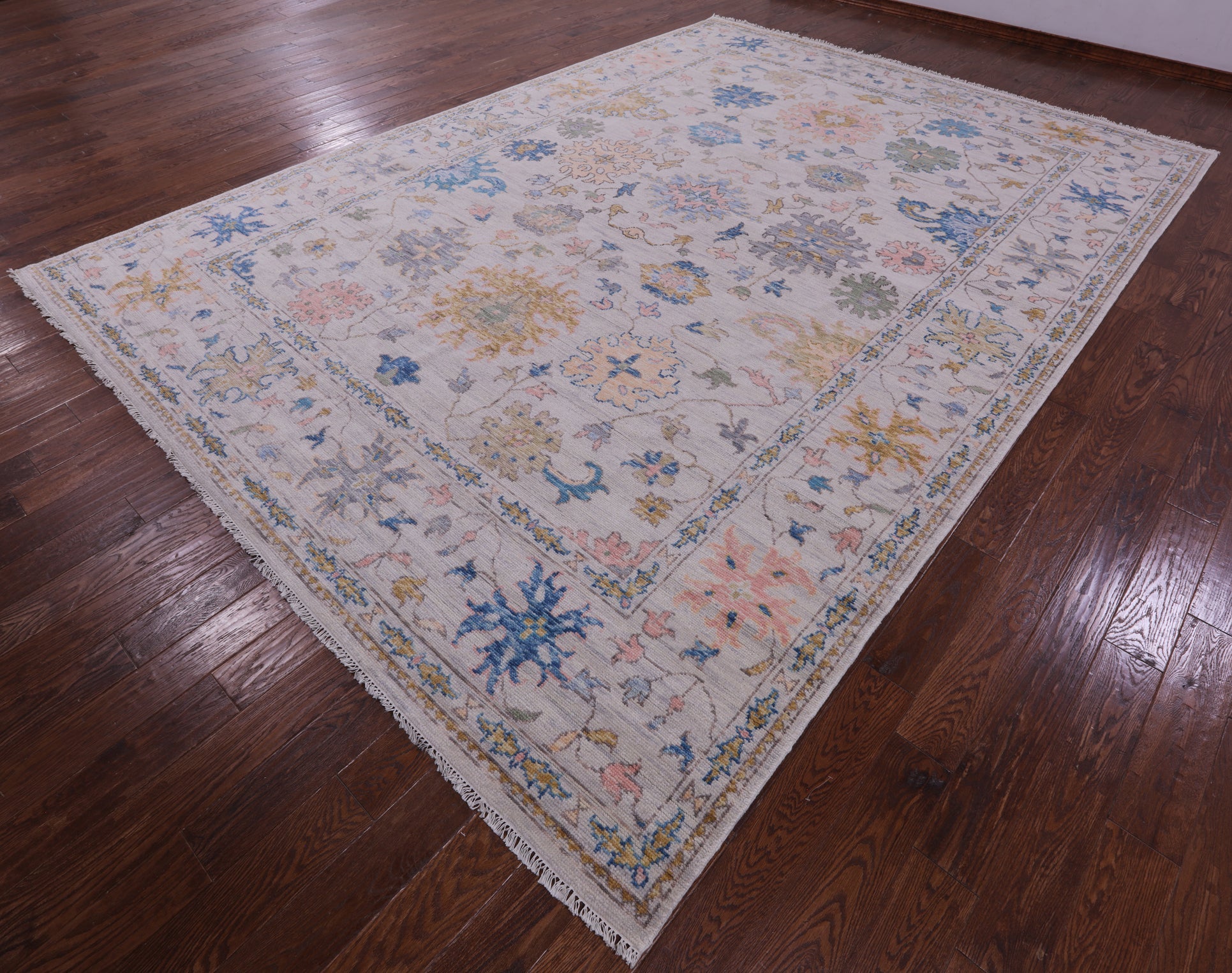 Ivory Hand-Knotted Turkish Angora Oushak Wool Rug 10' 0" X 14' 2" - Q20082