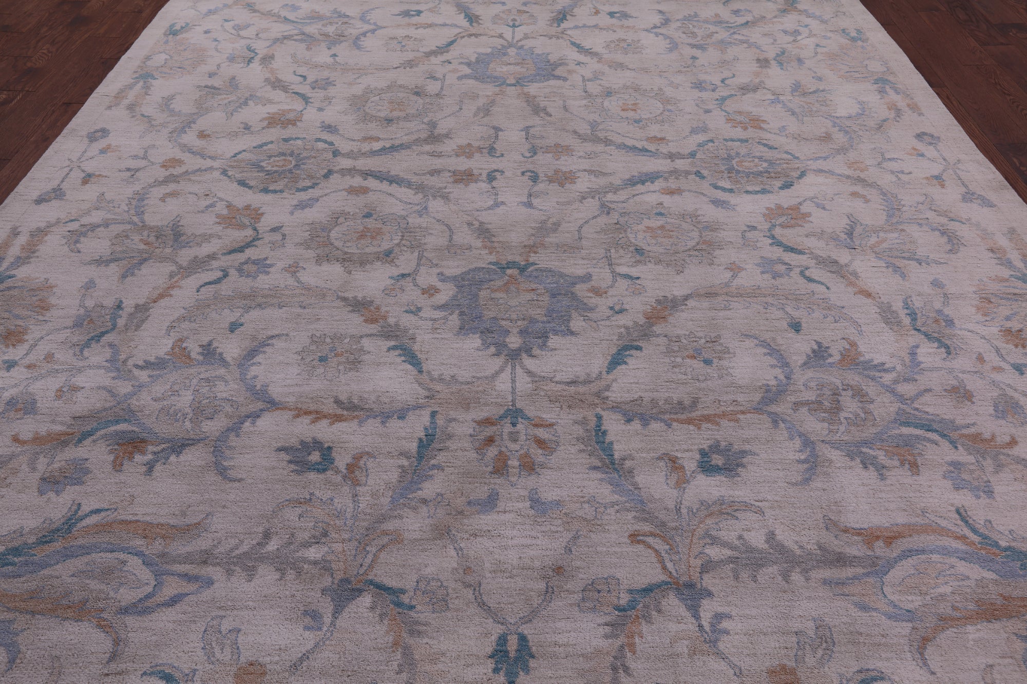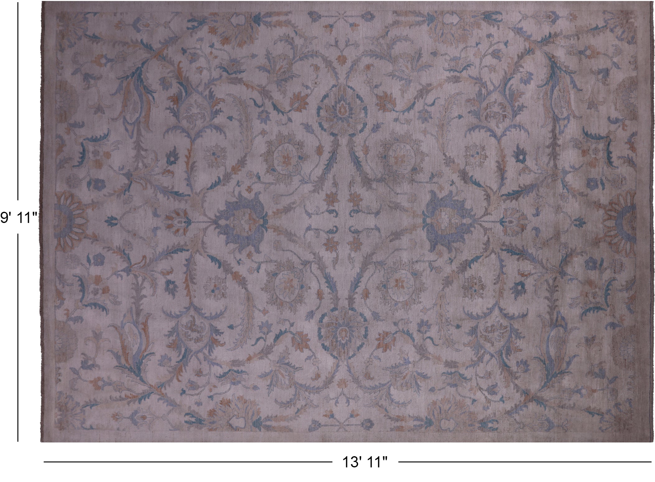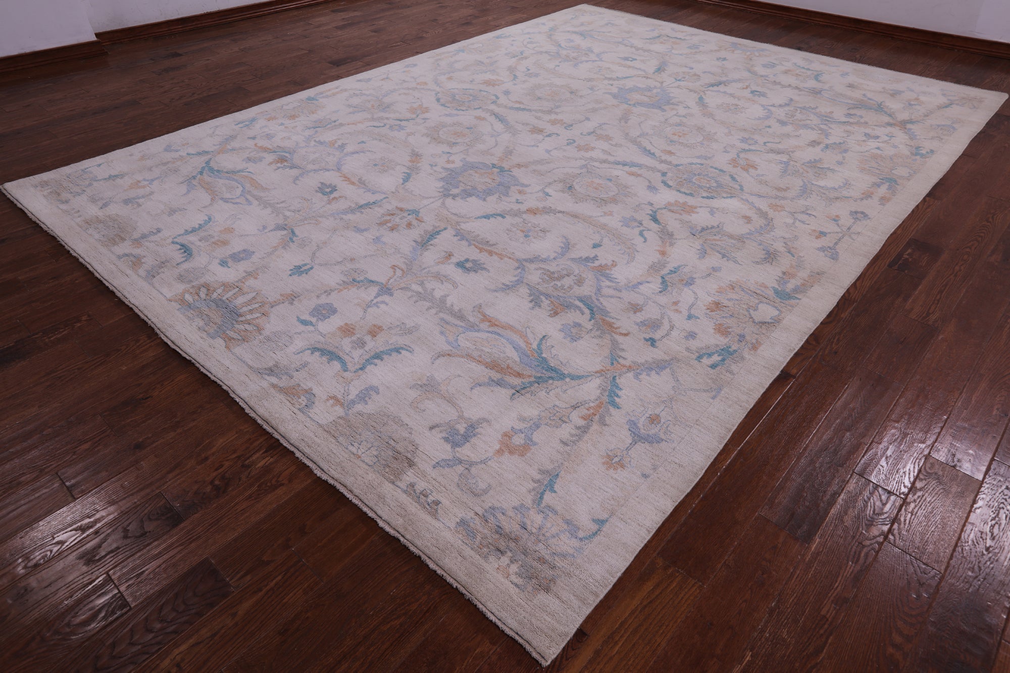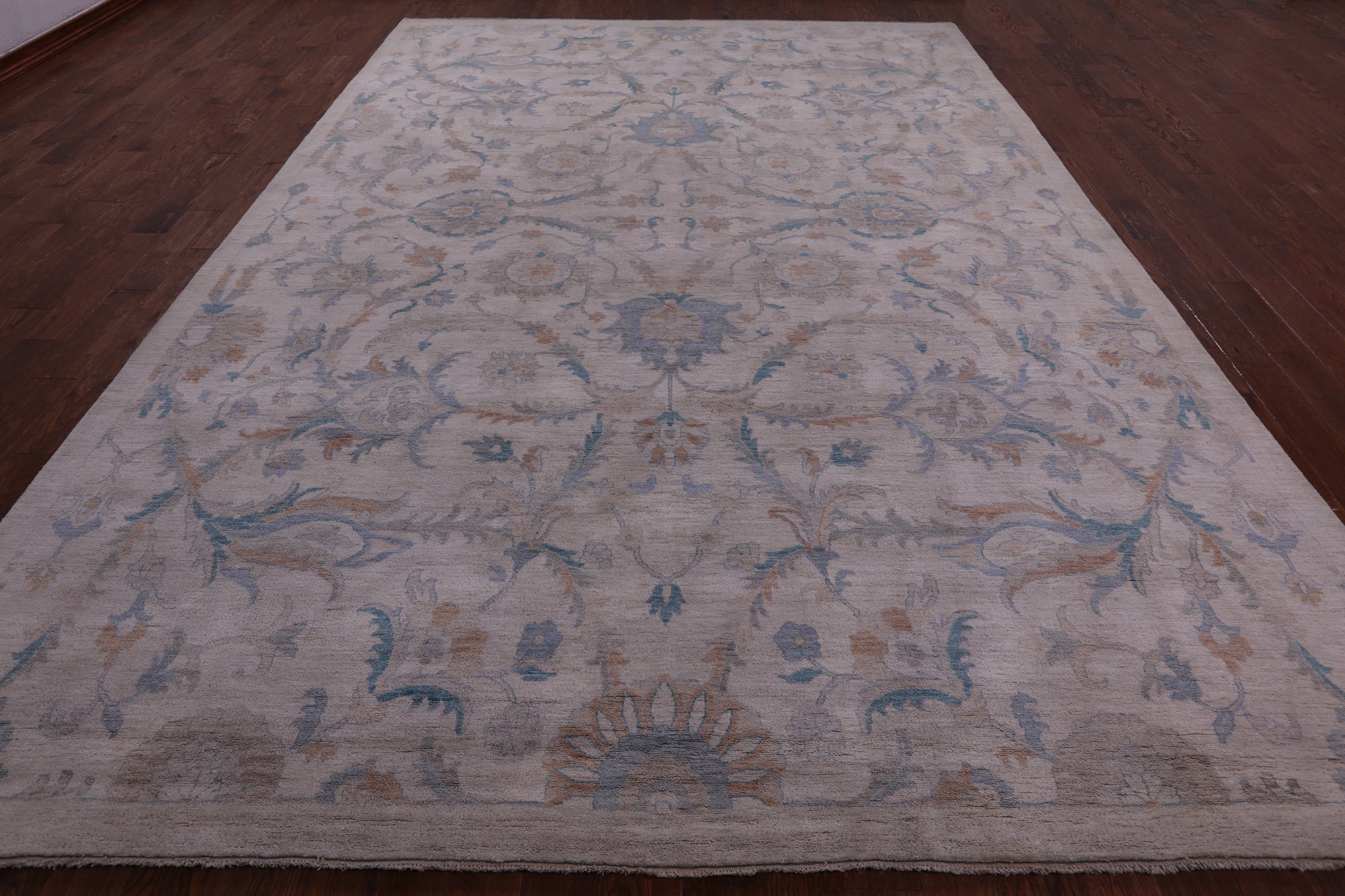 Ivory Hand-Knotted Turkish Oushak Wool Rug 9' 11" X 13' 11" - Q9540