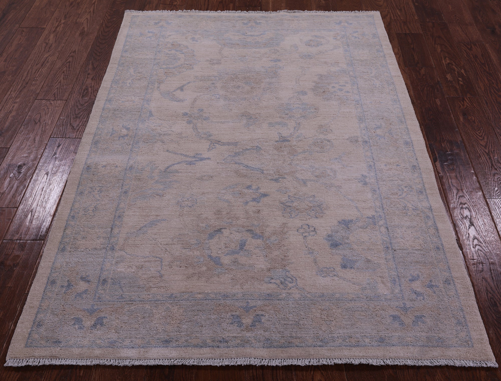 Ivory 4' 2" X 5' 8" Turkish Oushak Hand Knotted Wool Rug - Q18833 is backordered and will ship as soon as it is back in stock.