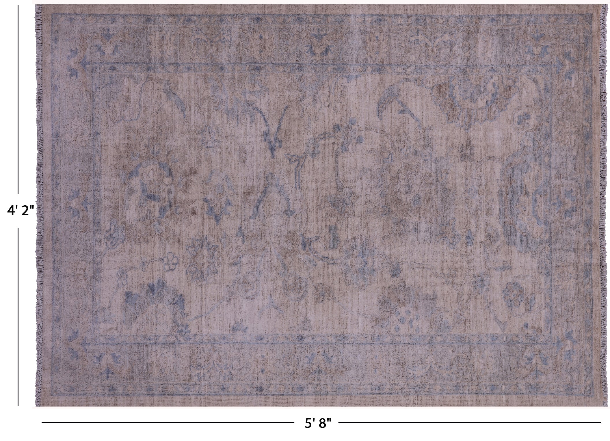 Ivory 4' 2" X 5' 8" Turkish Oushak Hand Knotted Wool Rug - Q18833
