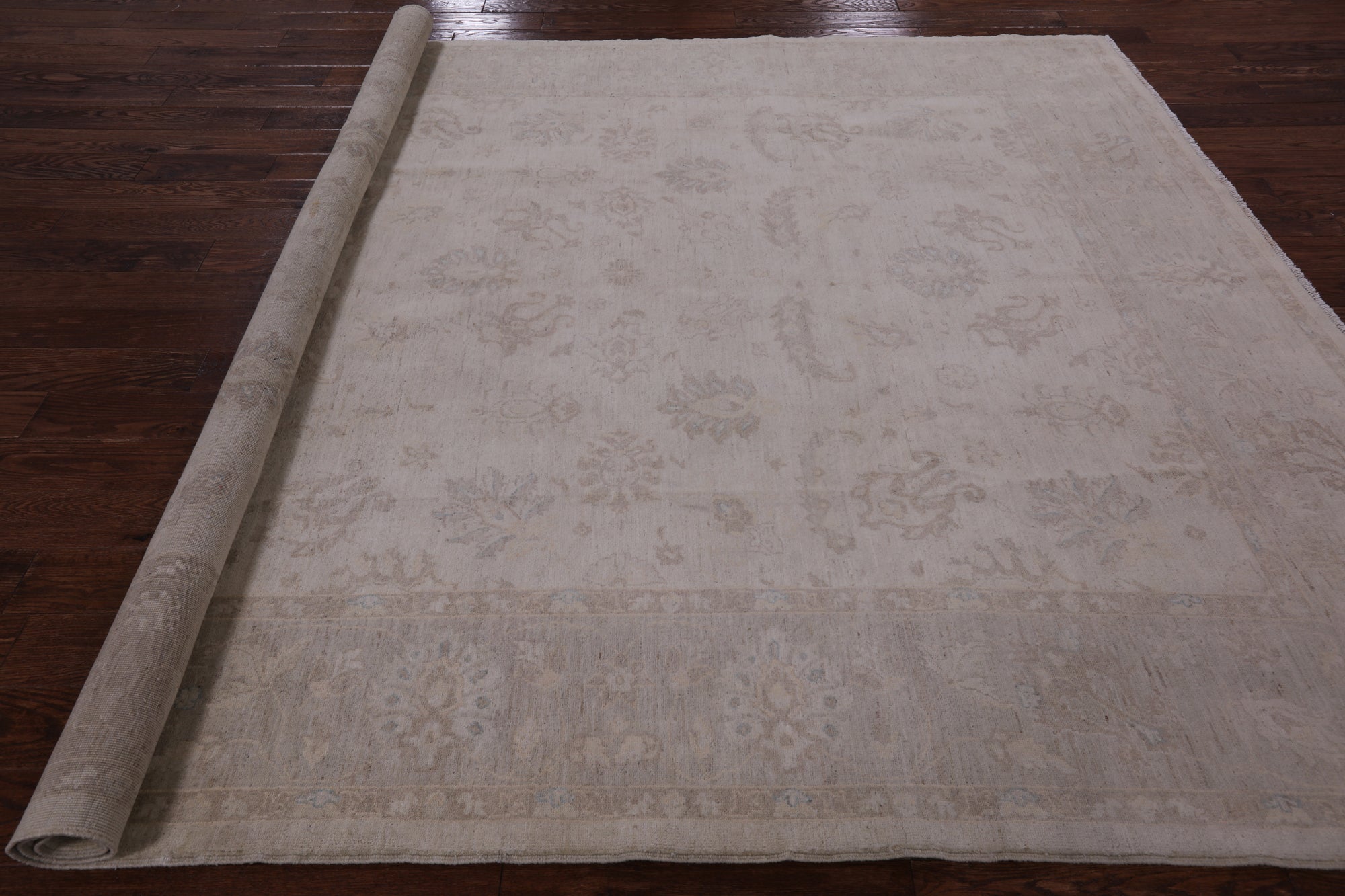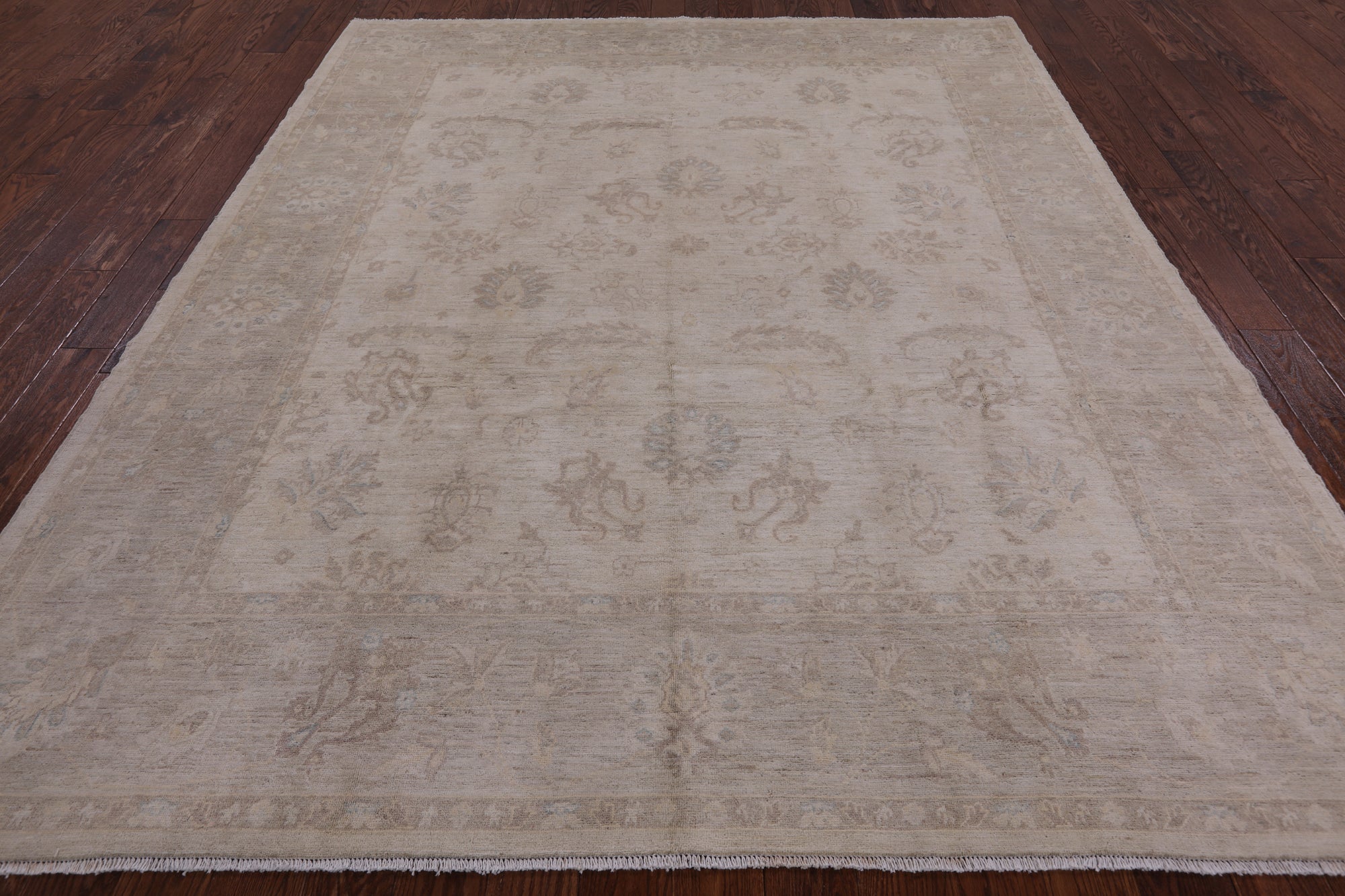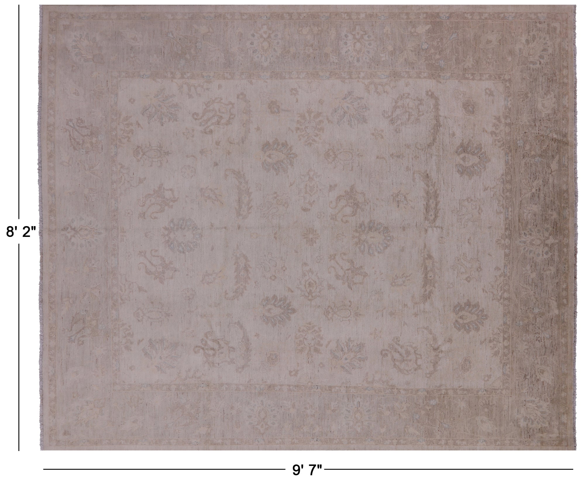 Ivory 8' 2" X 9' 7" Turkish Oushak Washed Out Handmade Wool Rug - P2775