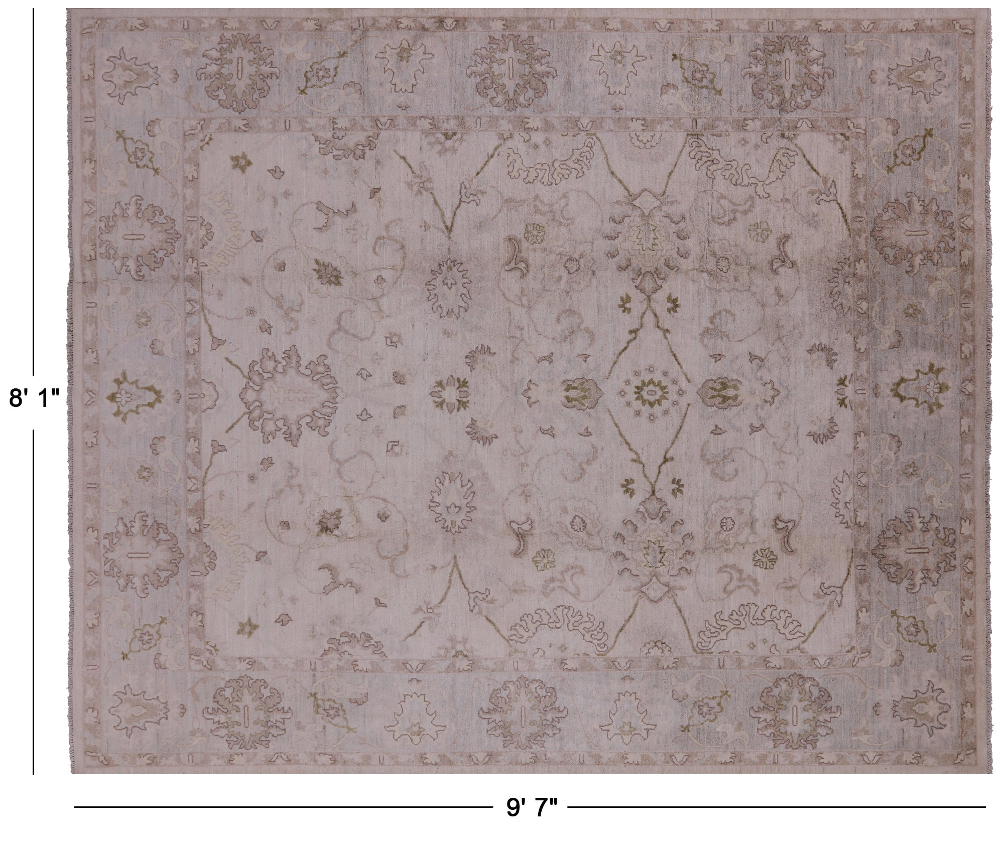 Ivory 8' 1" X 9' 7" Washed Out Turkish Oushak Hand Knotted Wool Rug - P2773