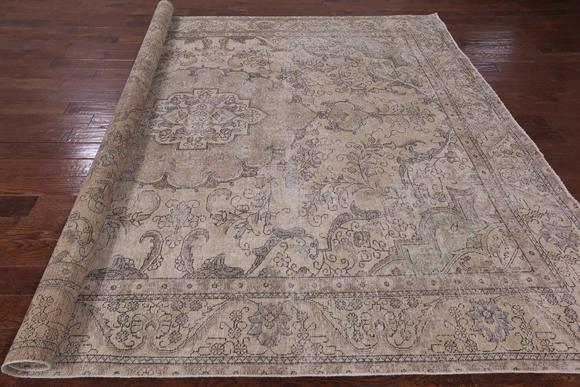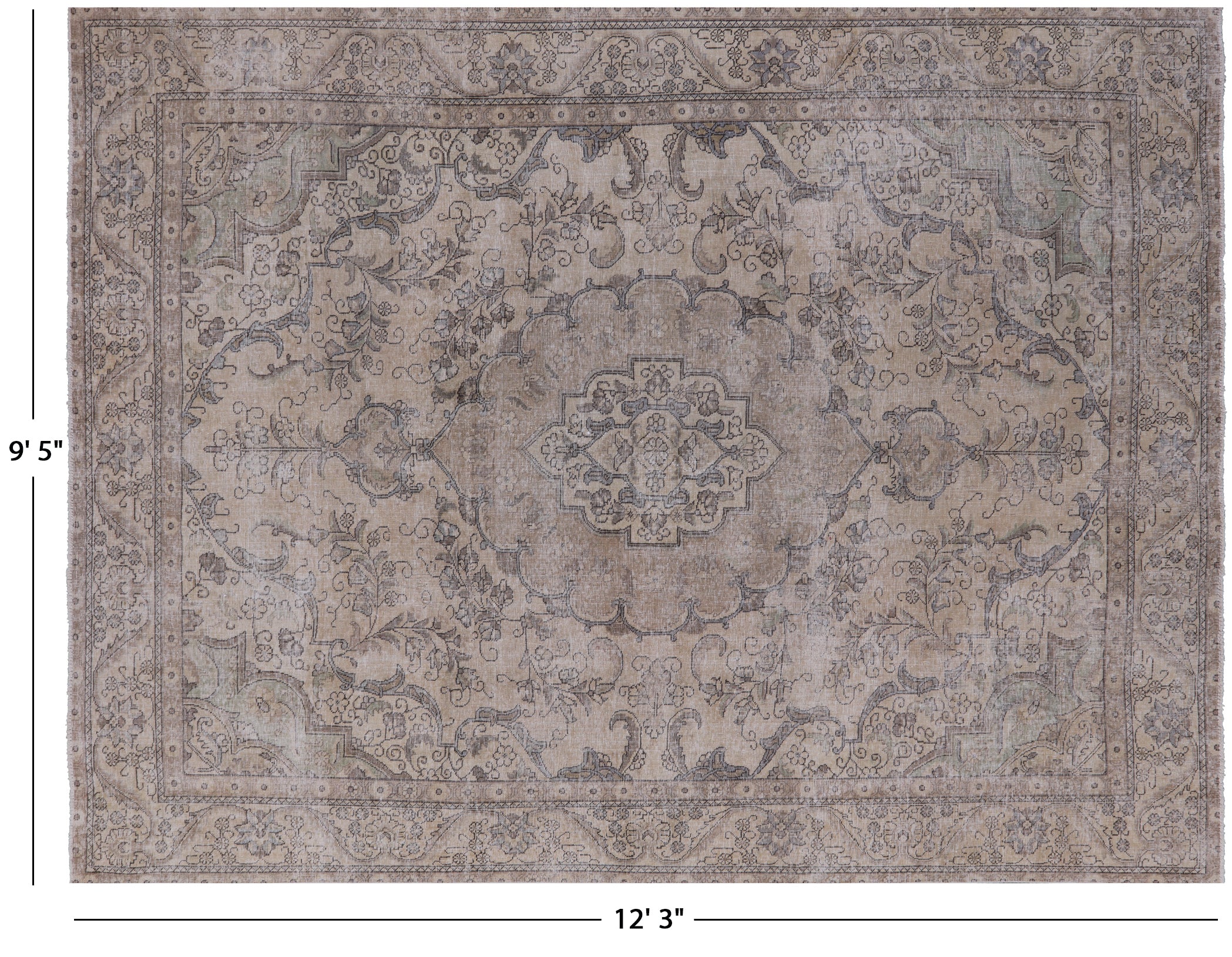 9' 5" X 12' 3" Persian Vintage White Wash Handmade Area Rug - Q1942
