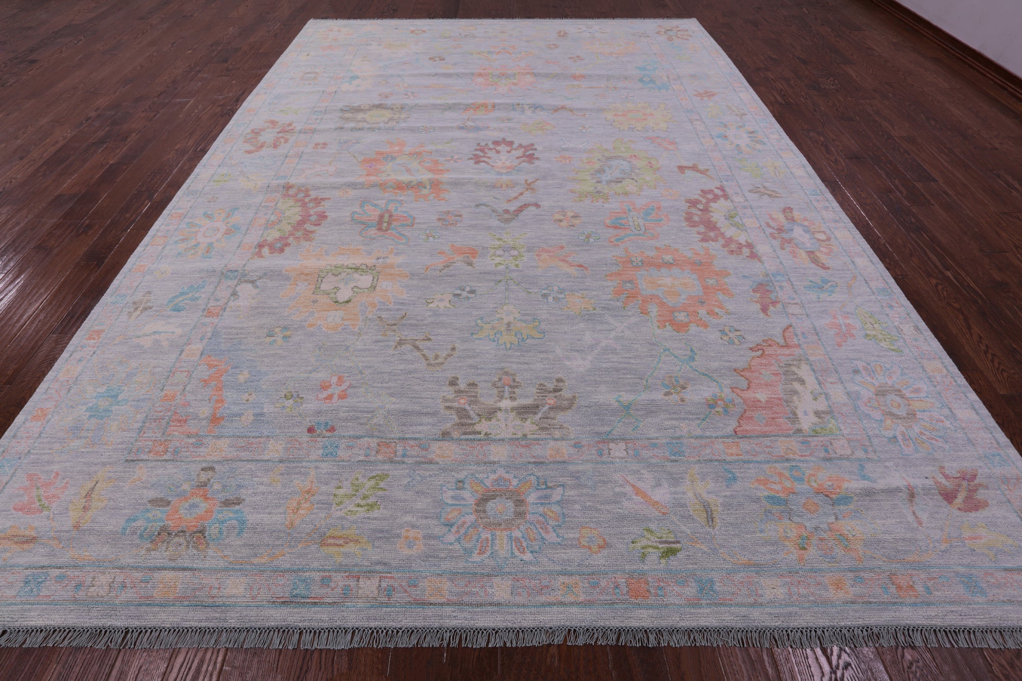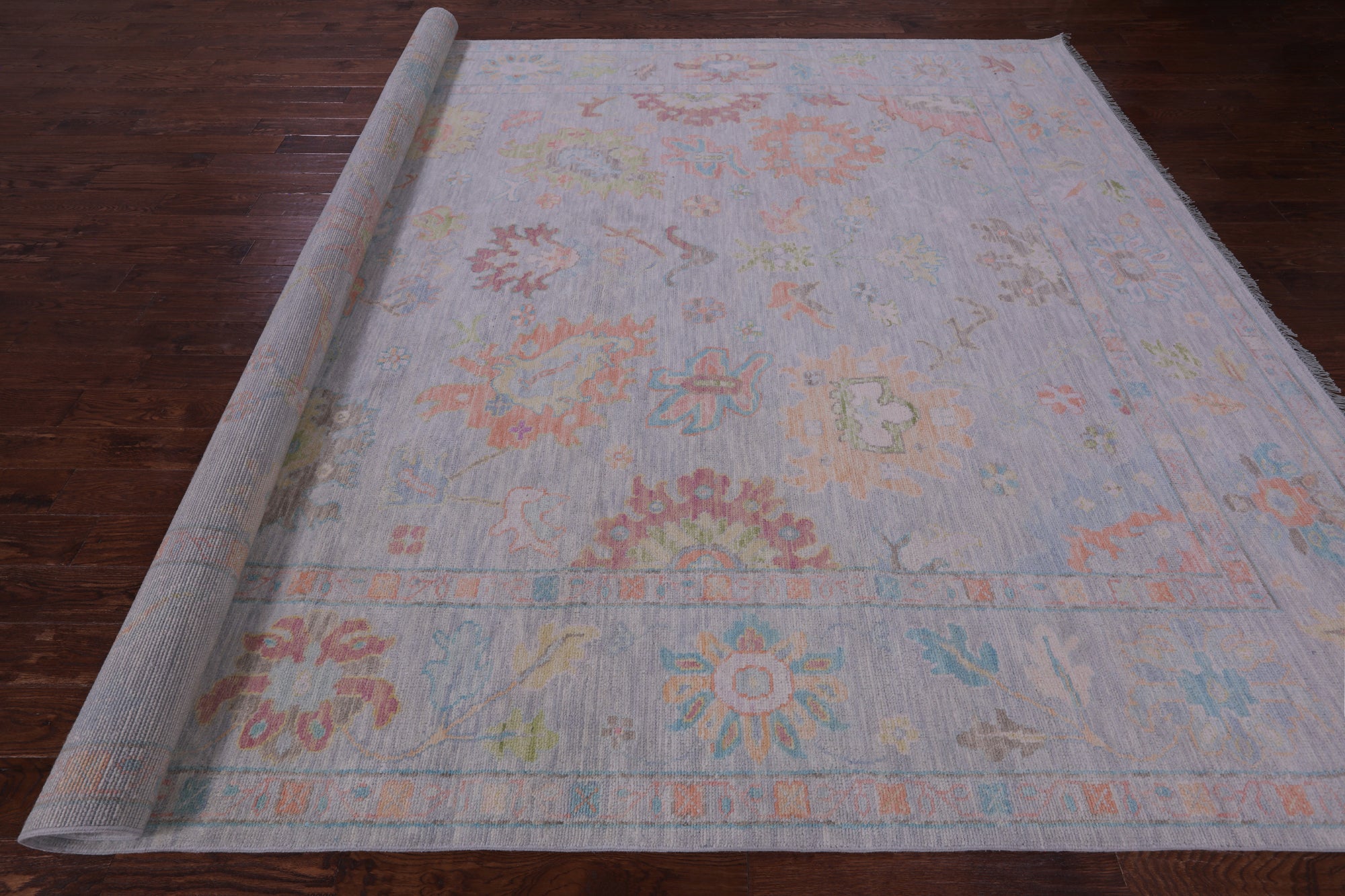 Silver Turkish Angora Oushak Hand Knotted Wool Rug 10' 3" X 13' 11" - Q21250 is backordered and will ship as soon as it is back in stock.