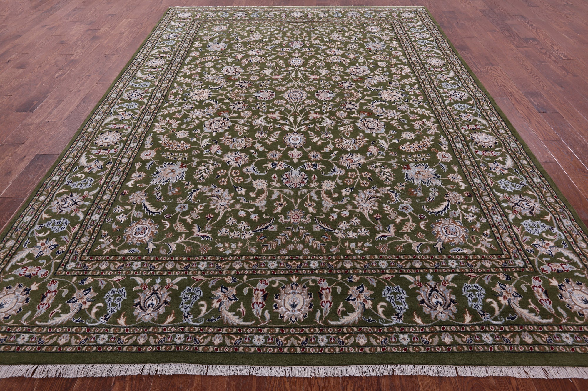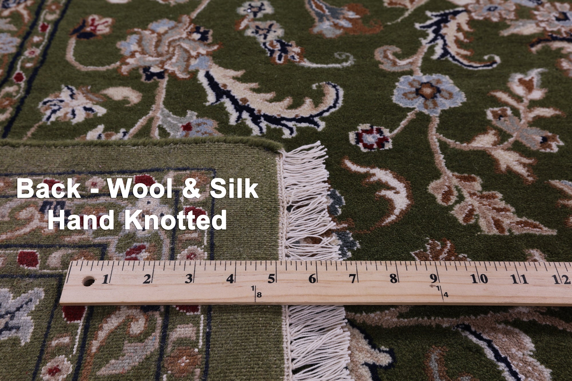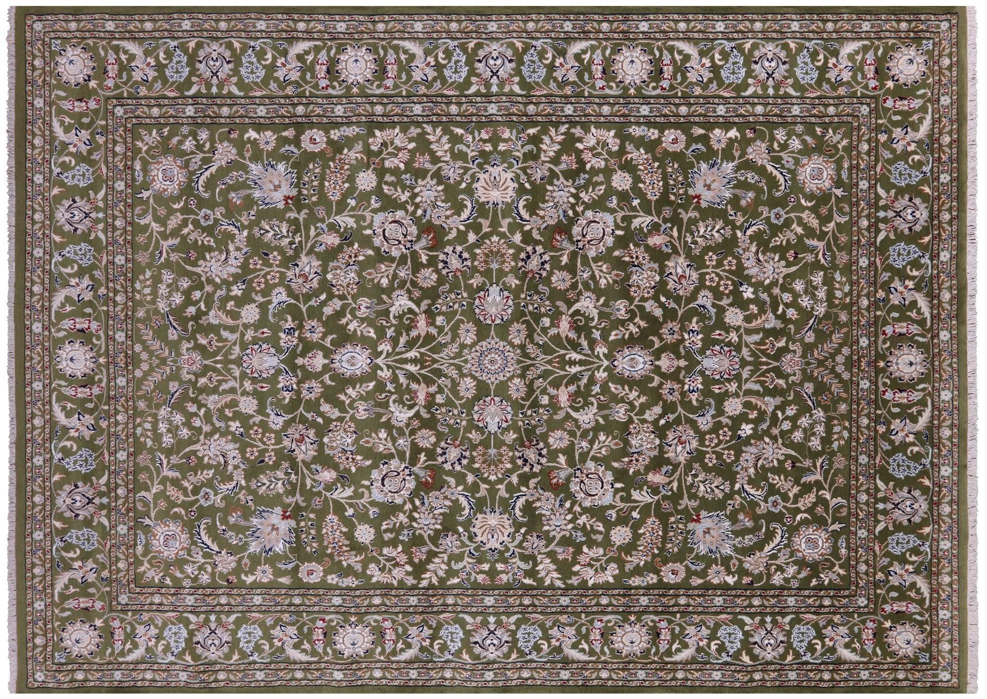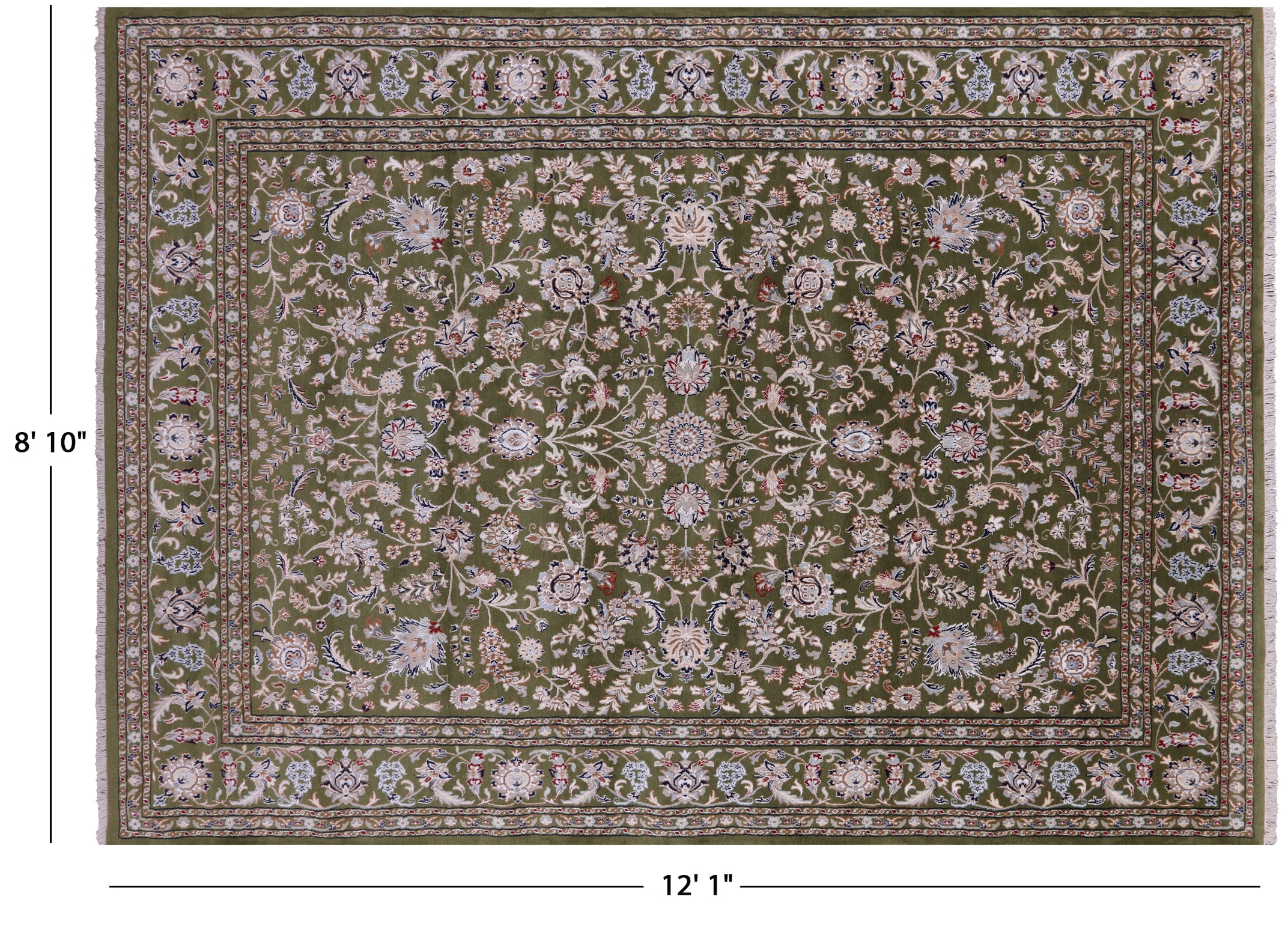Green 8' 10" X 12' 1" Persian Nain Wool & Silk Hand Knotted Rug - Q21149