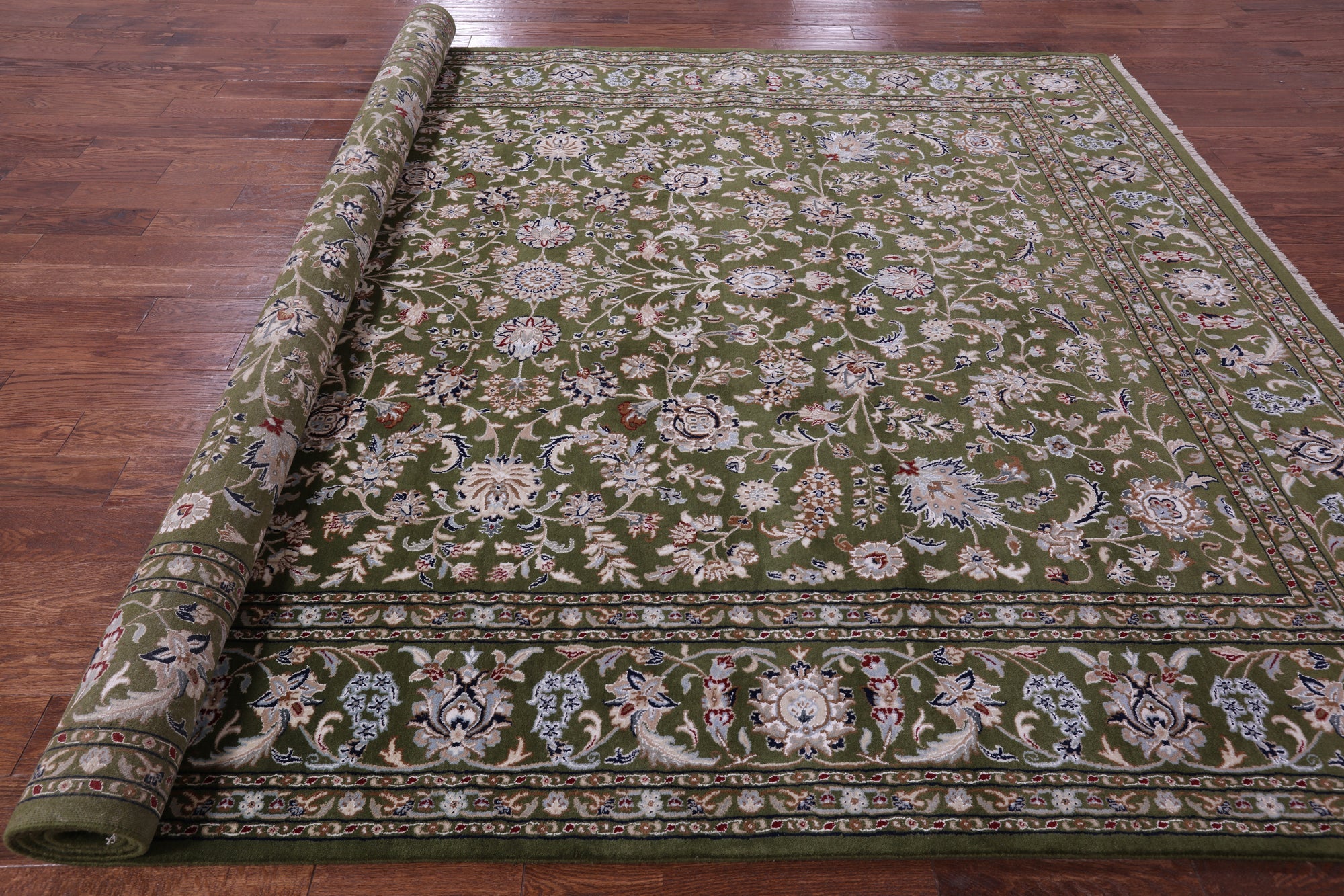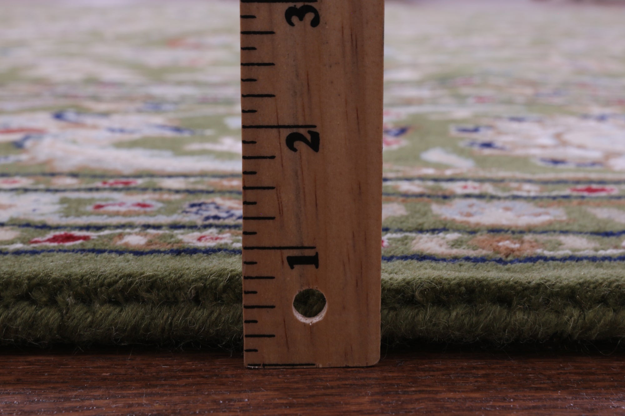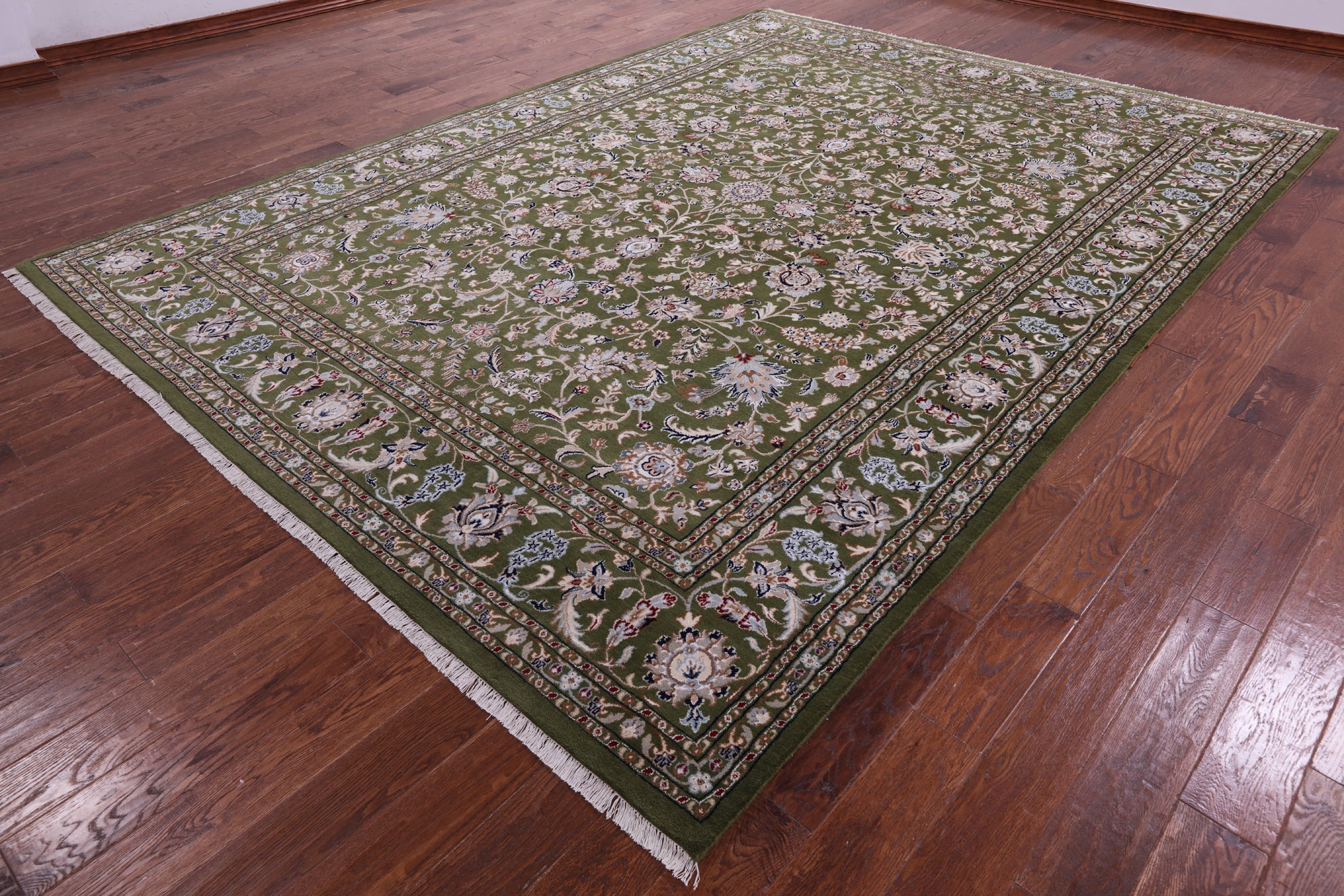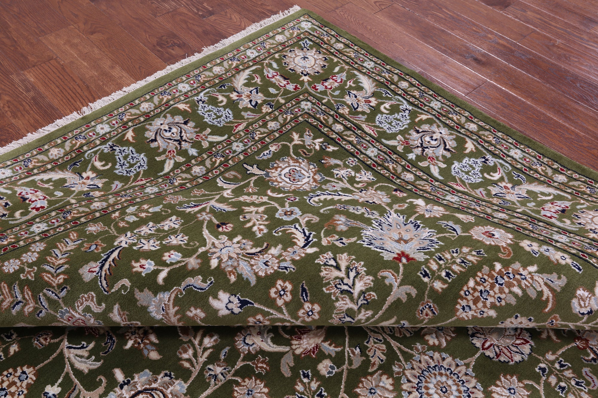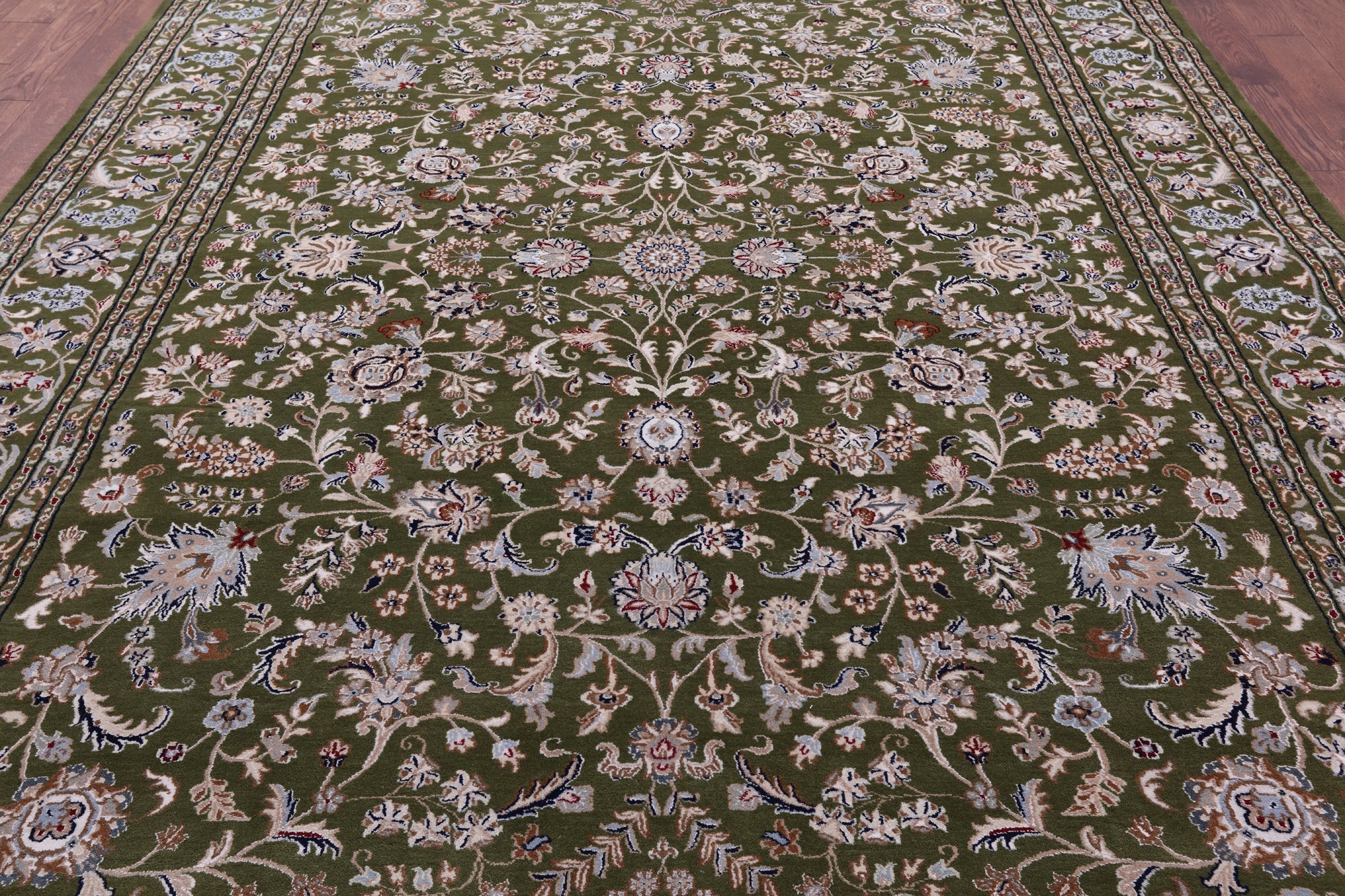 Green 8' 10" X 12' 1" Persian Nain Wool & Silk Hand Knotted Rug - Q21149