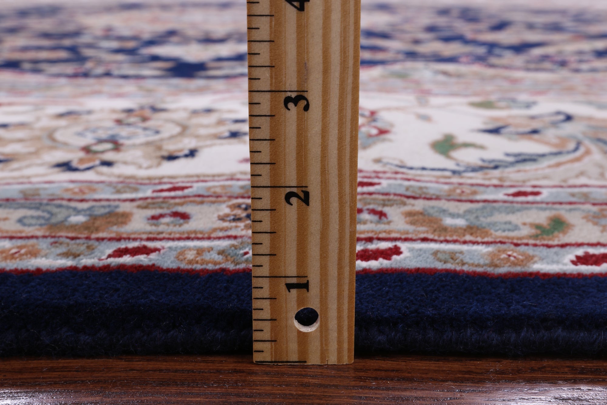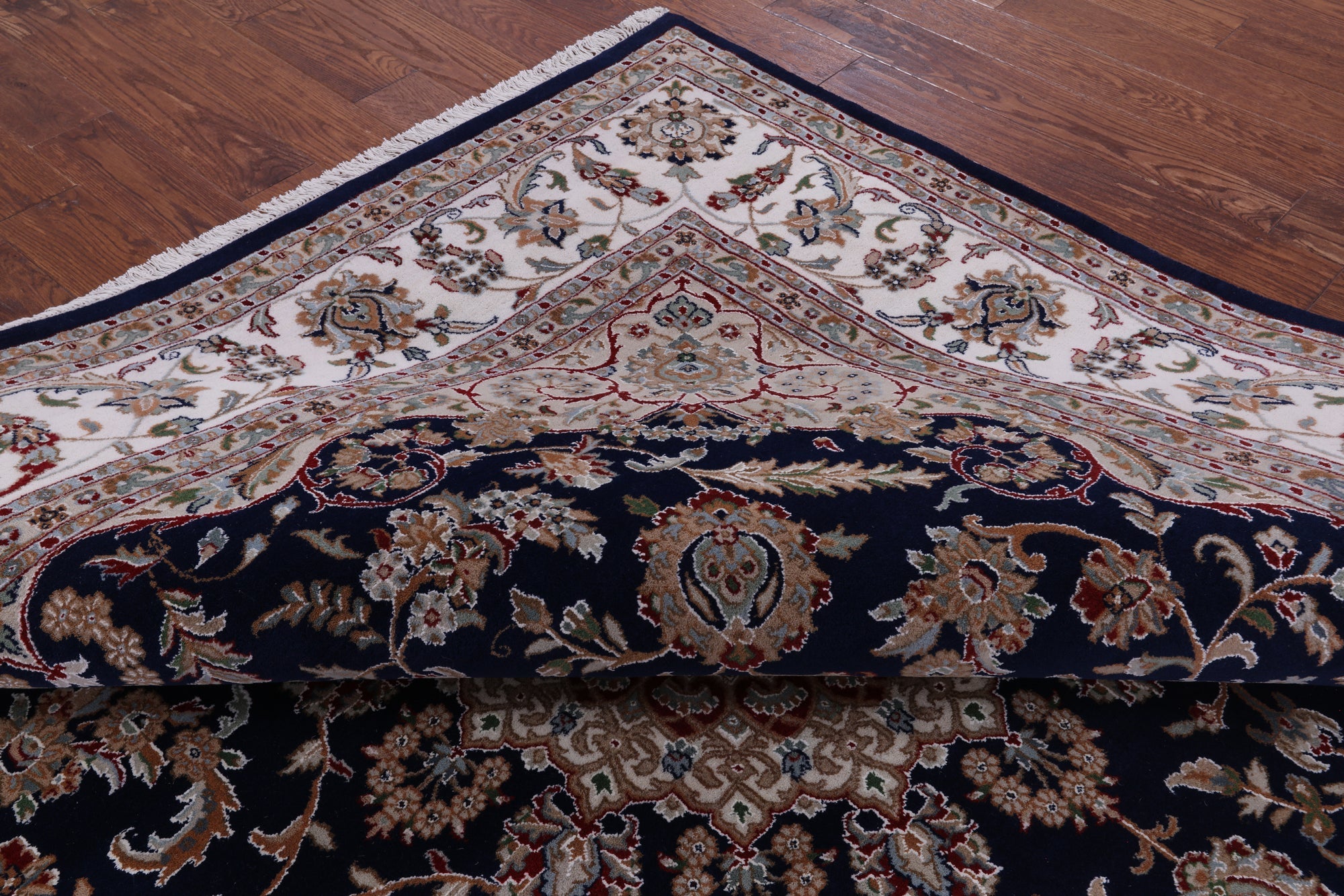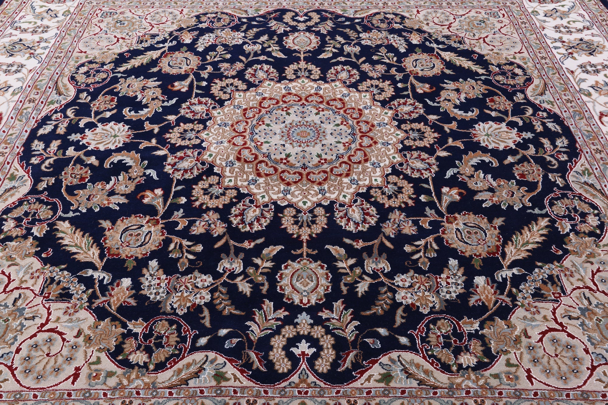 Navy Blue 9' Square Persian Nain Hand Knotted Wool & Silk Rug - Q9323