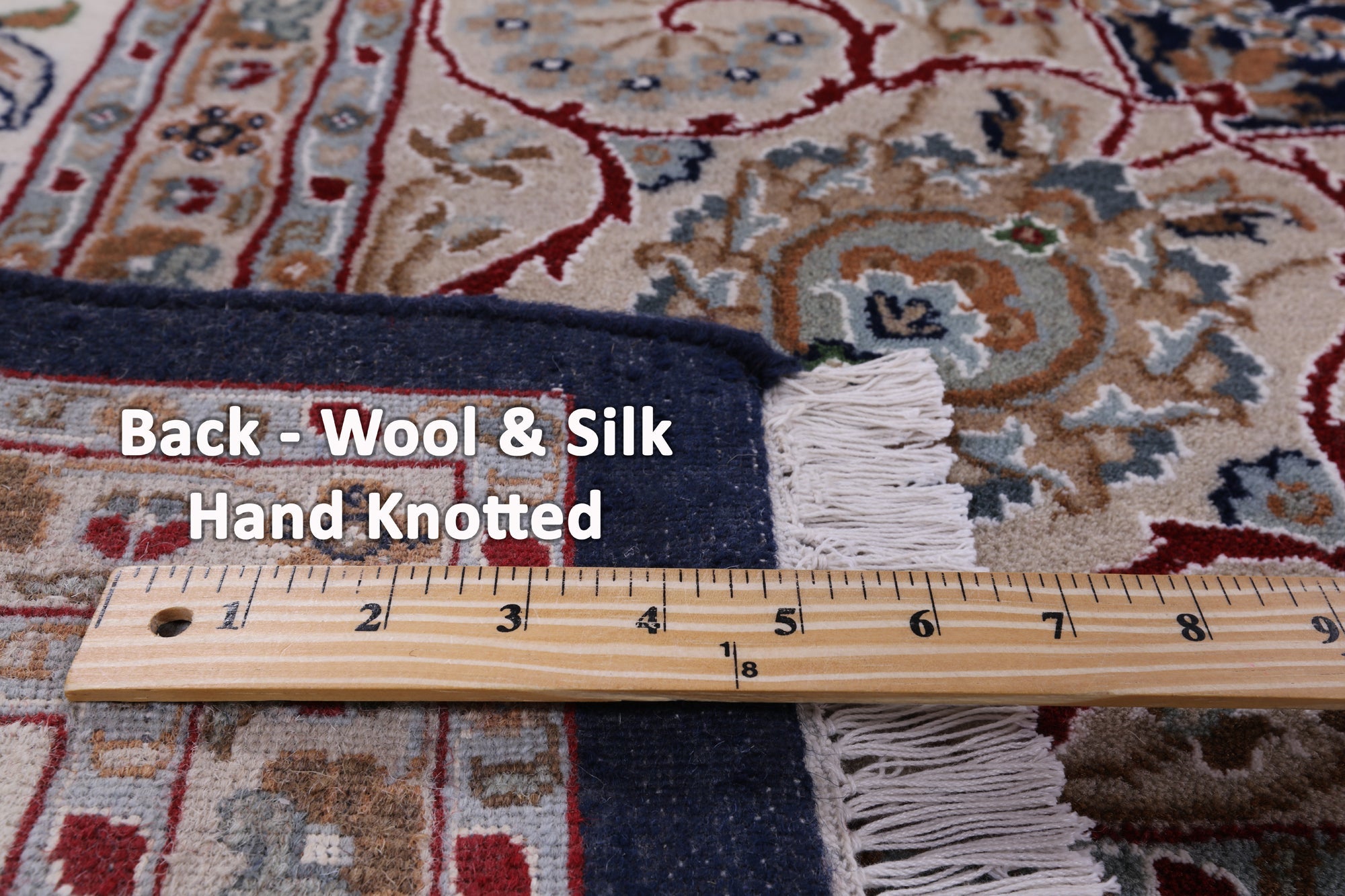 Navy Blue 9' Square Persian Nain Hand Knotted Wool & Silk Rug - Q9323 is backordered and will ship as soon as it is back in stock.