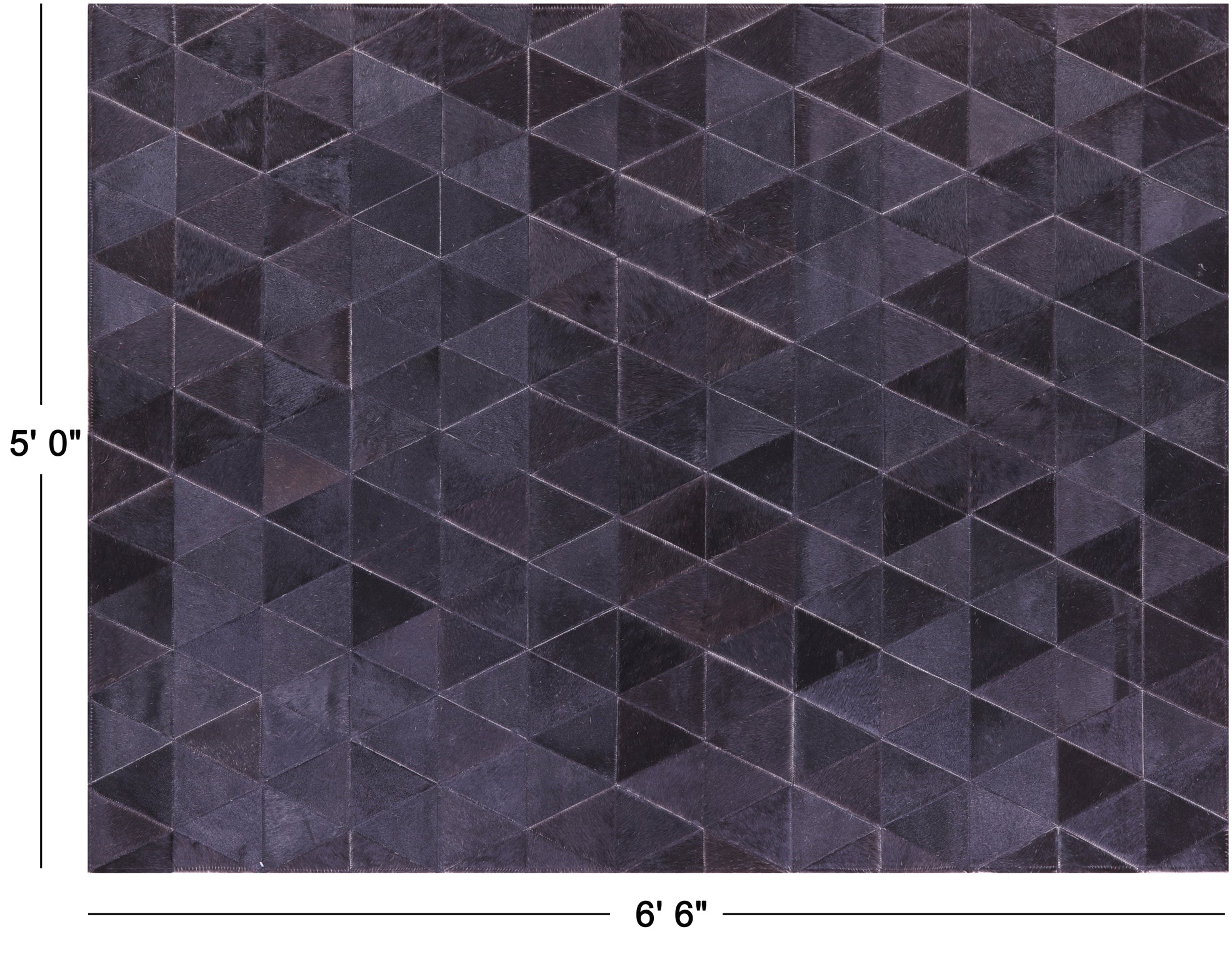 5' 0" X 6' 6" Black Natural Cowhide Hand Stitched Rug - C3432