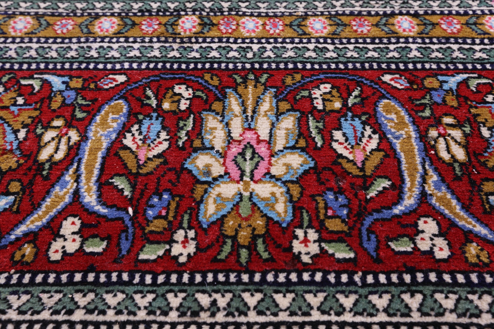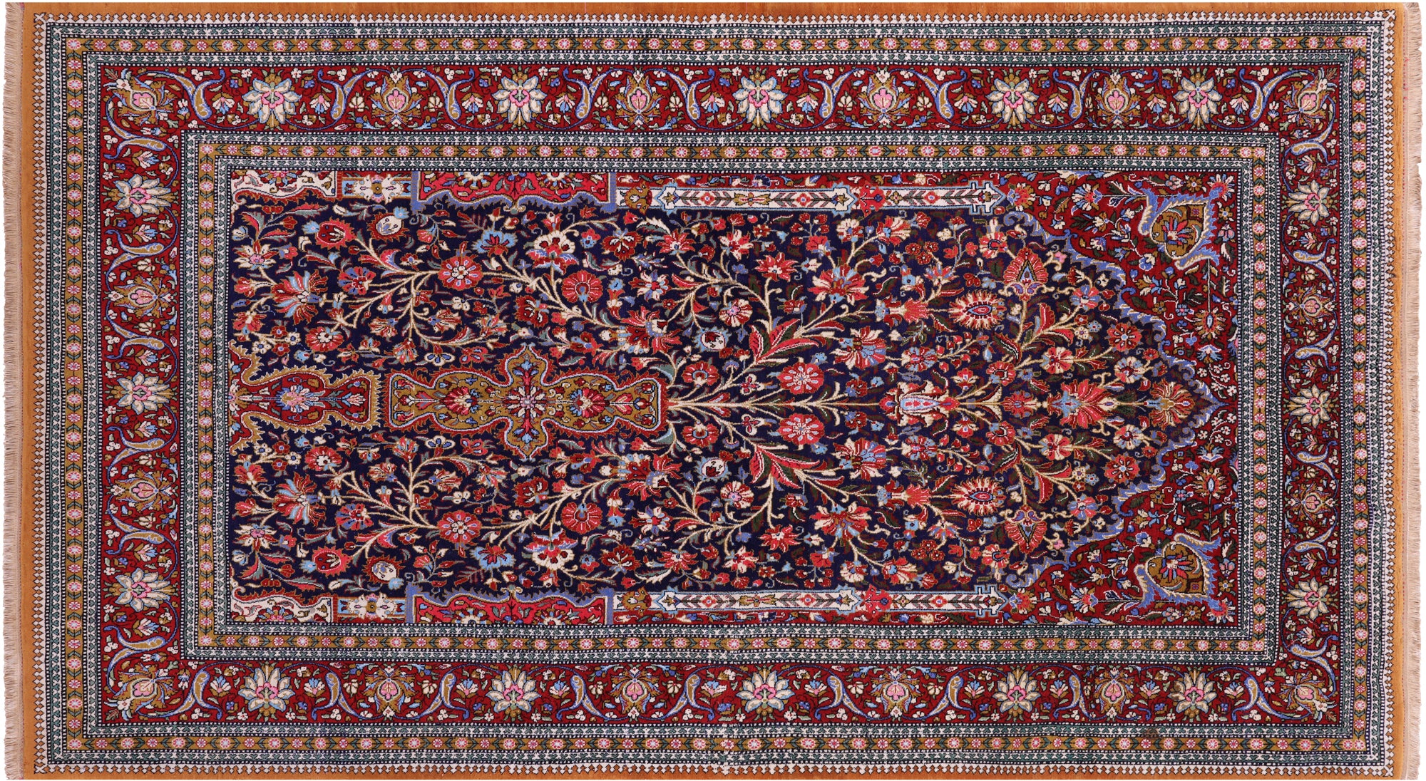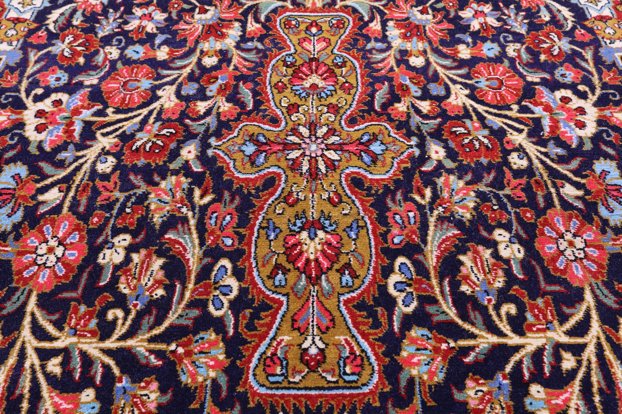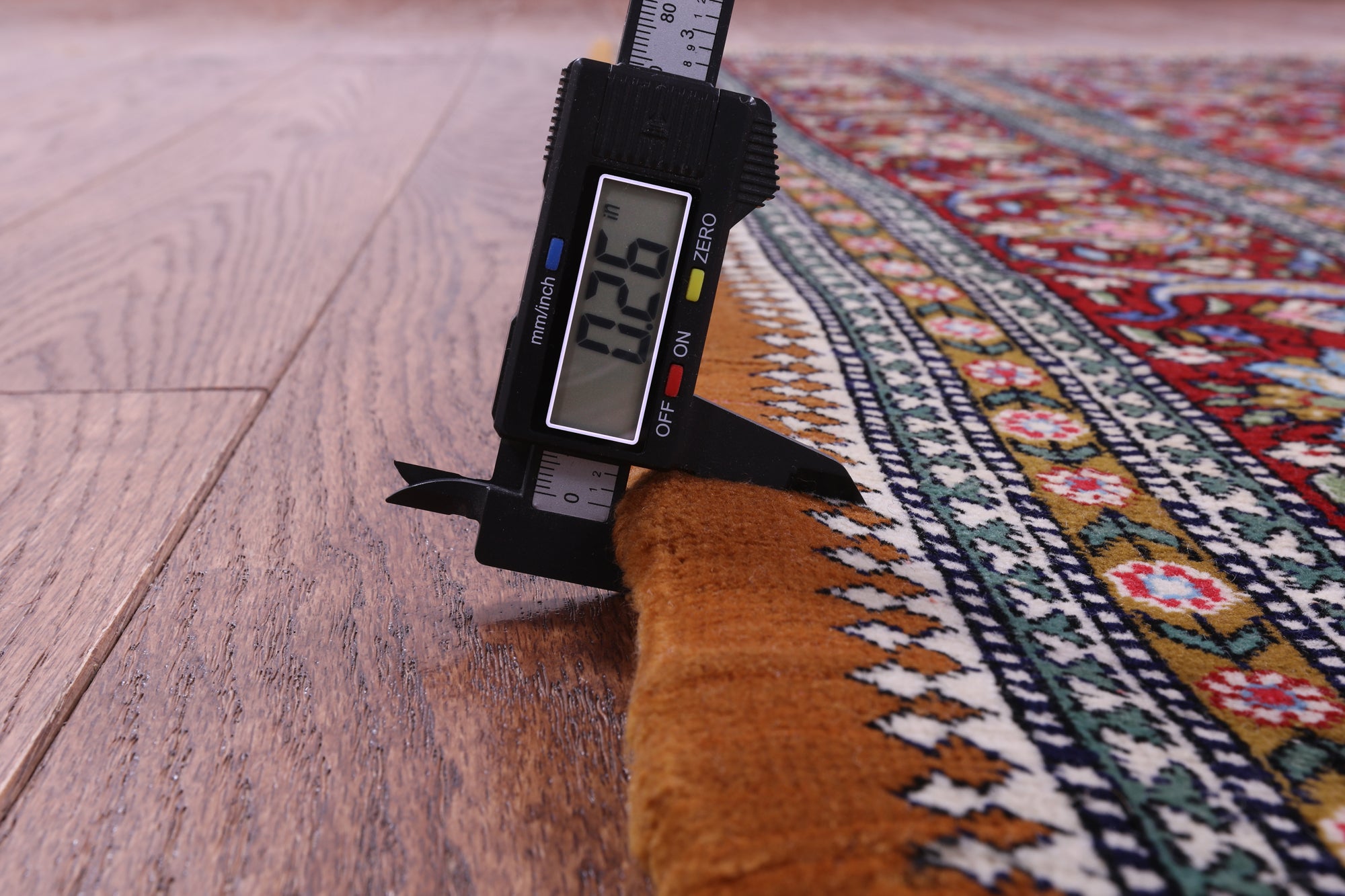 Qum rugs are known for their fine craftsmanship, intricate patterns, and exceptional detail. Typically woven with high-quality wool, these rugs often feature graceful floral or medallion designs in shades of red, blue, ivory, and other soft tones. Their refined look and precise weaving make them a popular choice for adding elegance and character to any space.