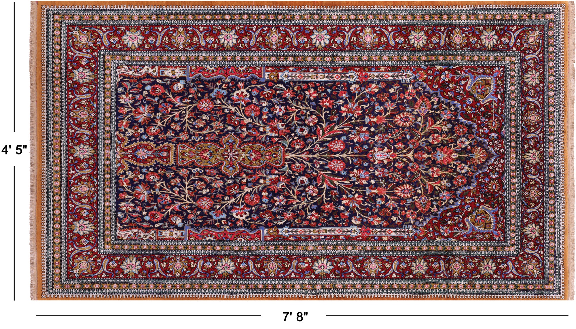 Black 4' 5" X 7' 8" Persian Qum Handmade Wool Rug - Q23664 is backordered and will ship as soon as it is back in stock.