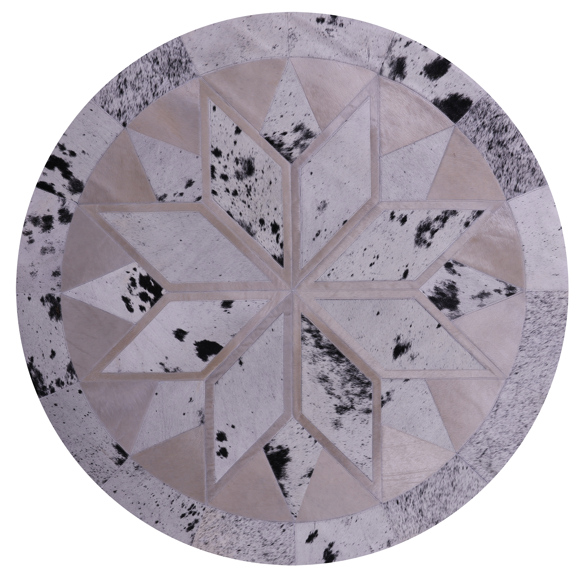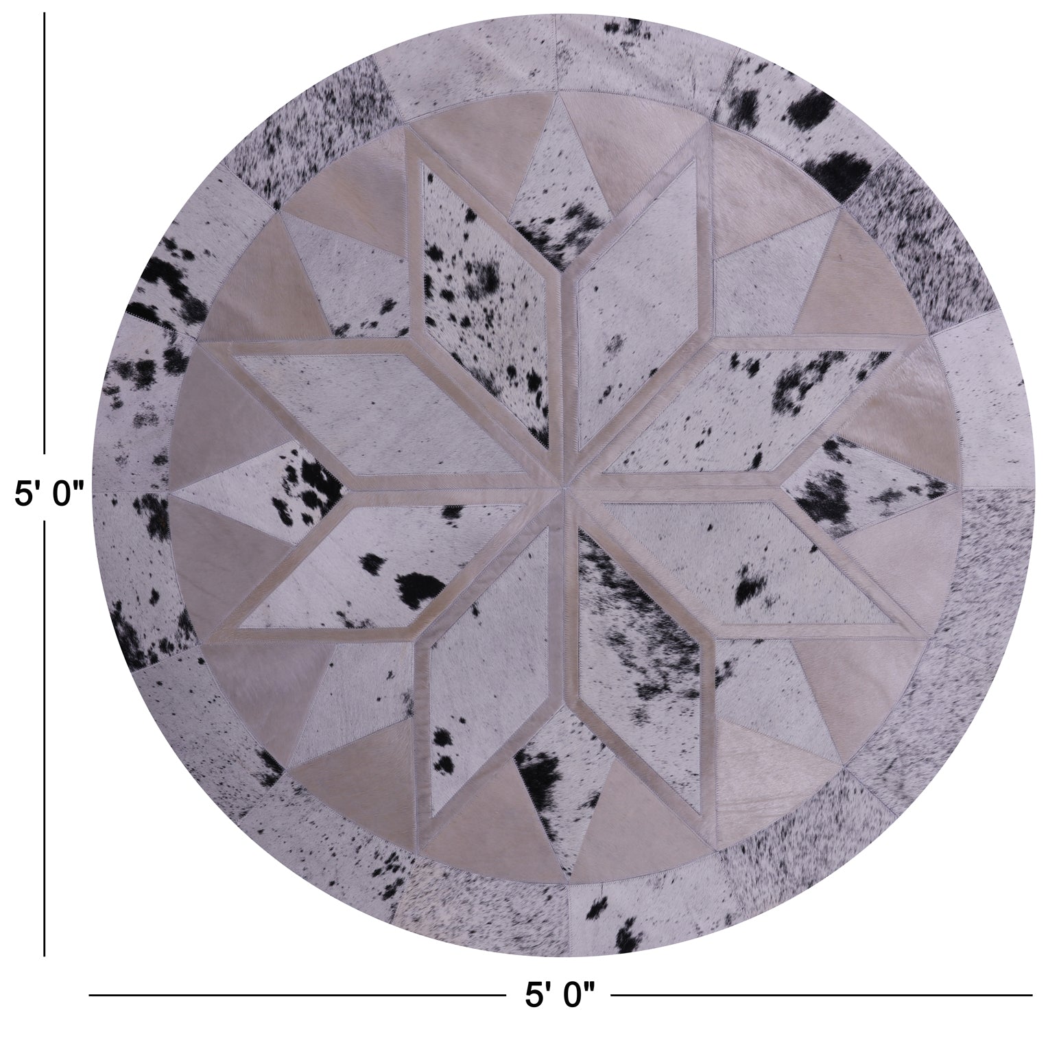 5' 0" X 5' 0" Black Salt & Pepper Round Natural Cowhide Hand Stitched Rug - C3564