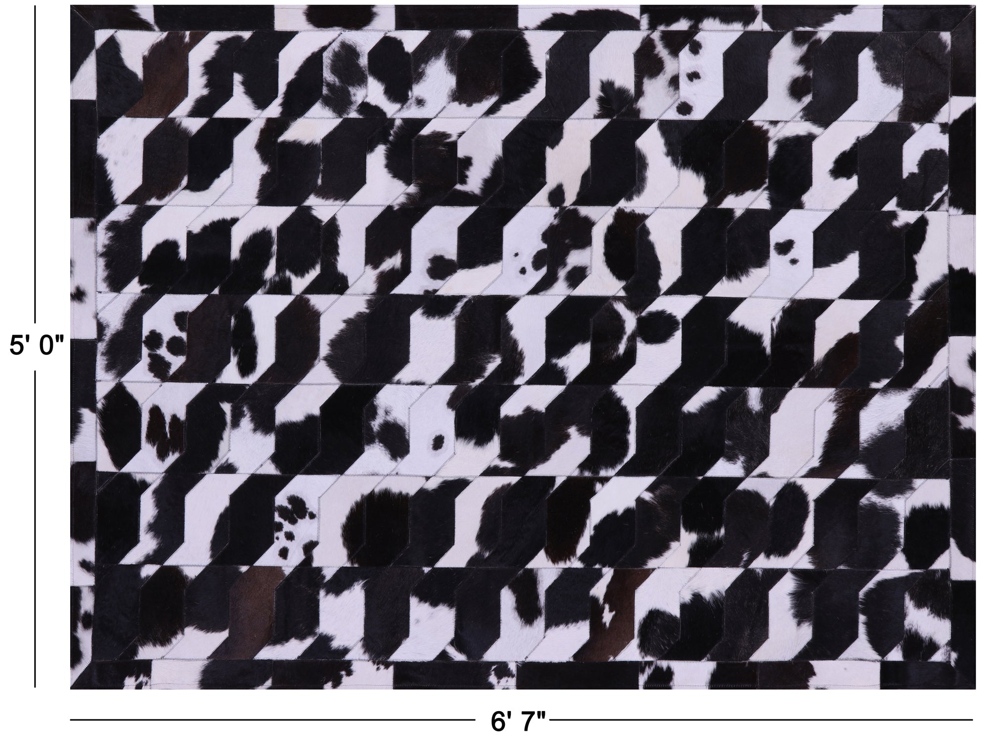 5' 0" X 6' 7" Black & White Natural Cowhide Hand Stitched Rug - C3434