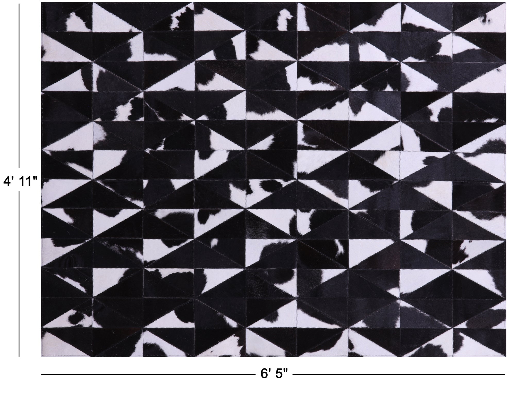 4' 11" X 6' 5" Black & White Natural Cowhide Hand Stitched Rug - C3447 is backordered and will ship as soon as it is back in stock.