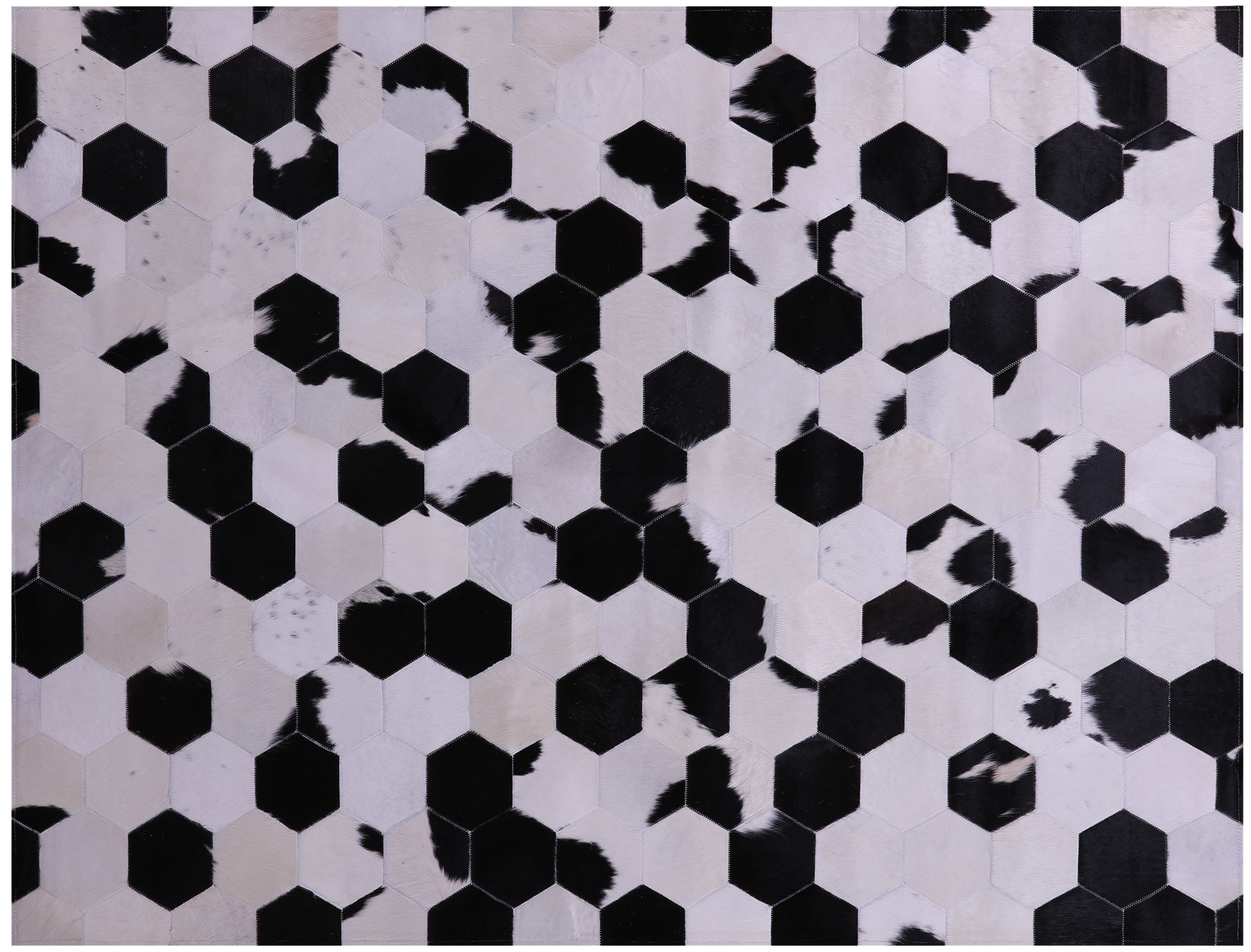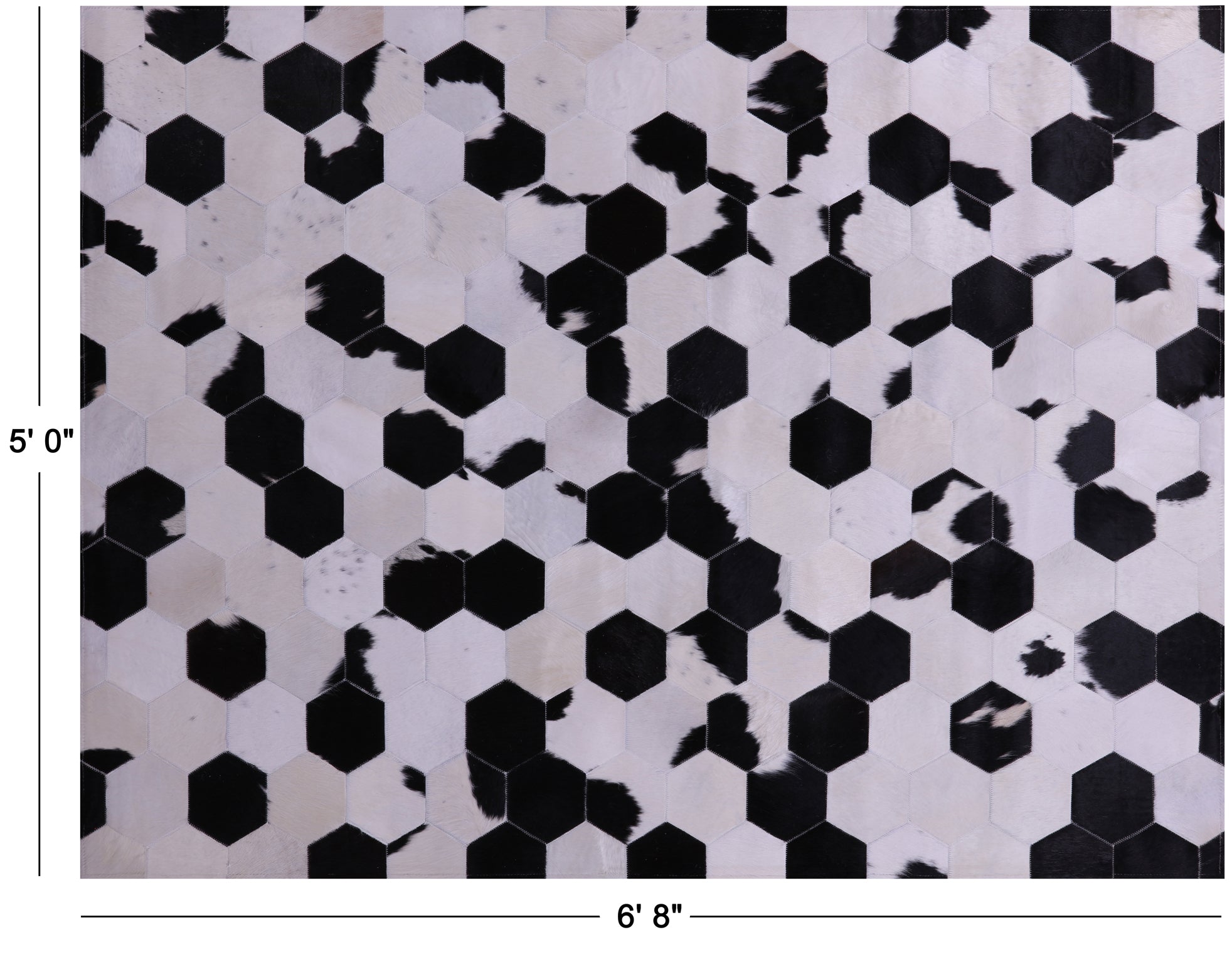 5' 0" X 6' 8" Black & White Natural Cowhide Hand Stitched Rug - C3449