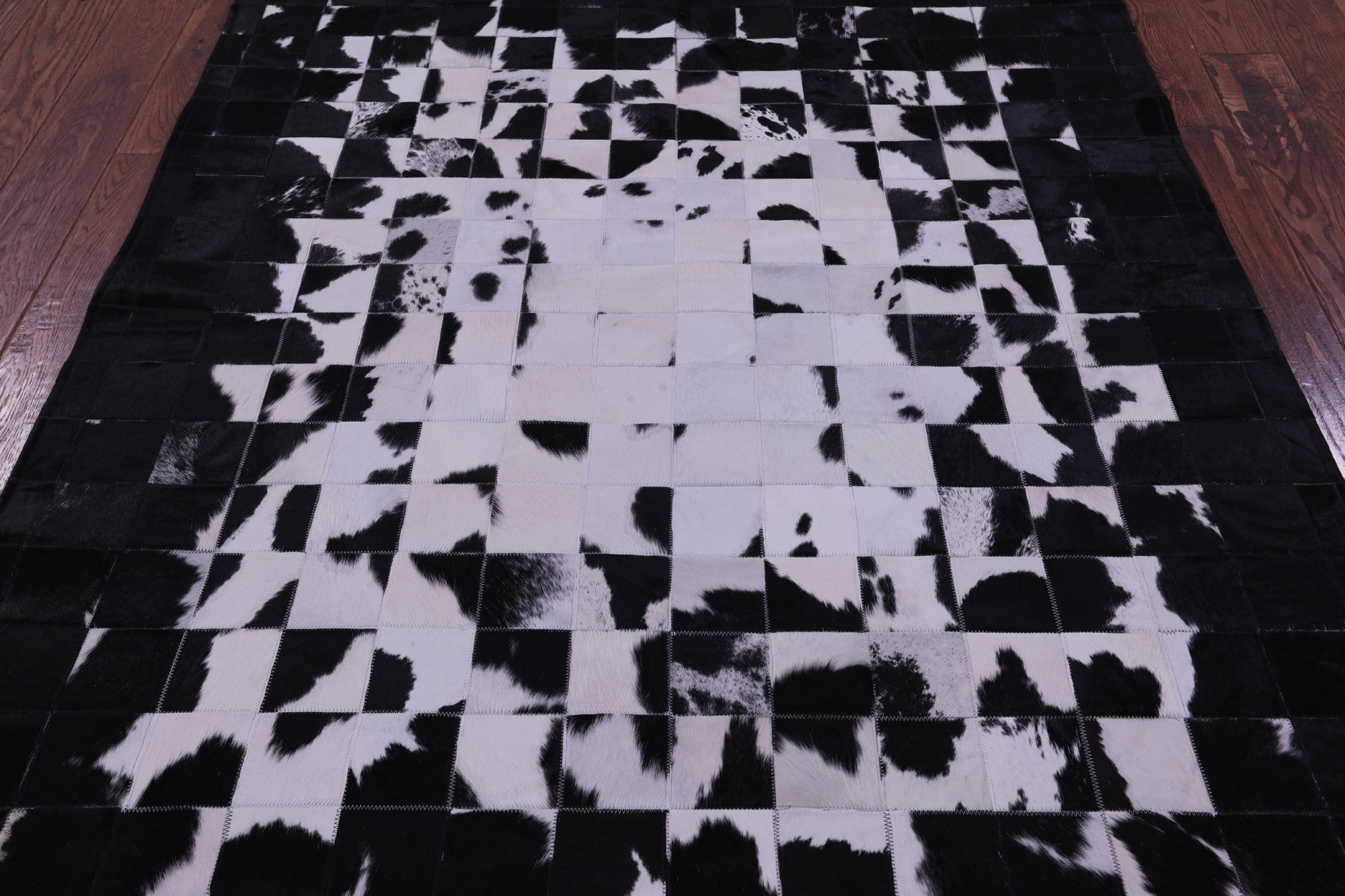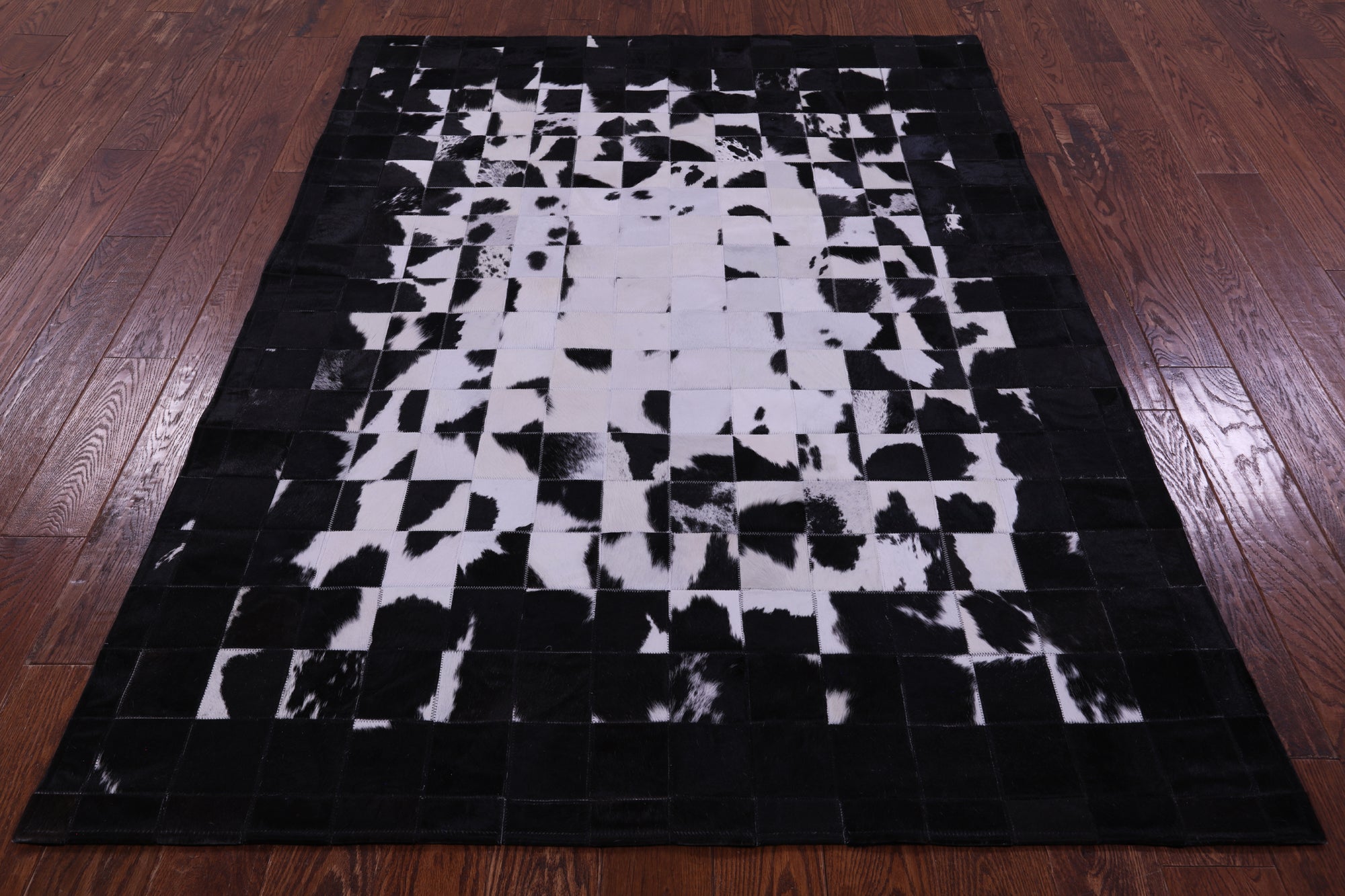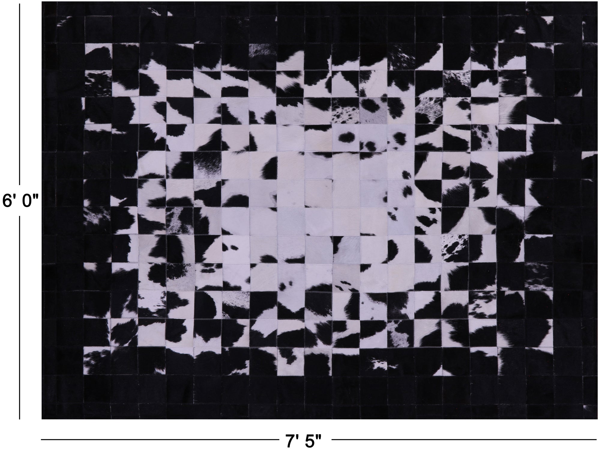 6' 0" X 7' 5" Black & White Natural Cowhide Hand Stitched Rug - C5675