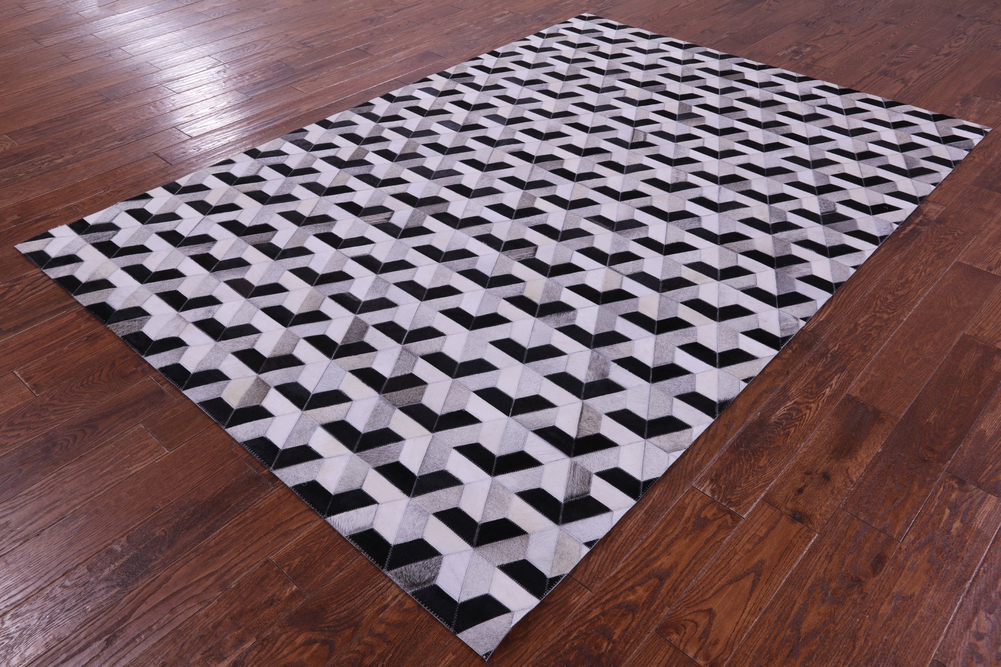 Cowhide rugs are exceptionally unique due to the material they are made from, being 100% organic cowhide. These rugs are expertly stitched together and tanned, making them the only best quality. Many of our Cowhide rugs consist of hexagon shapes and other geometric designs. The natural dyes used to create a large scale of different colors and keep the hide soft and in good shape.
