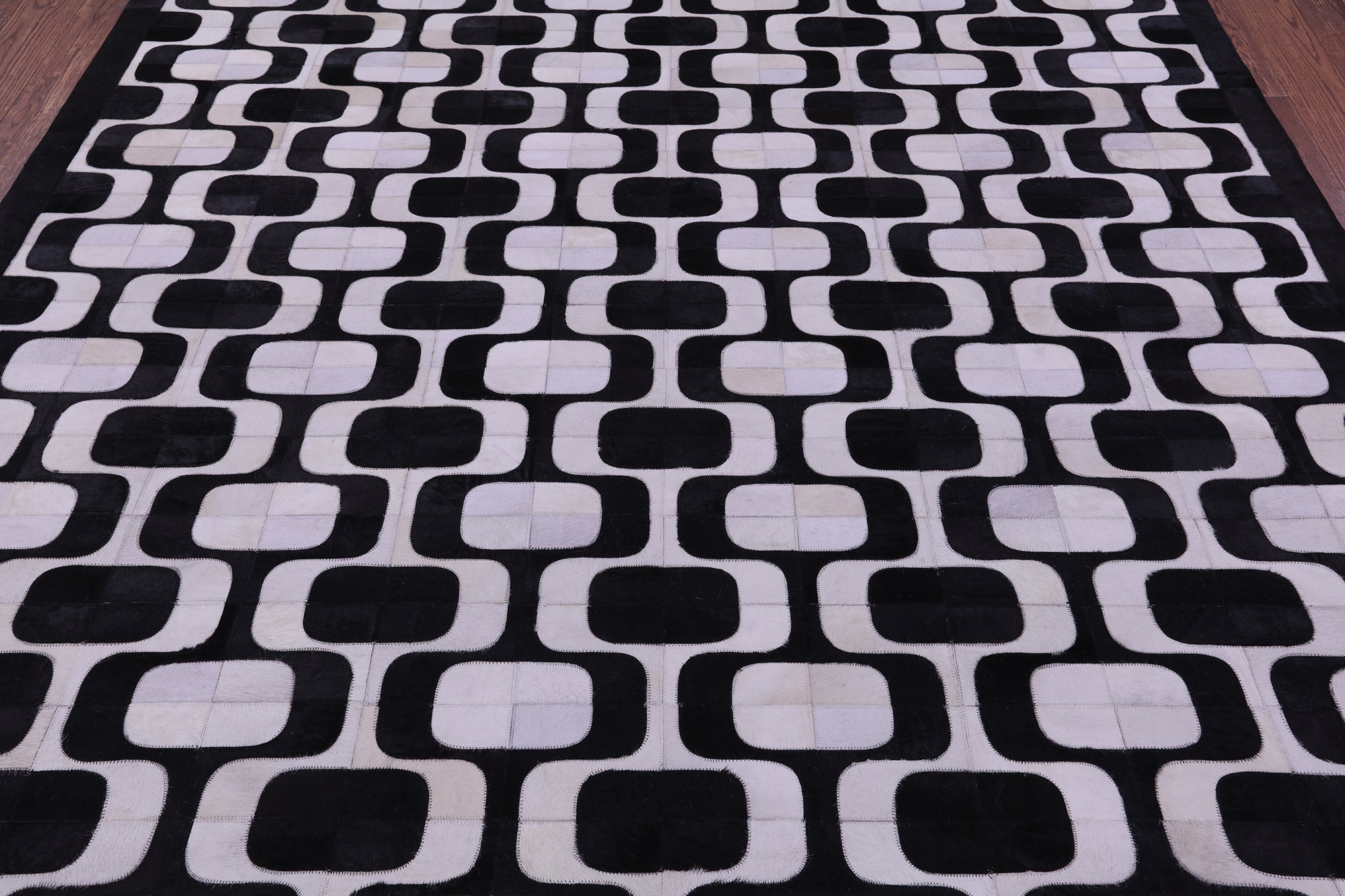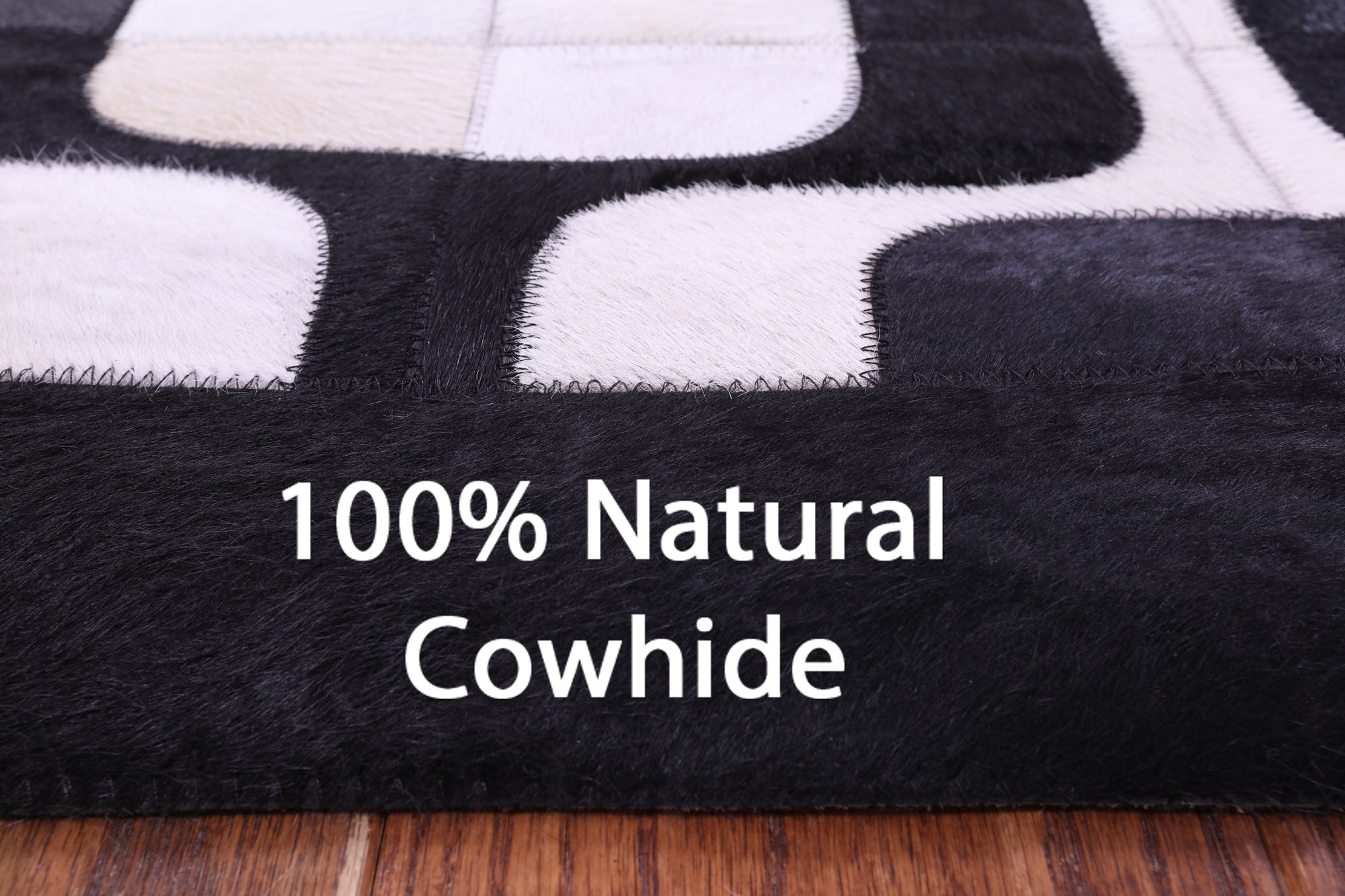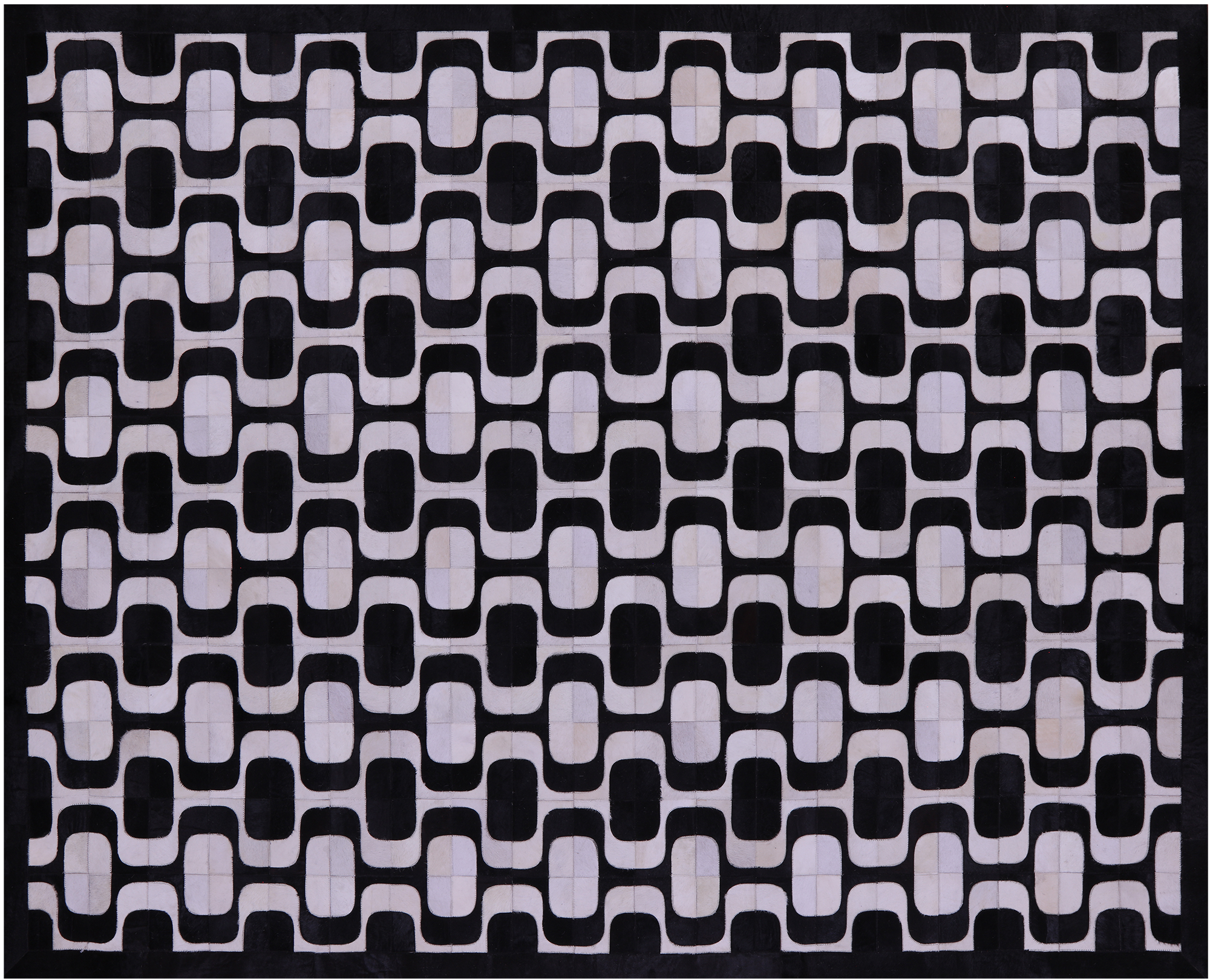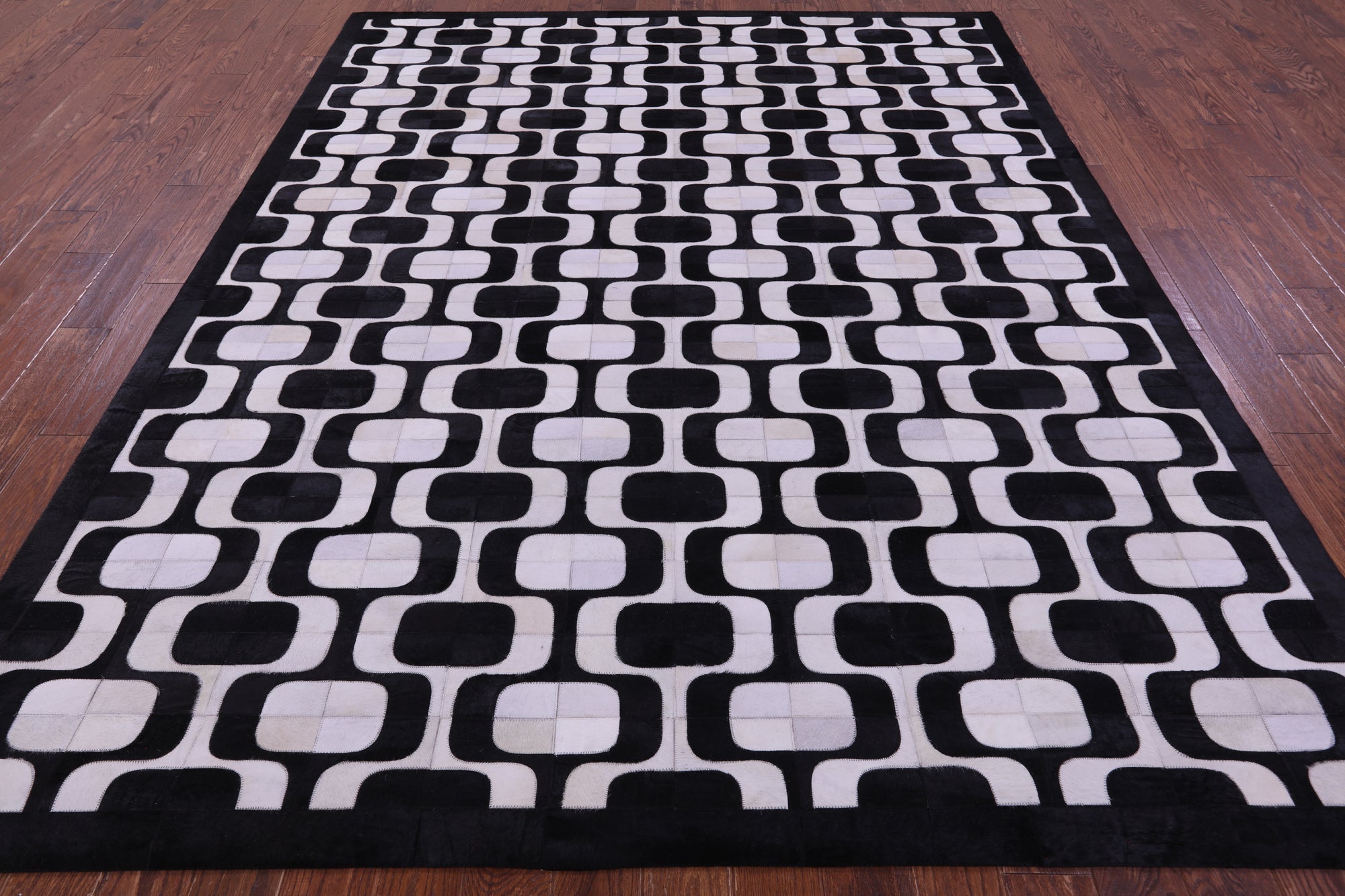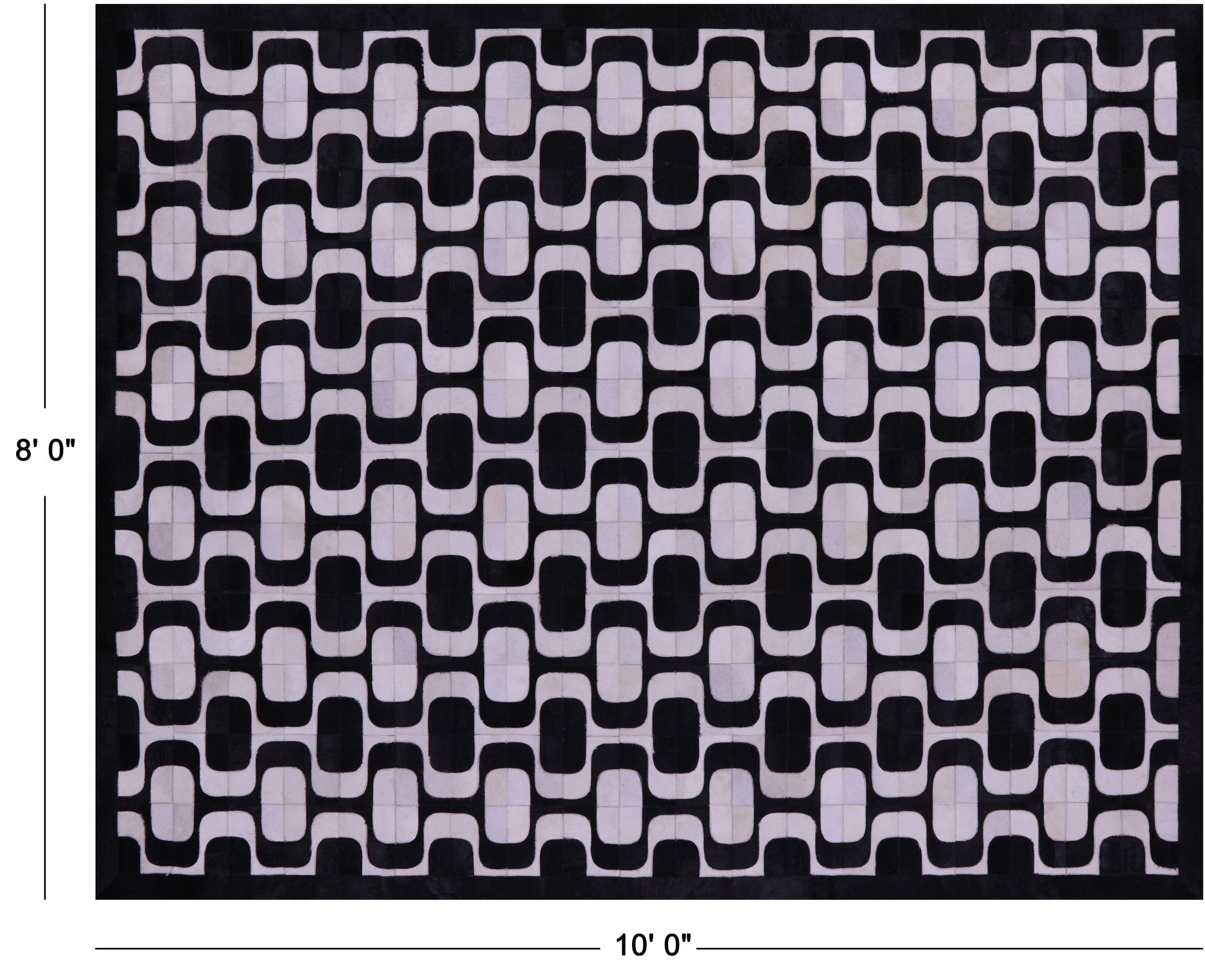8' 0" X 10' 0" Black & White Natural Cowhide Hand Stitched Rug - C5799