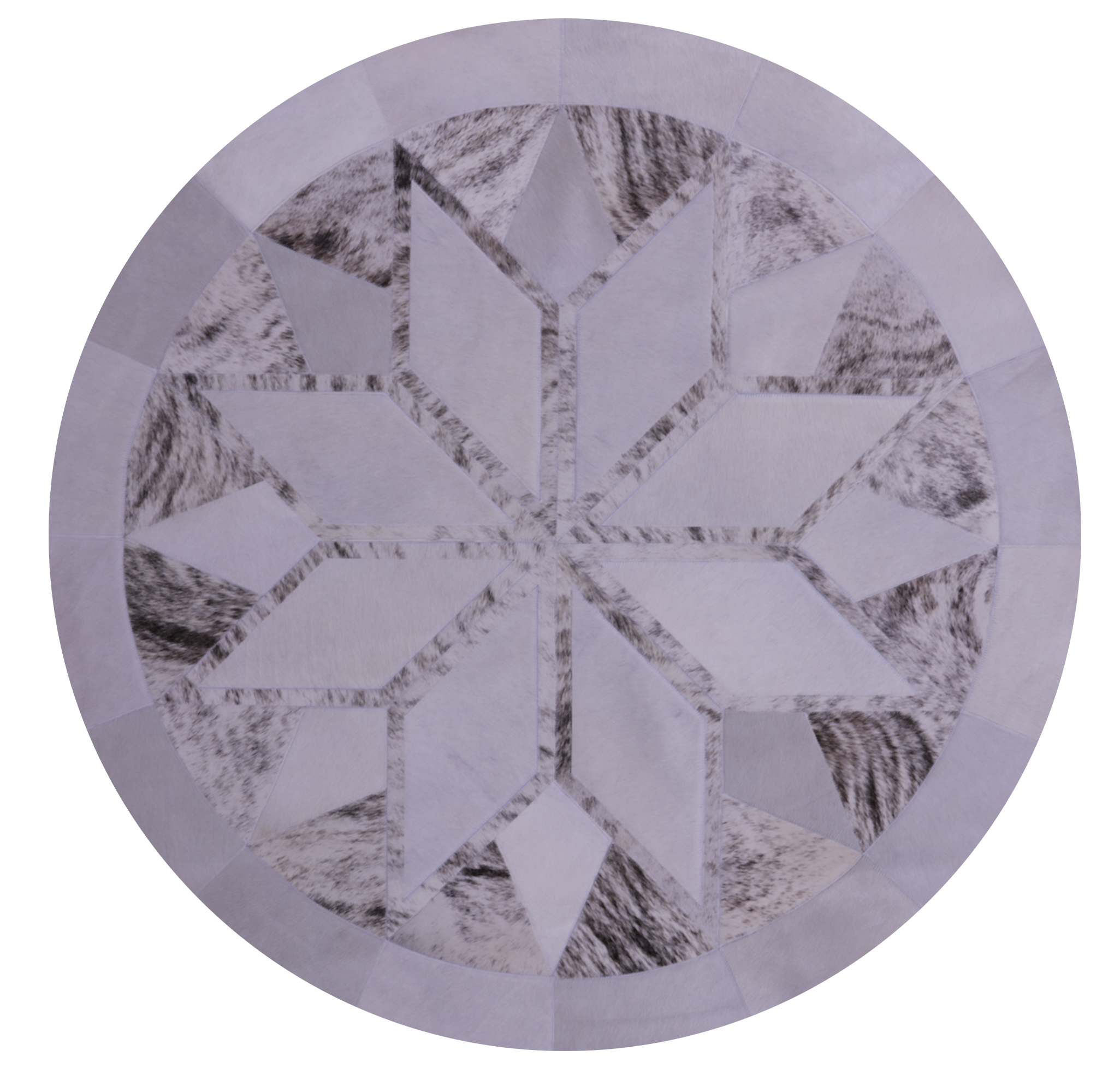 5' 0" X 5' 0" Brindle Round Natural Cowhide Hand Stitched Rug - C3550