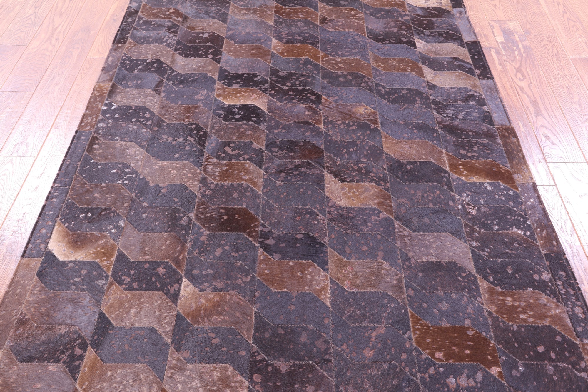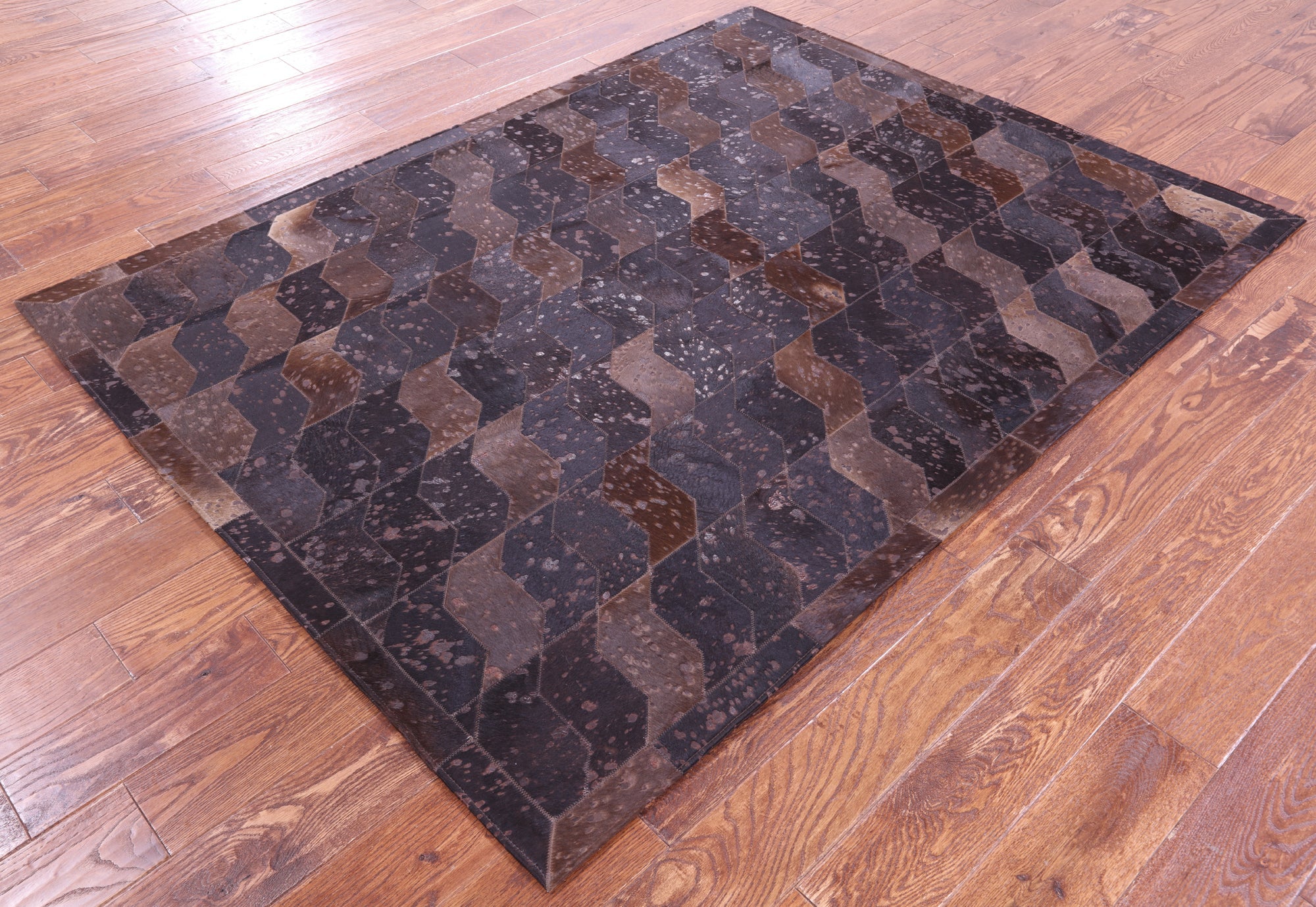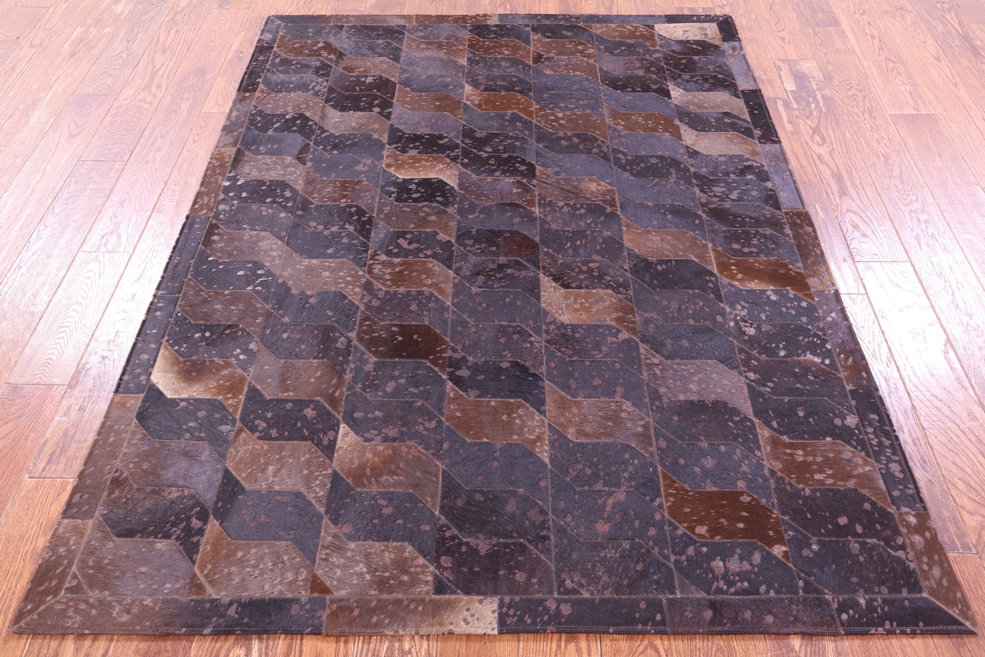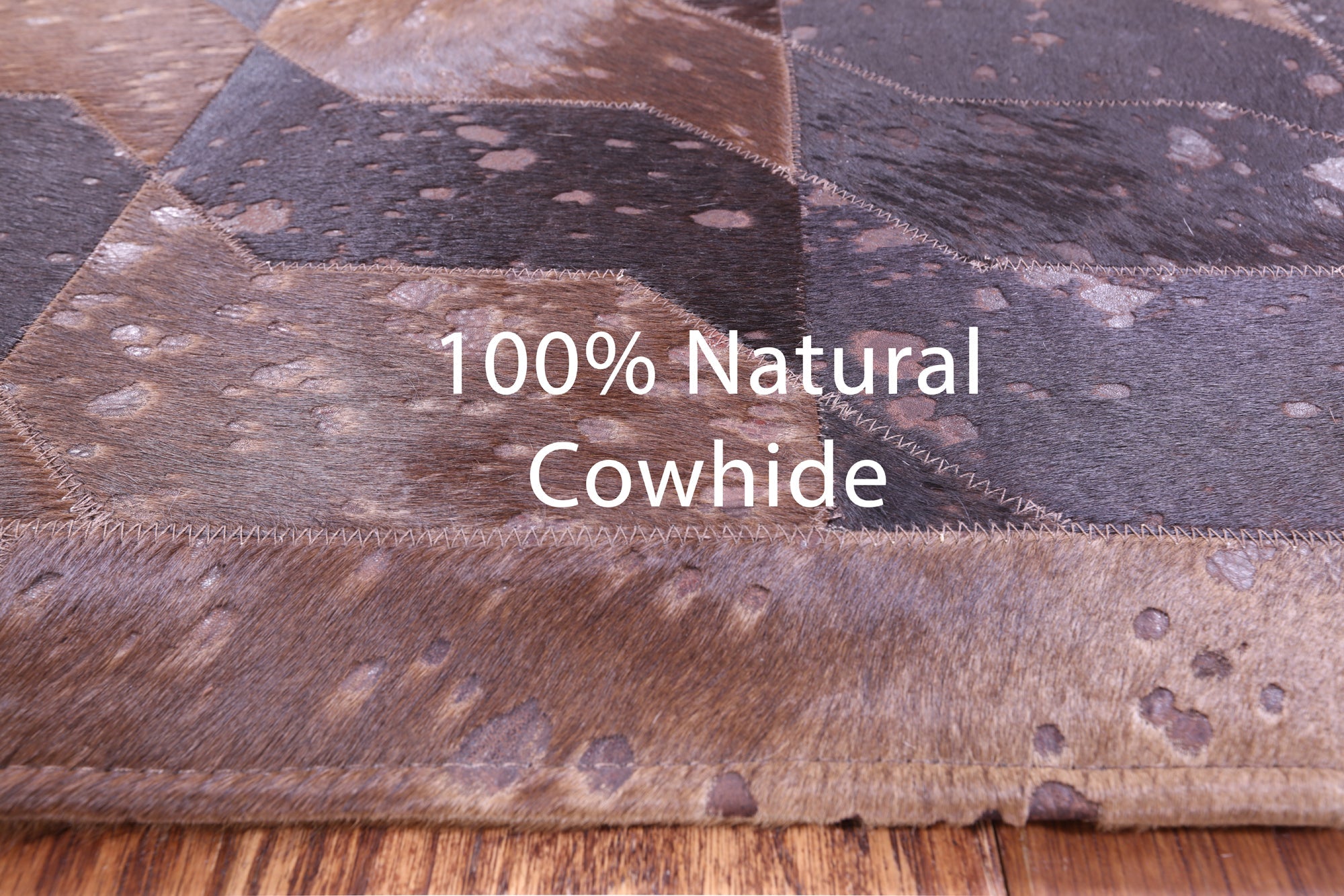 6' 0" X 7' 5" Brown Dyed Natural Cowhide Hand Stitched Rug - C5674