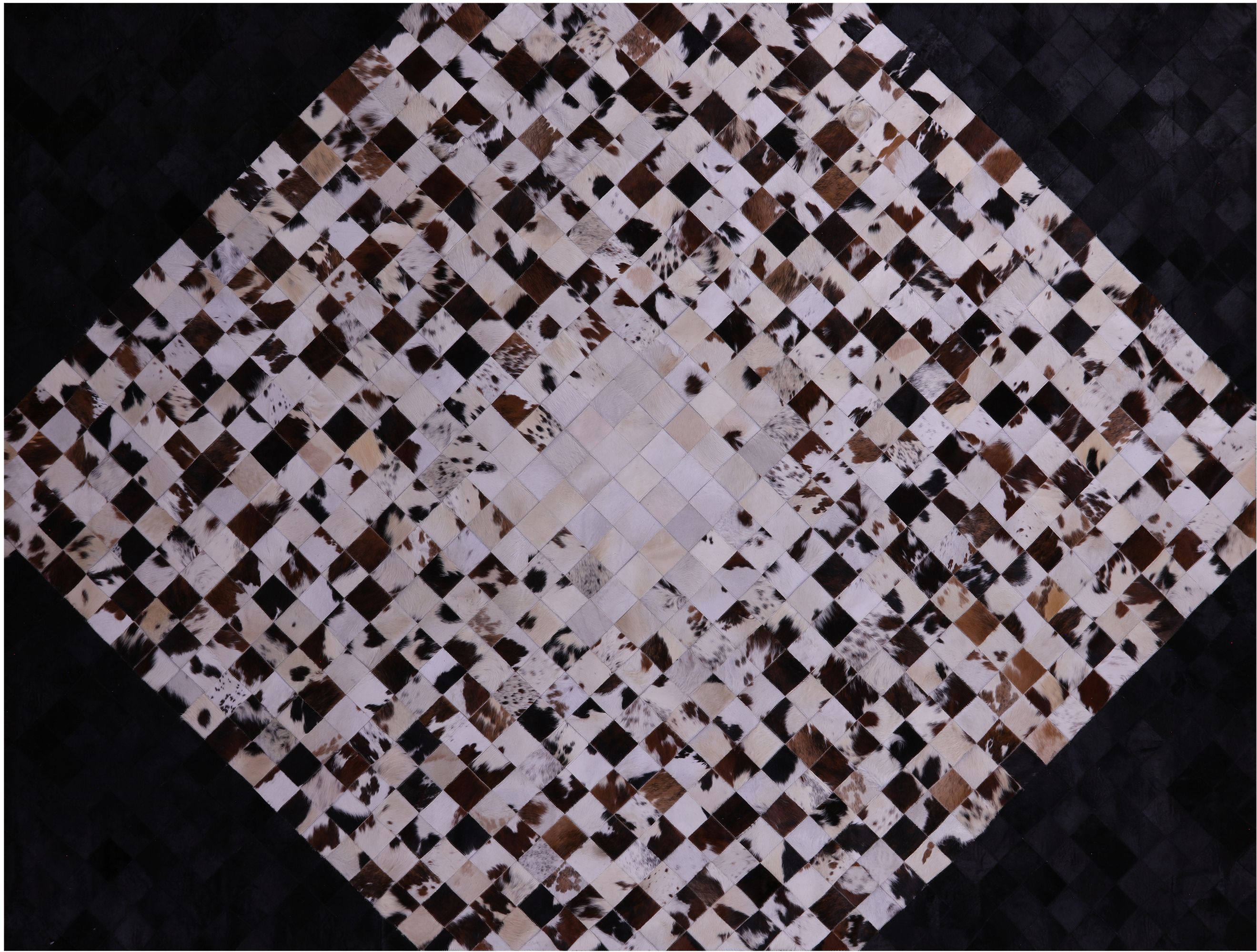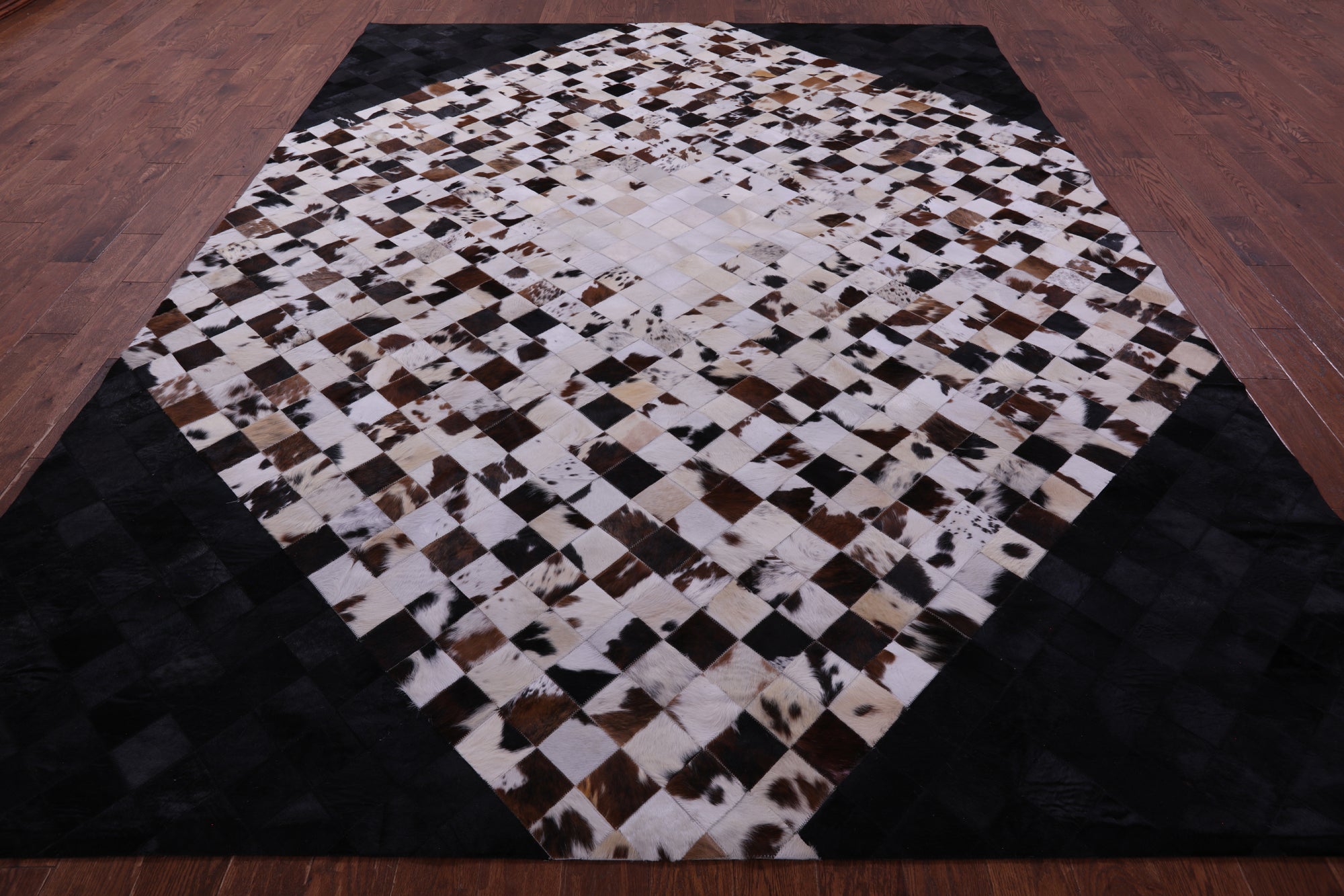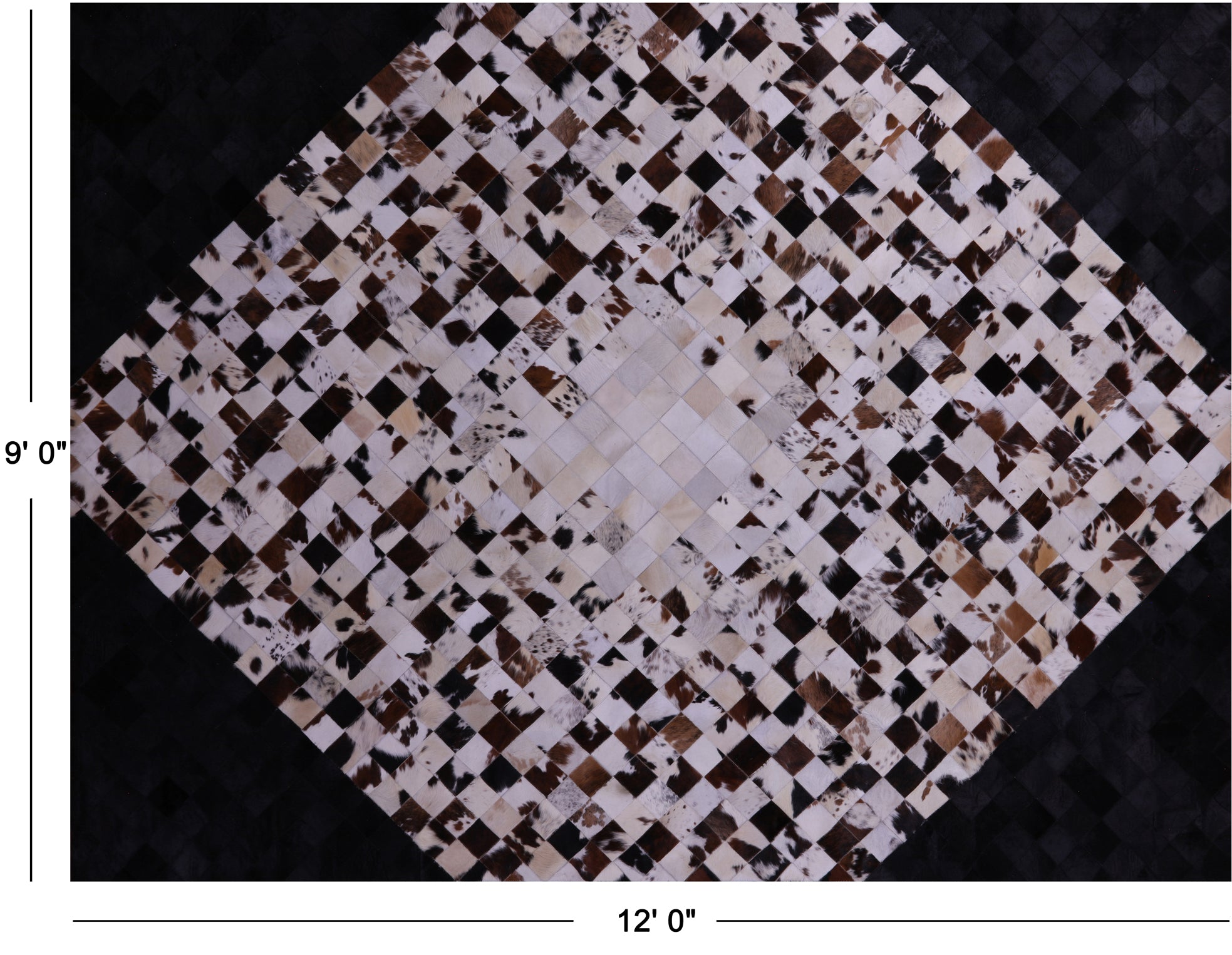 9' 0" X 12' 0" Brown & White & Black Natural Cowhide Hand Stitched Rug - C5709