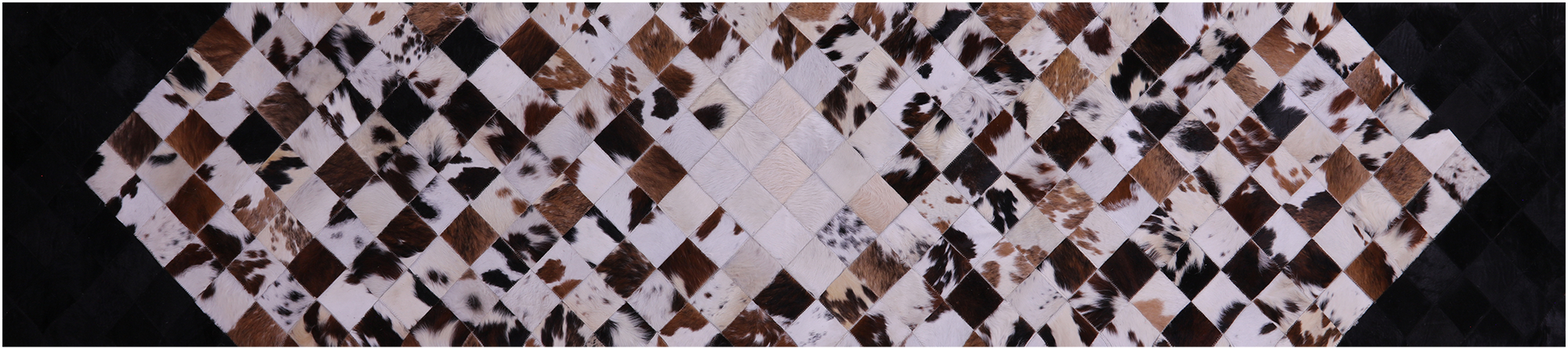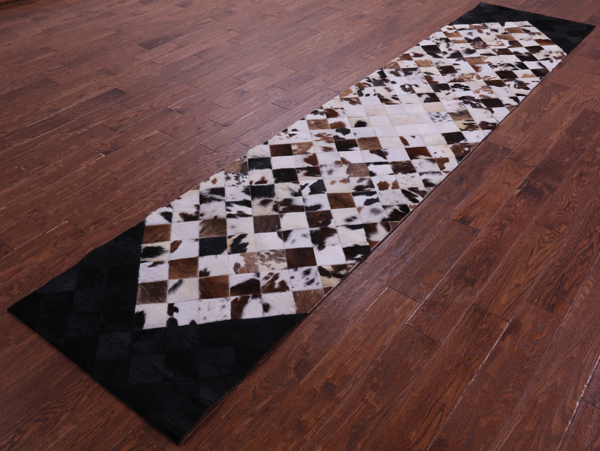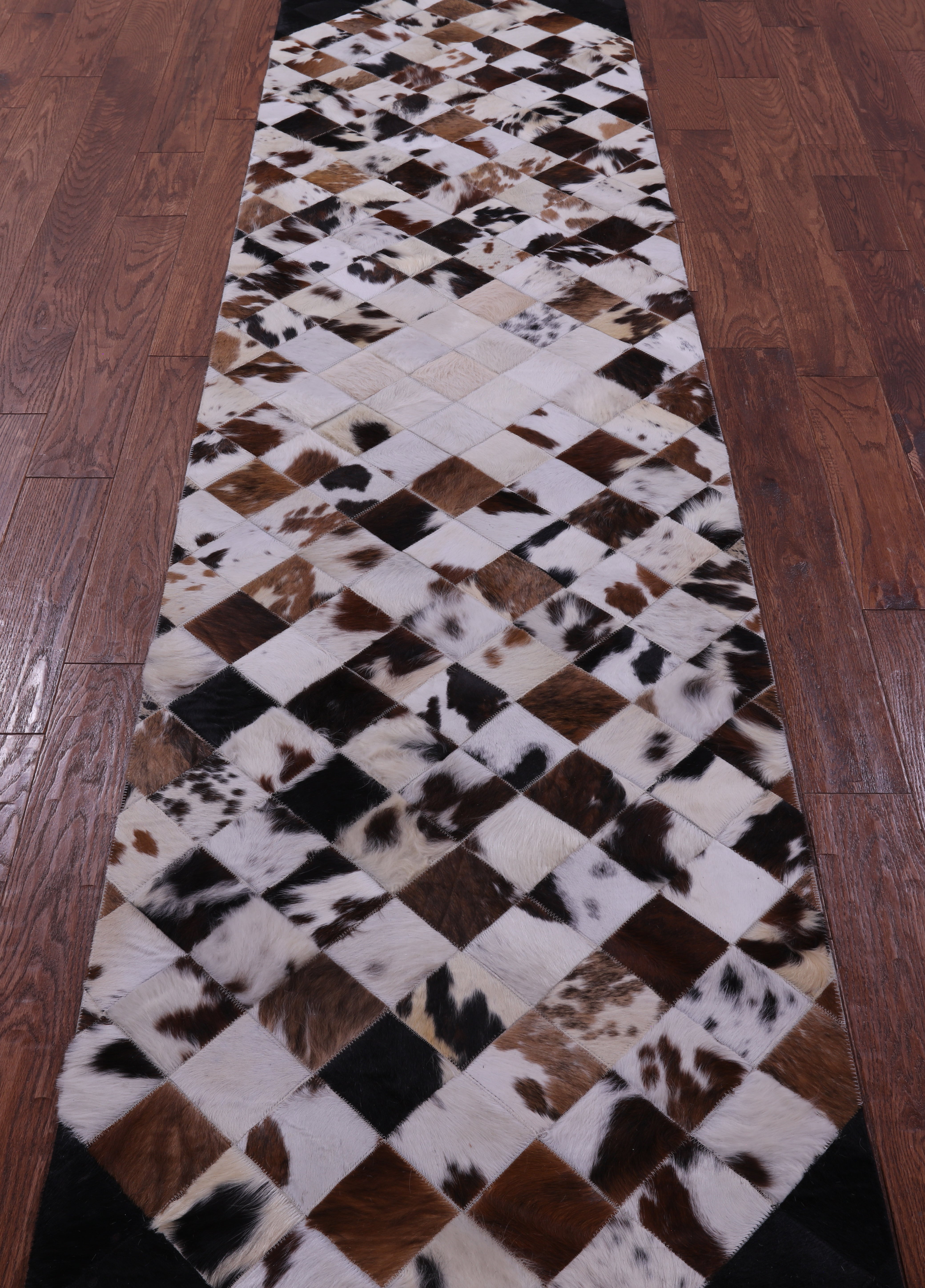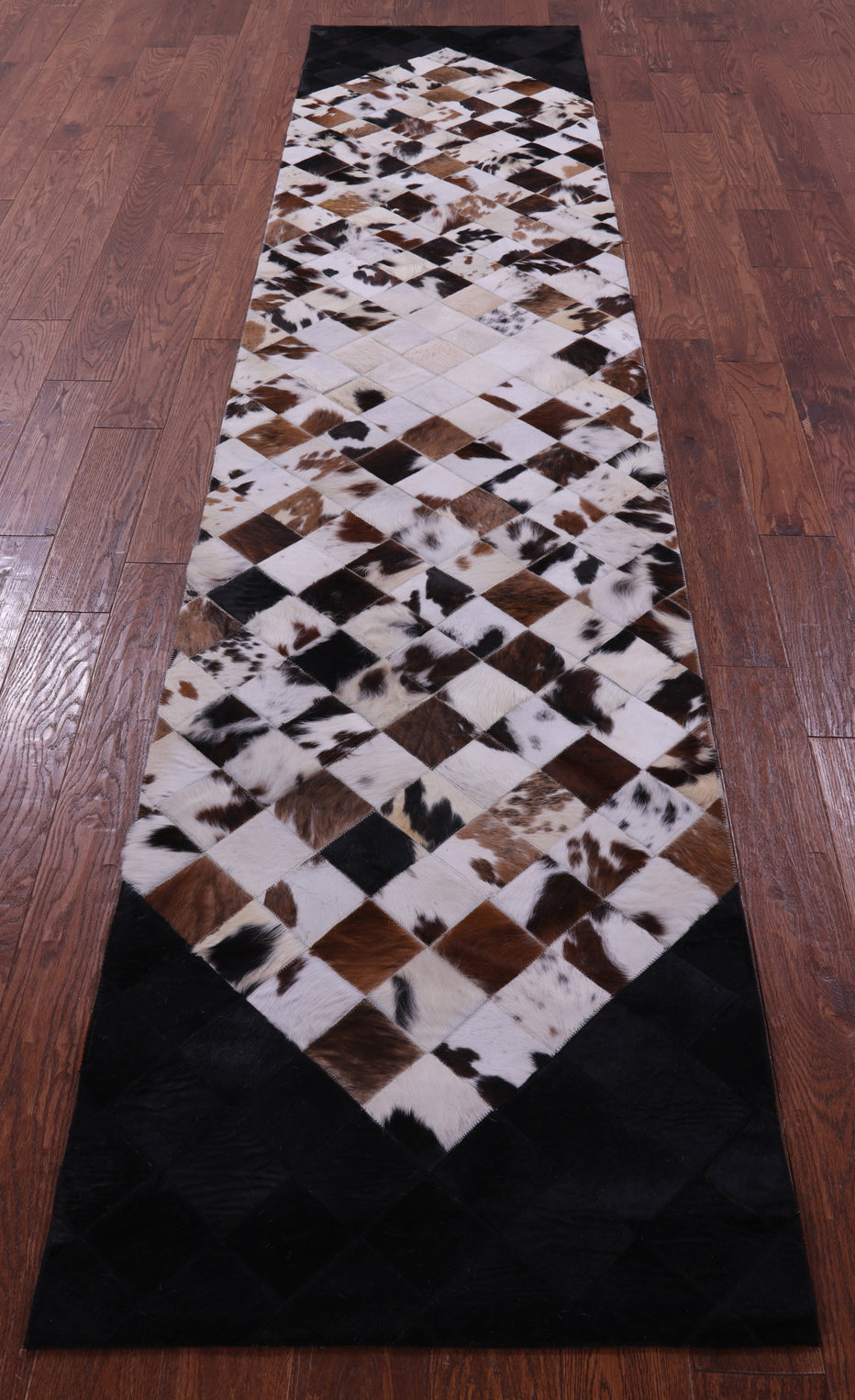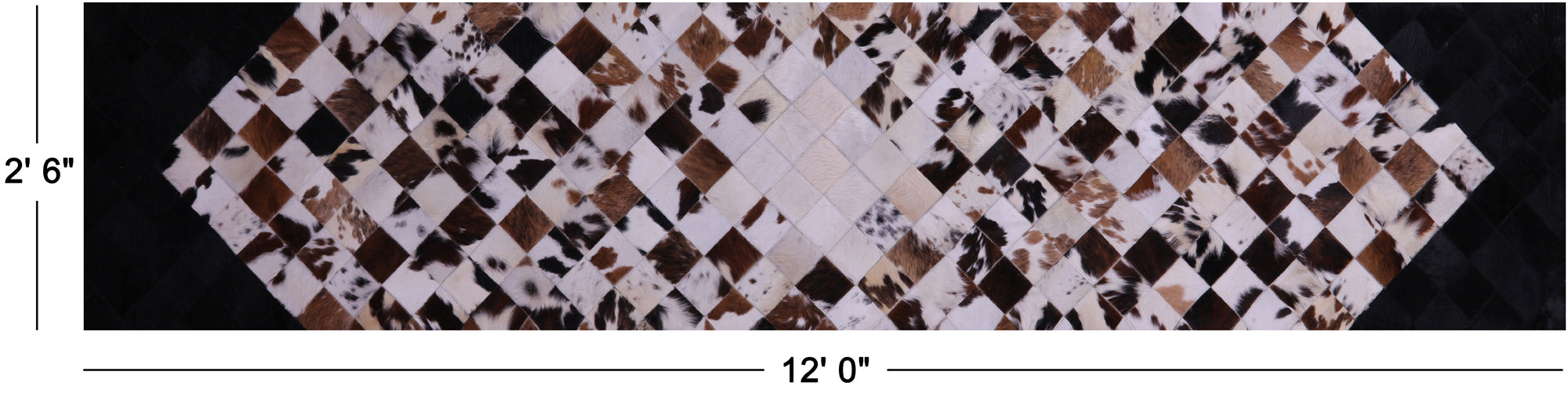 2' 6" X 12' 0" Brown & White & Black Natural Cowhide Hand Stitched Runner Rug - C5810