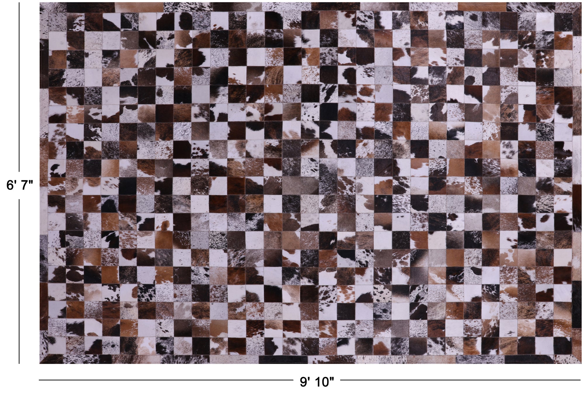 6' 7" X 9' 10" Brown & White Natural Cowhide Hand Stitched Rug - C5688