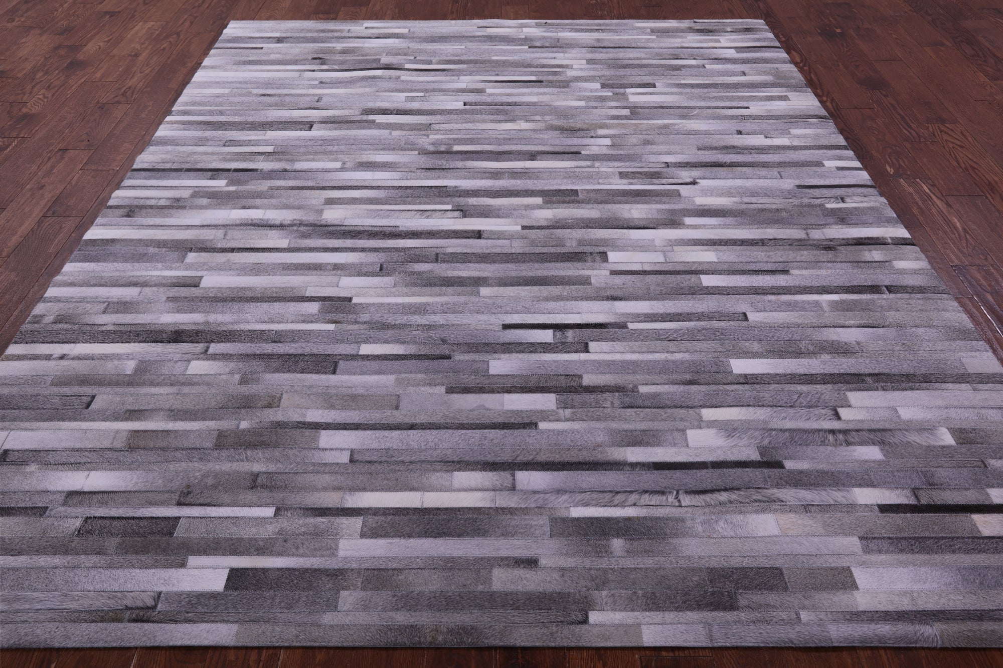 8' 0" X 10' 0" Grey Brickwork Natural Cowhide Hand Stitched Rug - C5782