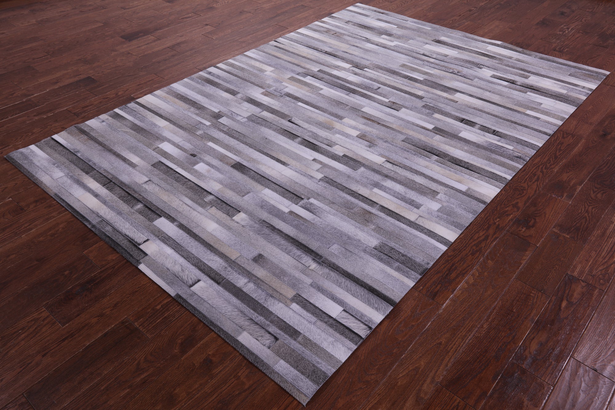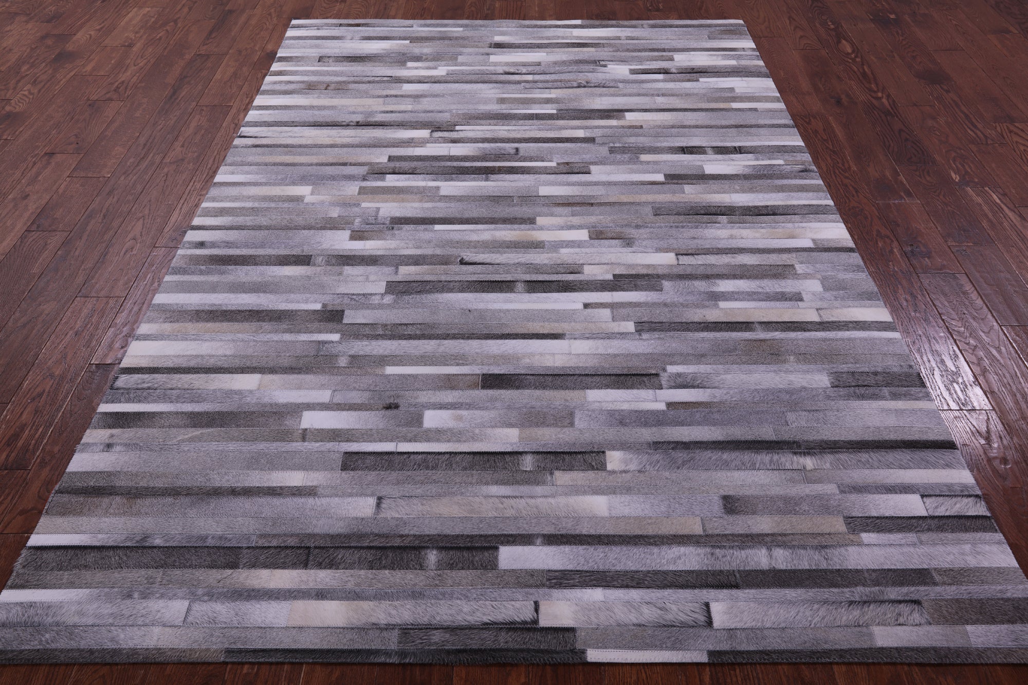 6' 0" X 9' 0" Grey Brickwork Natural Cowhide Hand Stitched Rug - C5784