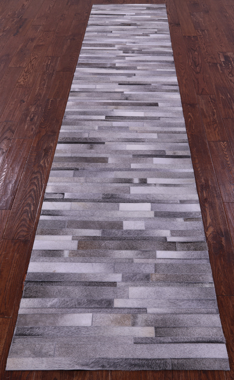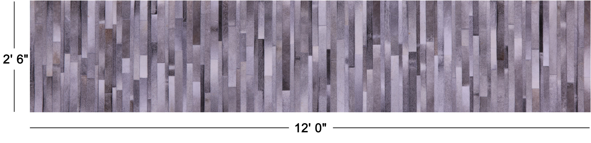 2' 6" X 12' 0" Grey Brickwork Natural Cowhide Hand Stitched Runner Rug - C5772