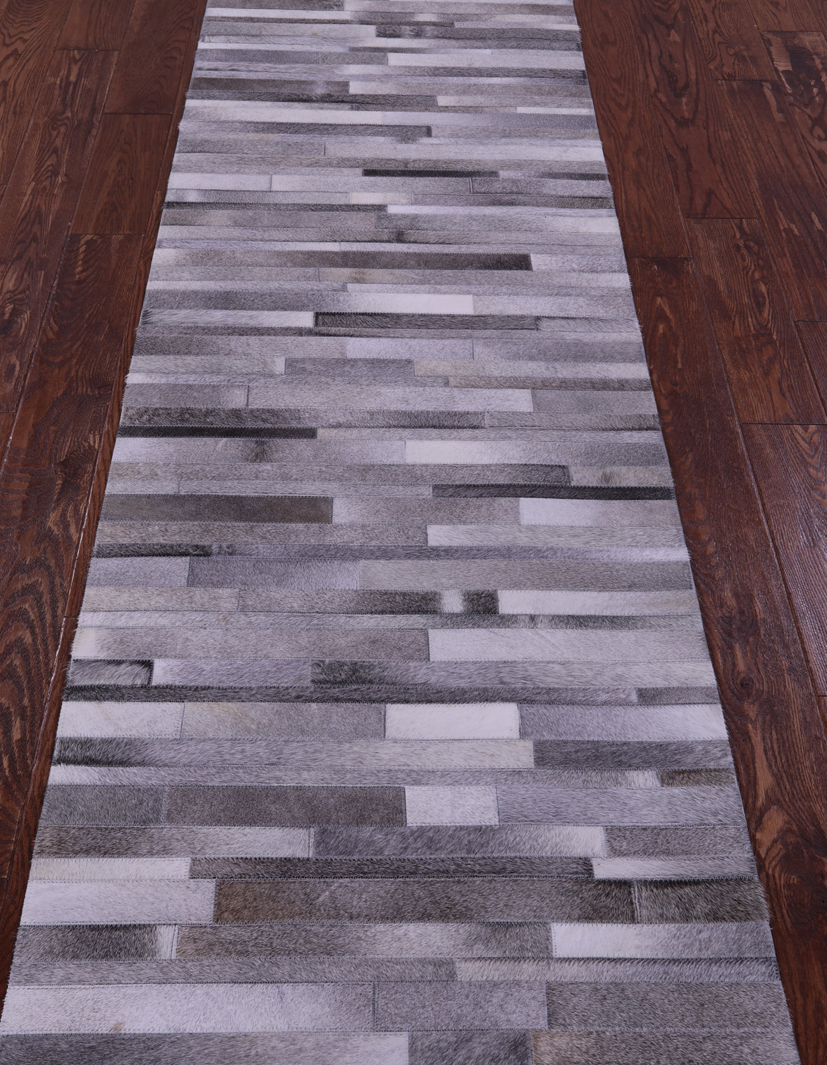 2' 6" X 12' 0" Grey Brickwork Natural Cowhide Hand Stitched Runner Rug - C5772 is backordered and will ship as soon as it is back in stock.