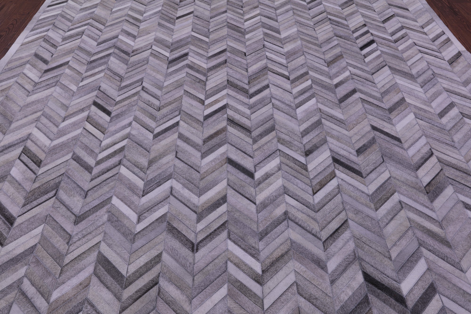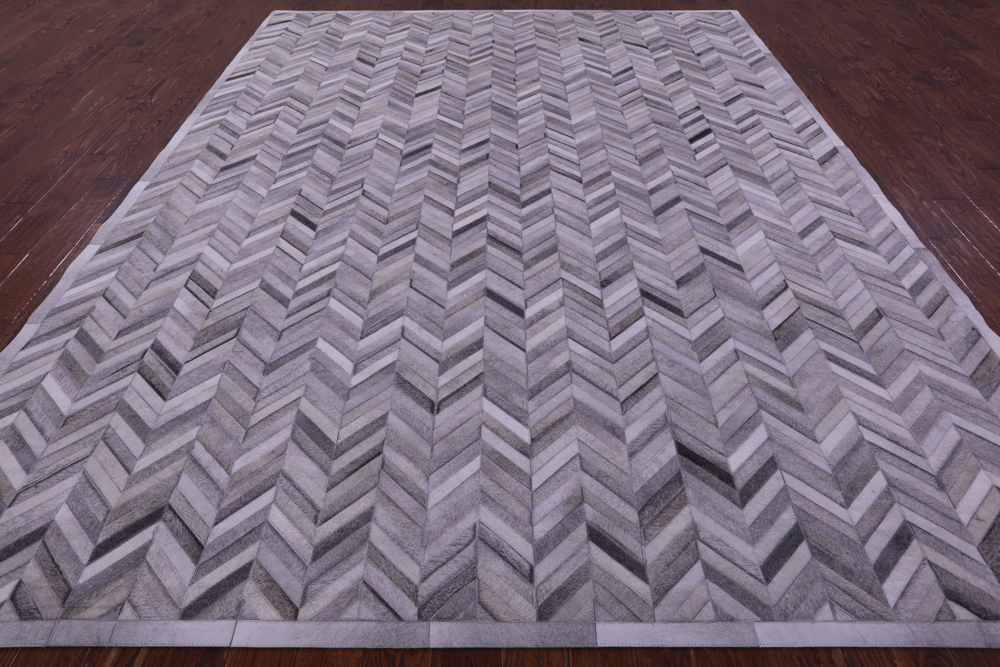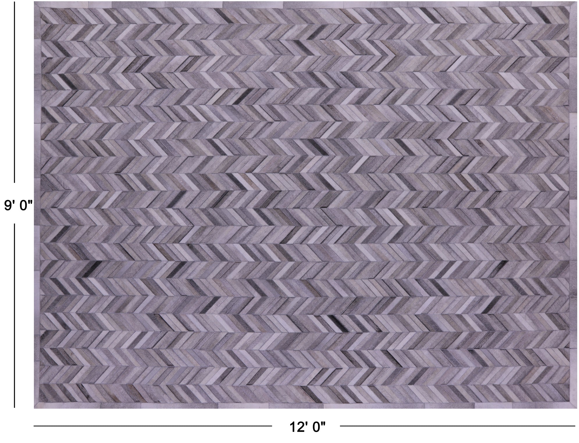 9' 0" X 12' 0" Grey Chevron Natural Cowhide Hand Stitched Rug - C5781