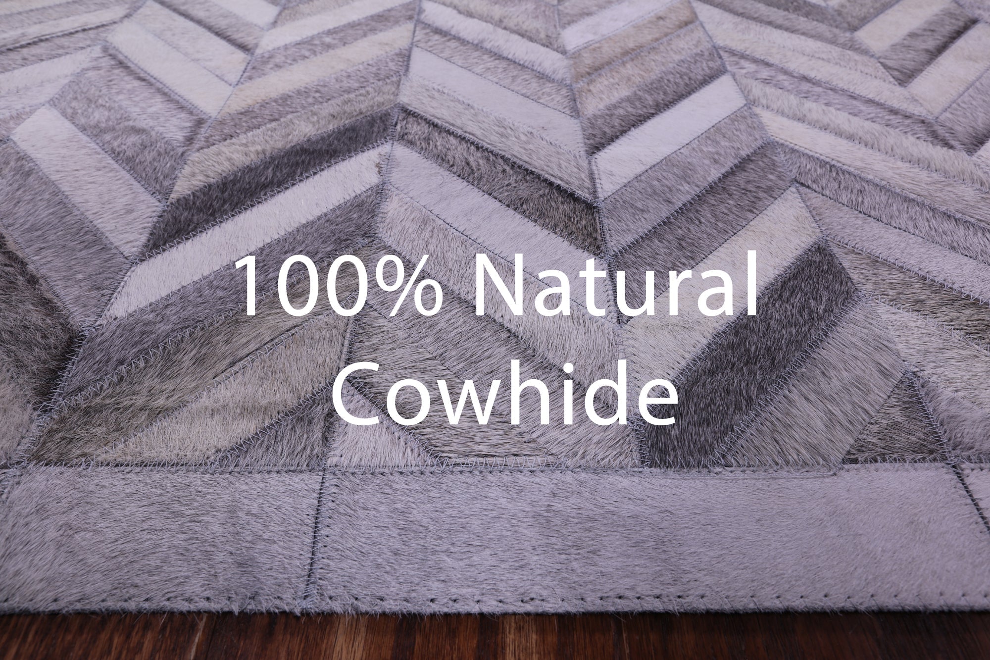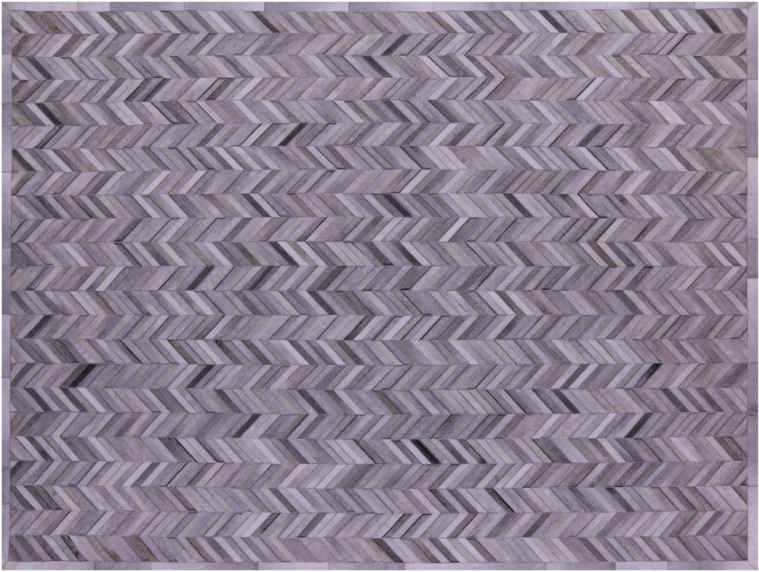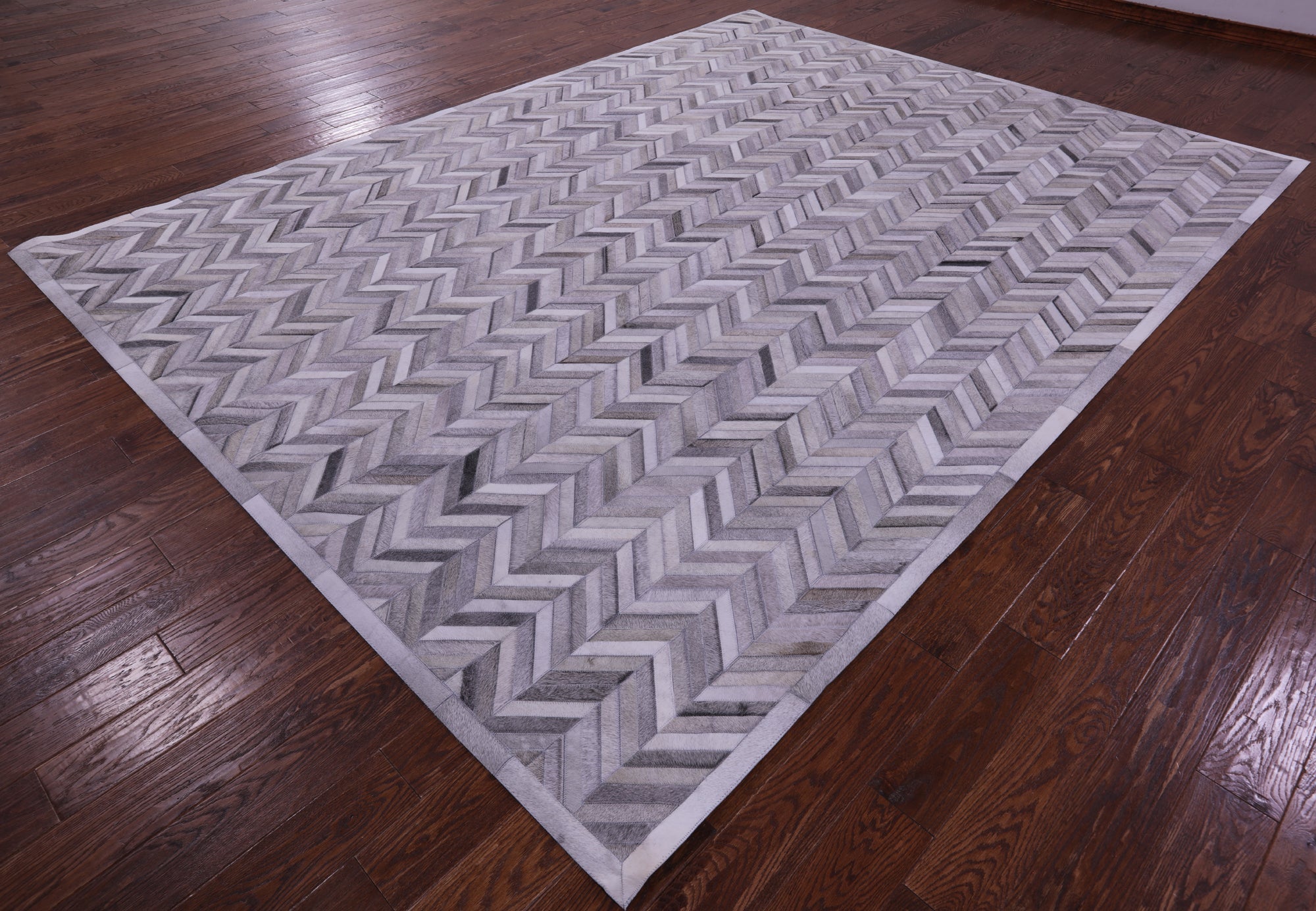 9' 0" X 12' 0" Grey Chevron Natural Cowhide Hand Stitched Rug - C5781