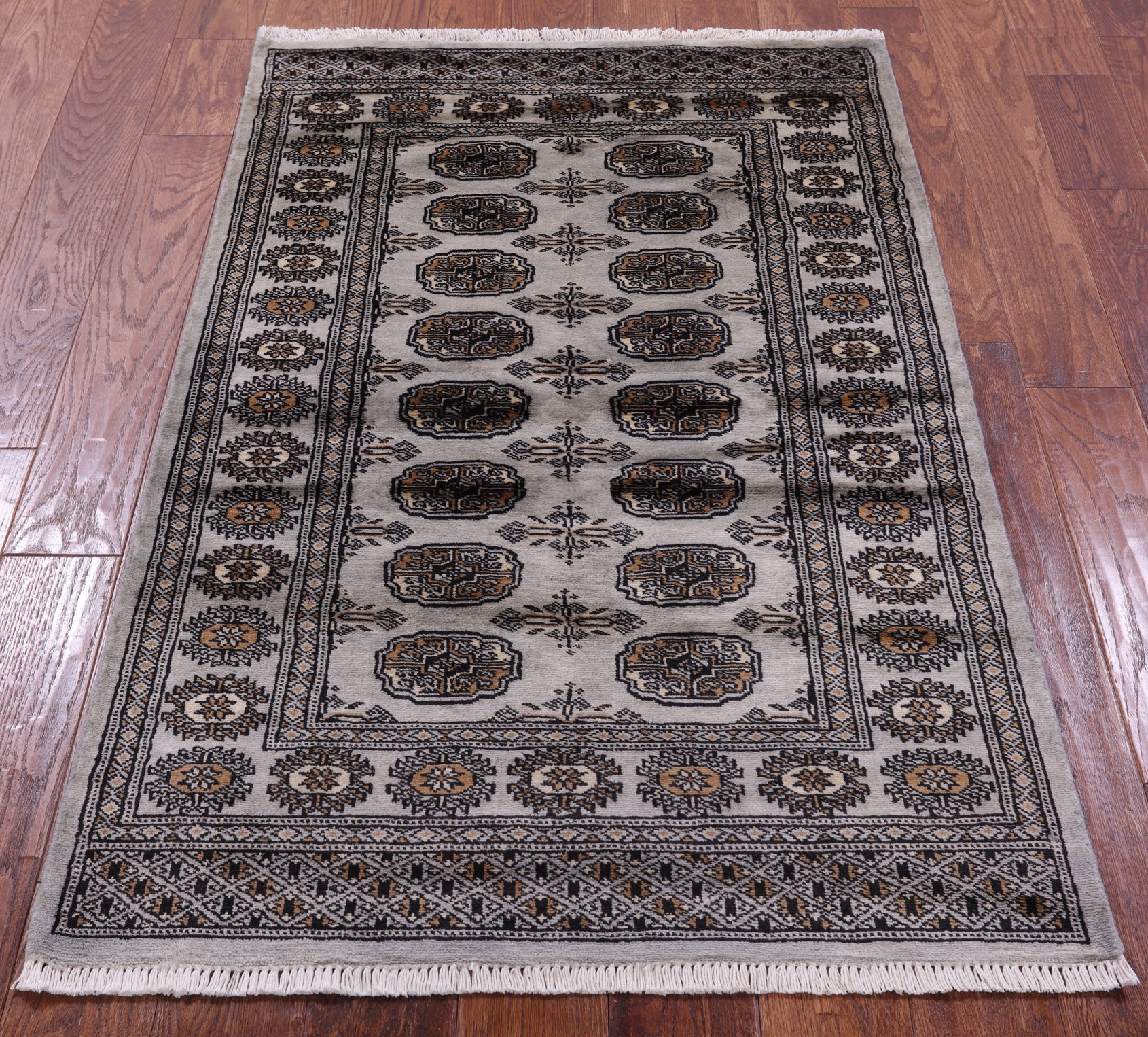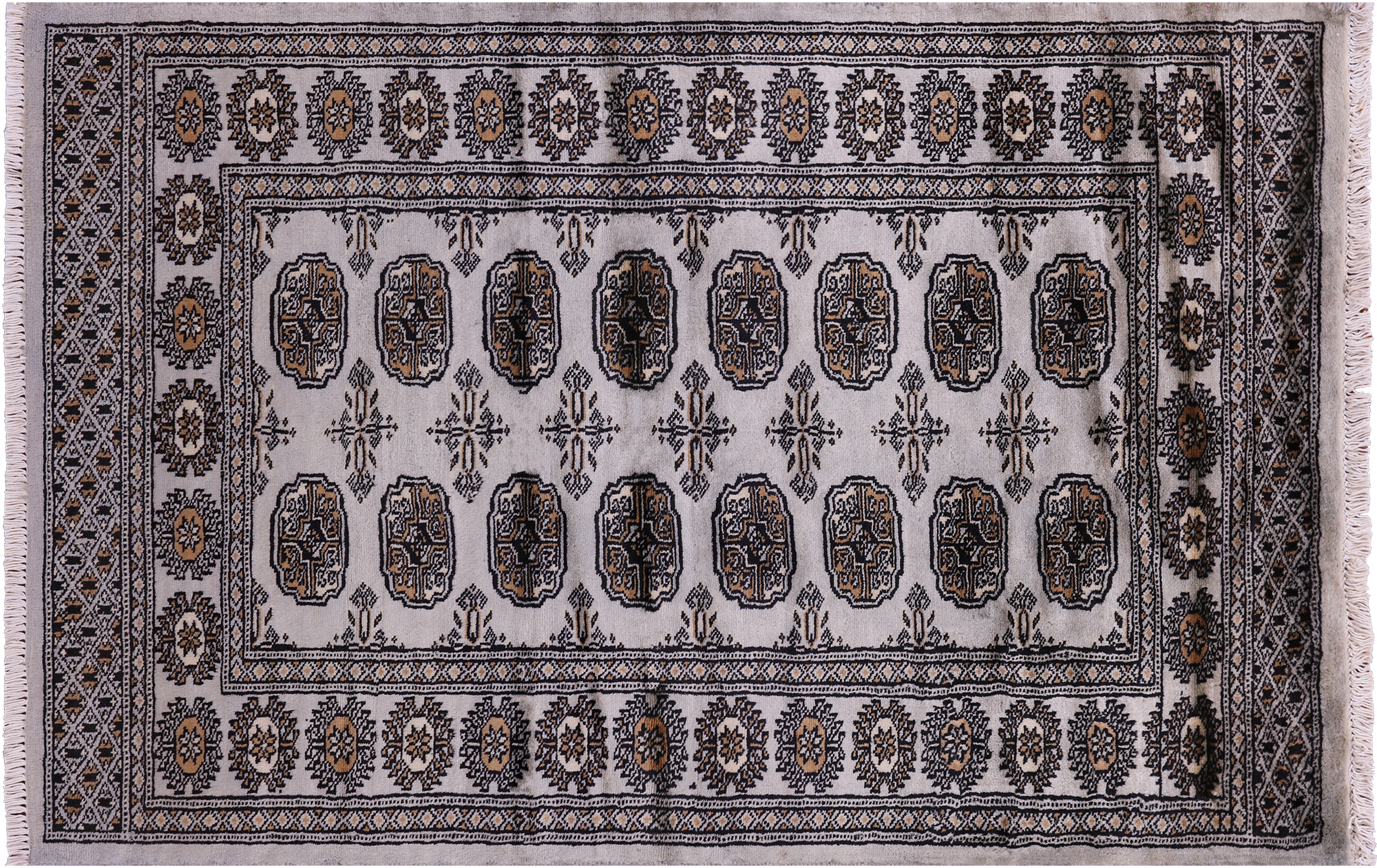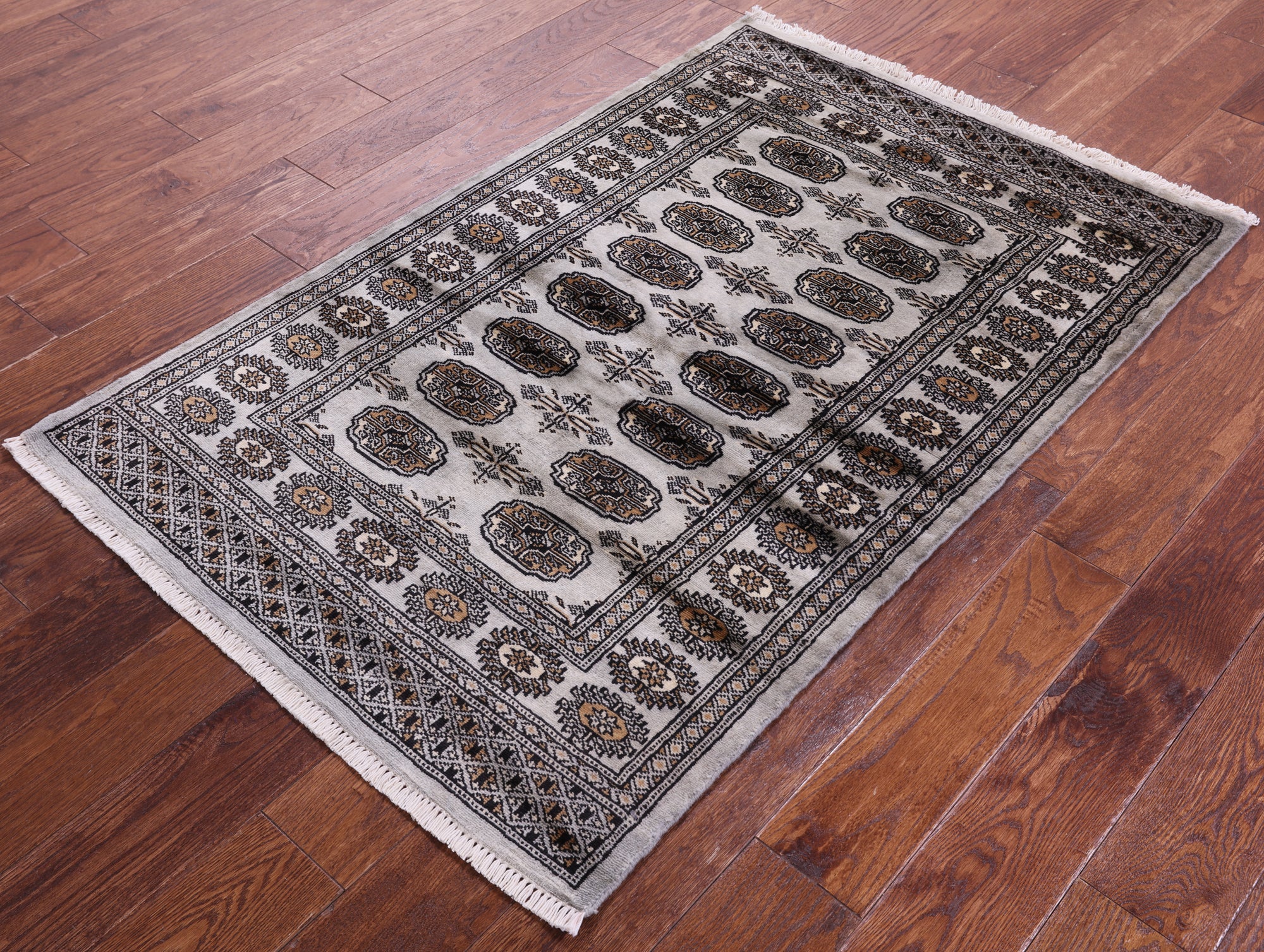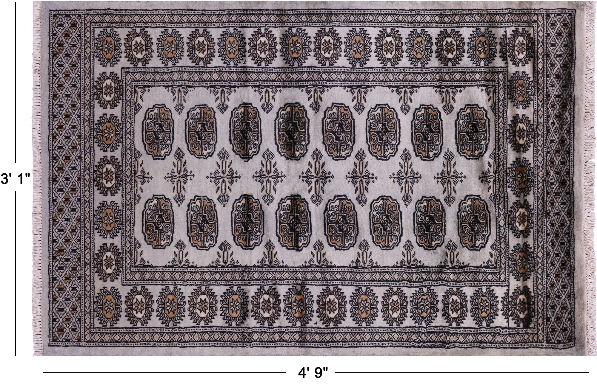 Grey 3' 1" X 4' 9" Silky Bokhara Hand-Knotted Wool Rug - Q23829