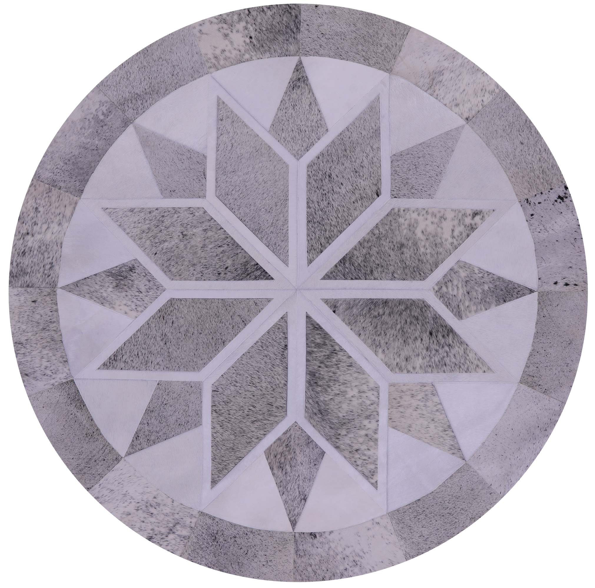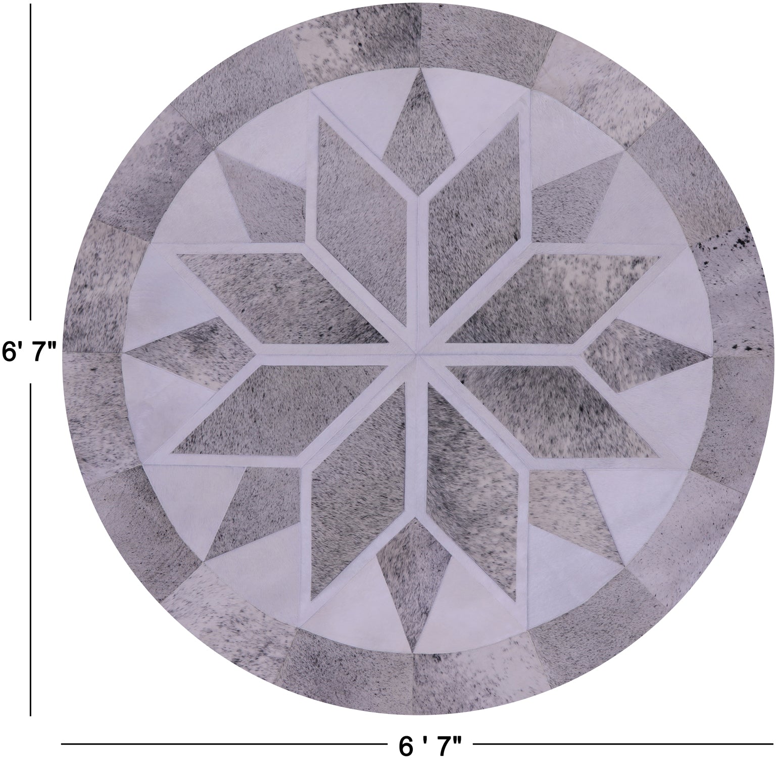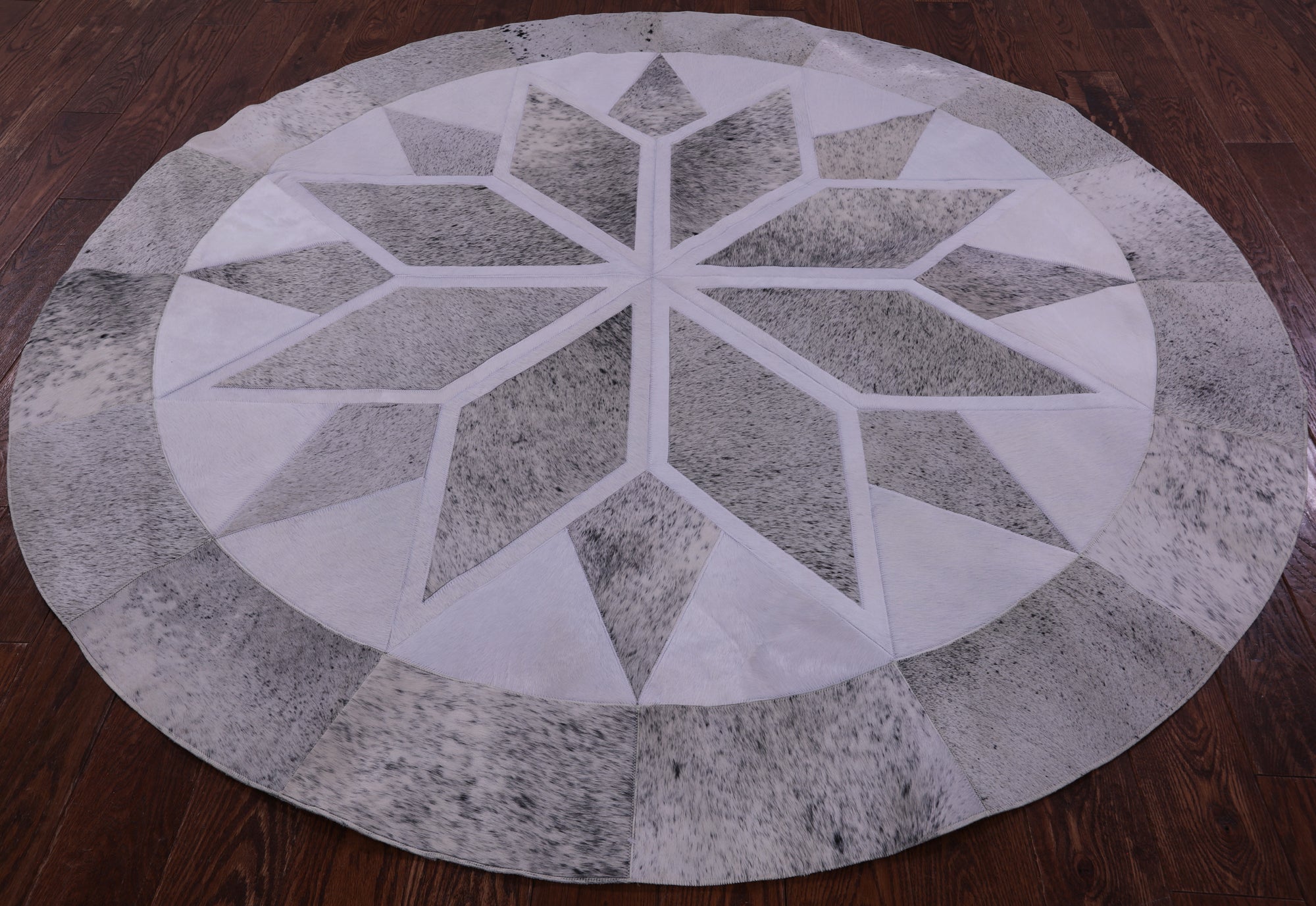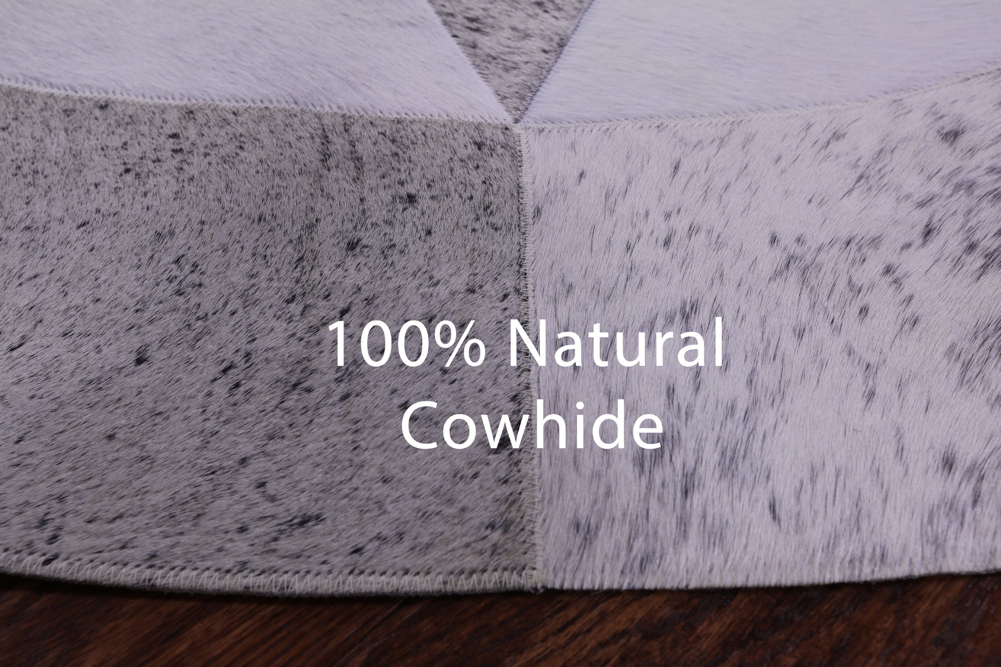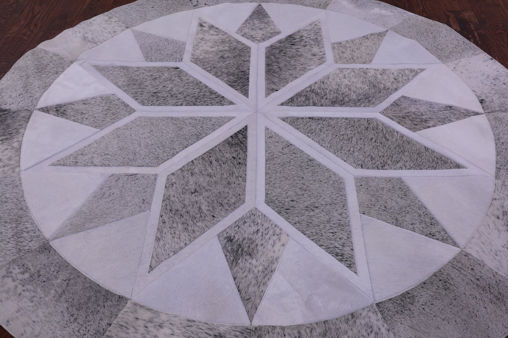 6' 7" X 6' 7" Grey & White Round Natural Cowhide Hand Stitched Rug - C3528