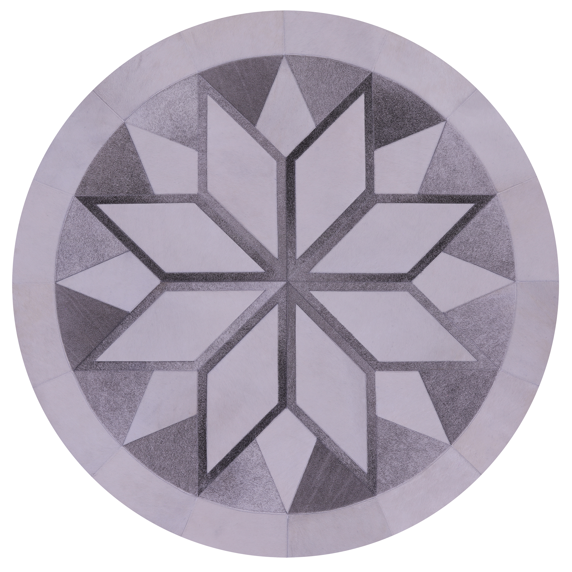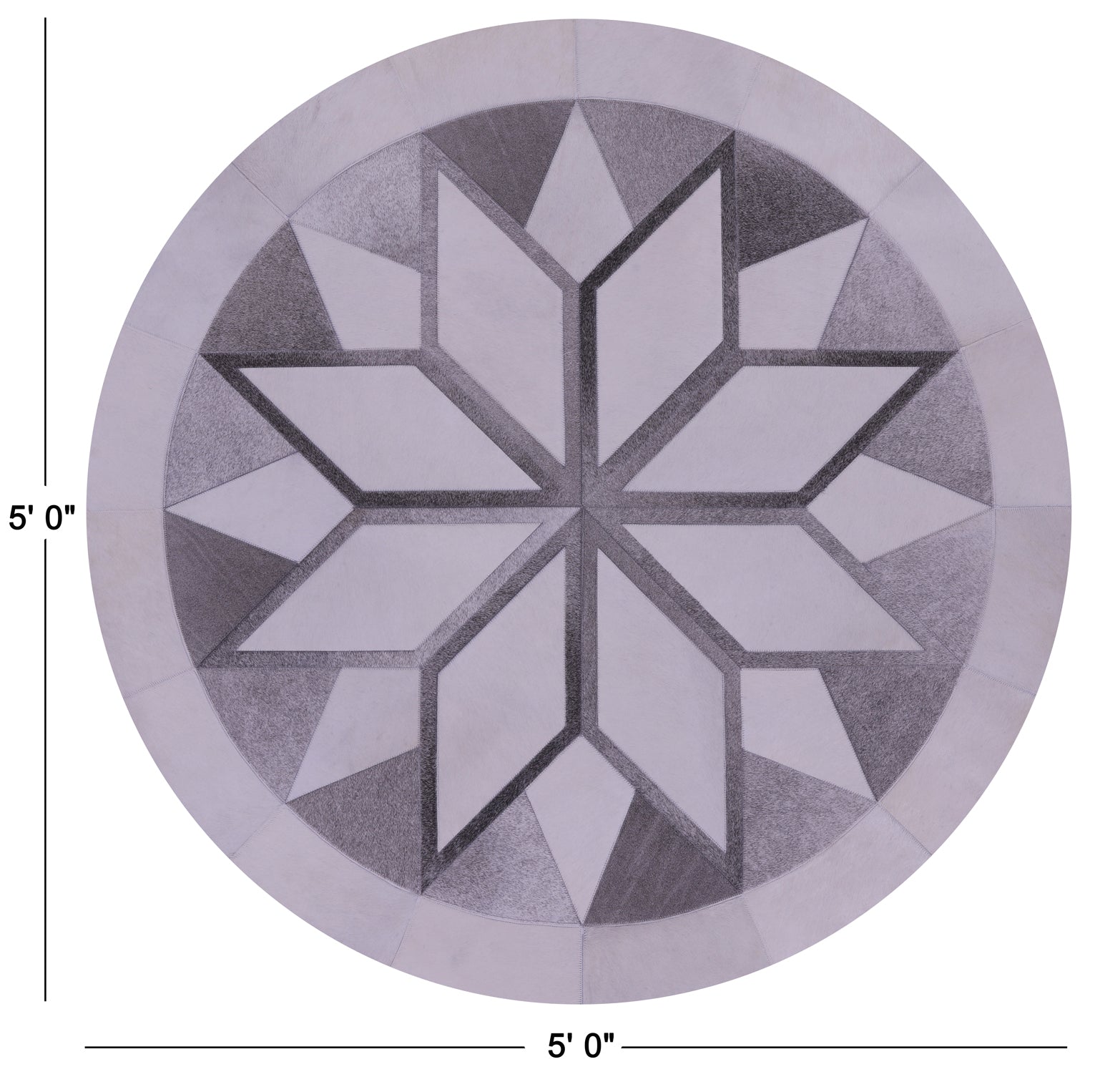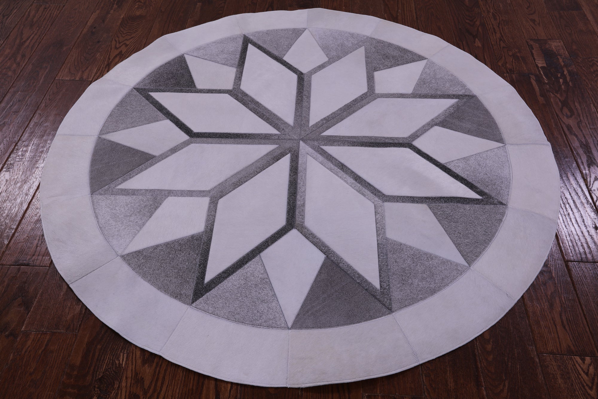 5' 0" X 5' 0" Grey & White Round Natural Cowhide Hand Stitched Rug - C3547