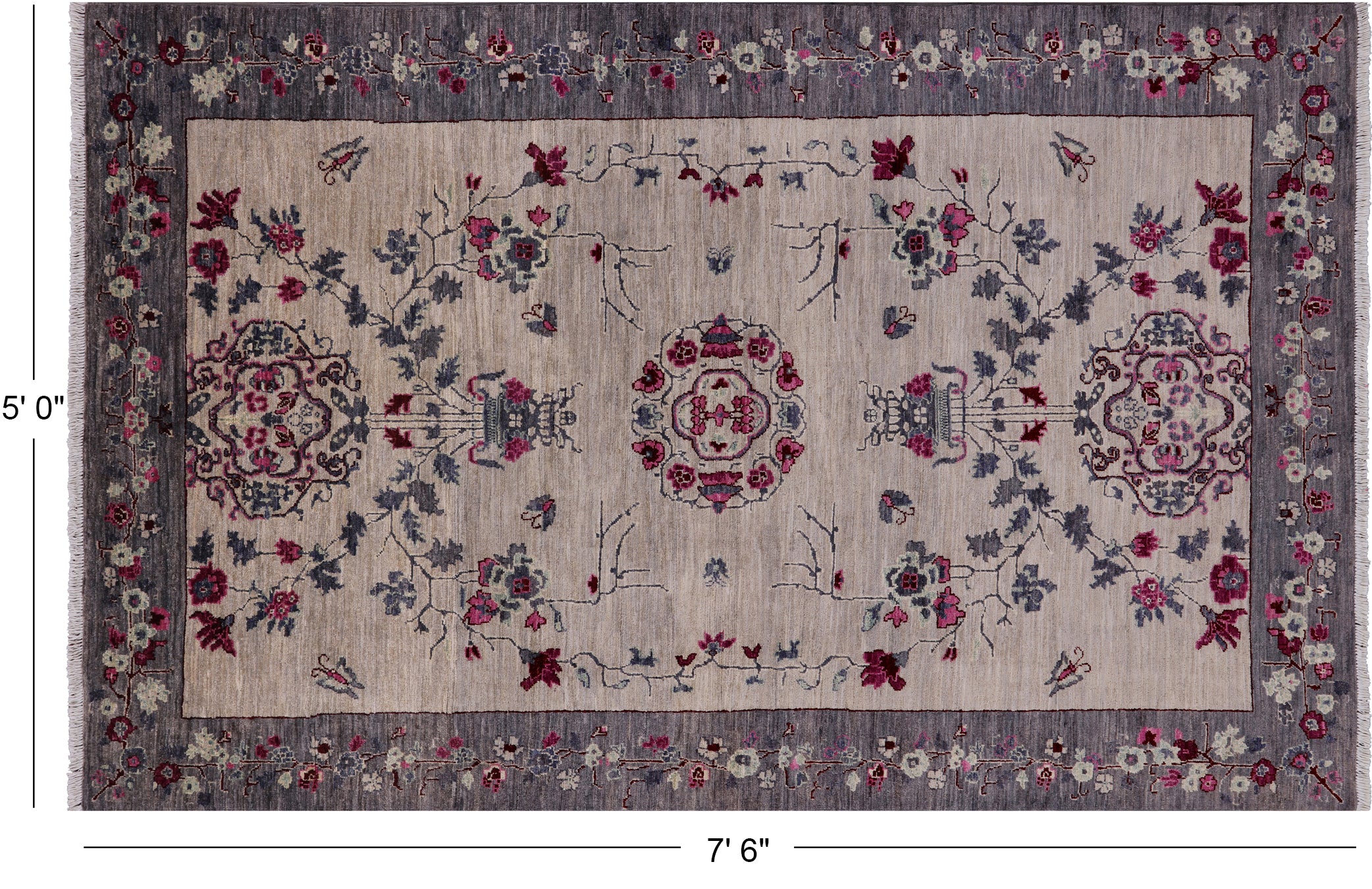 Ivory William Morris Hand Knotted Rug 5' 0" X 7' 6" - Q8488