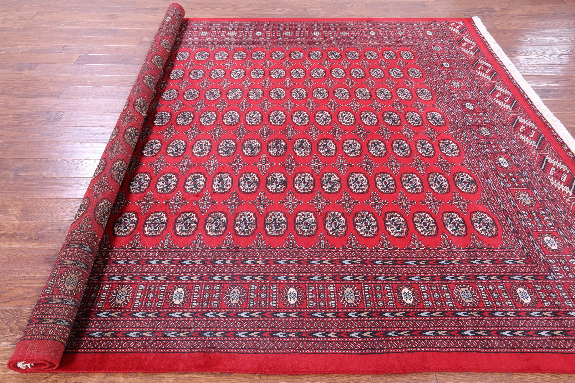 Bokharas are a type of handmade Pakistani rug; also known as Bukharas or Bokaras. Most are based on Turkmen prototypes called Tekkes. Pakistani Bokhara rugs are among the most popular handmade rugs in the world. They are popular for their soft, luxurious feel, heavy pile, attractive colors and appearance that consist of repeating octagonal figures called guls, usually on fields of burgundy red, gray blue, or sometimes green.
