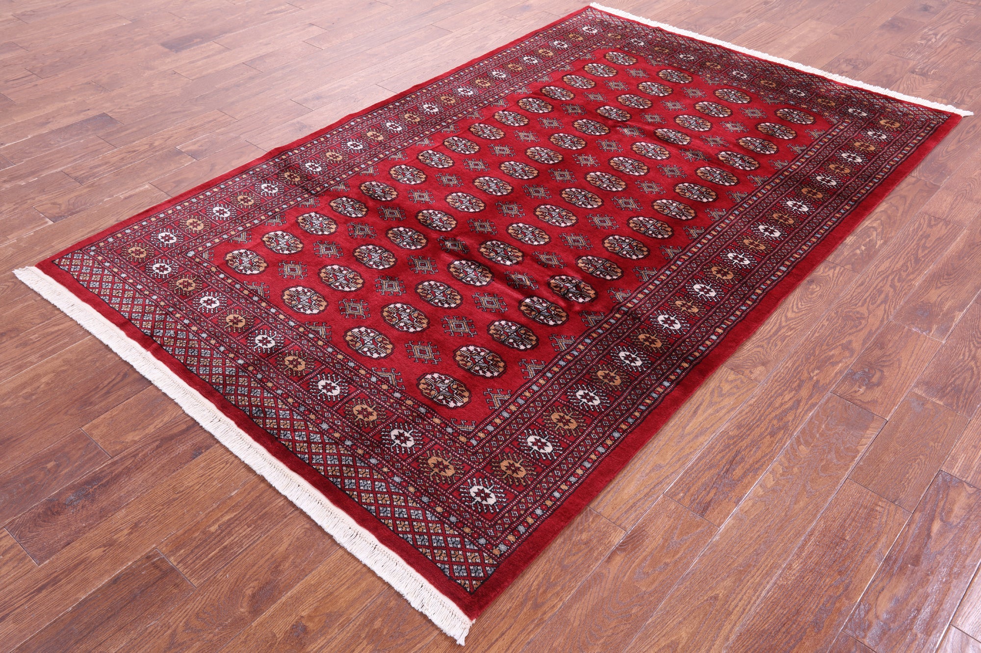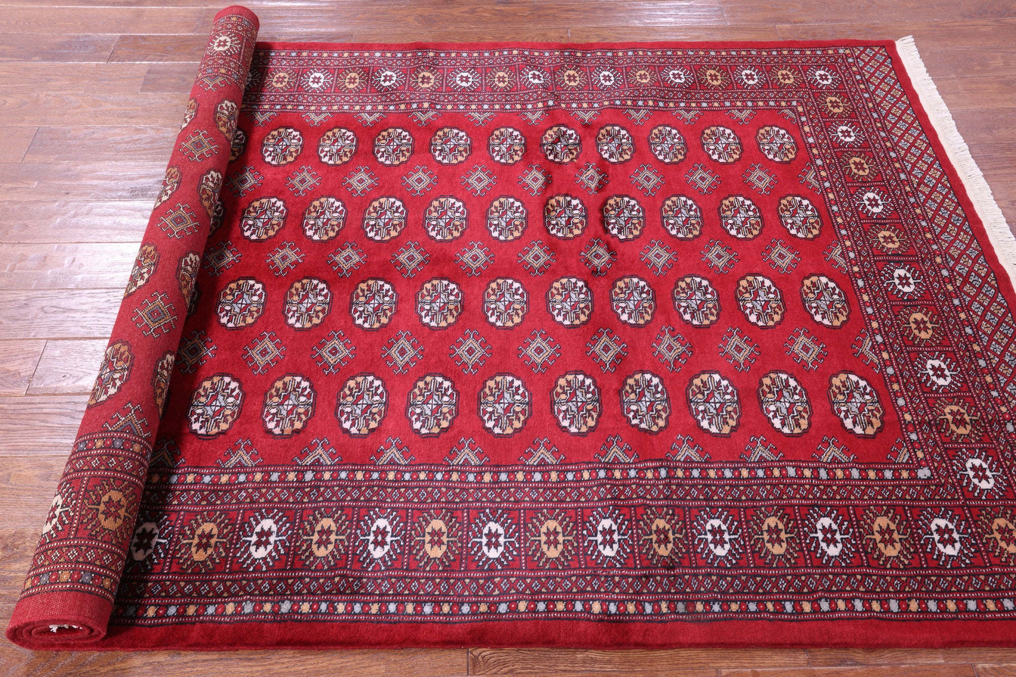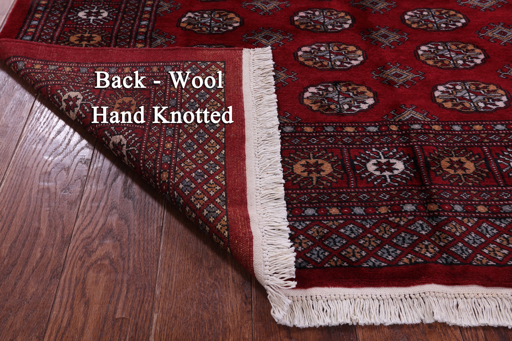 Red 5' 1" X 8' 0" Silky Bokhara Hand-Knotted Wool Rug - Q23889 is backordered and will ship as soon as it is back in stock.