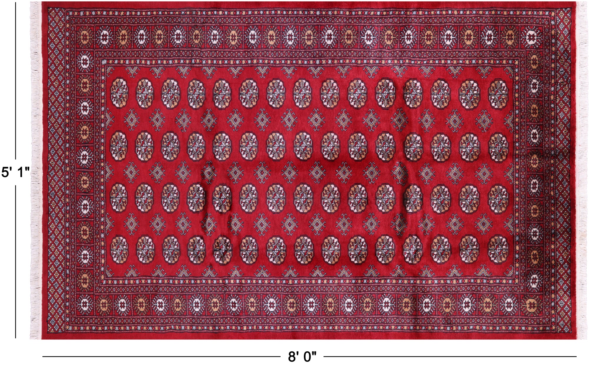 Red 5' 1" X 8' 0" Silky Bokhara Hand-Knotted Wool Rug - Q23889